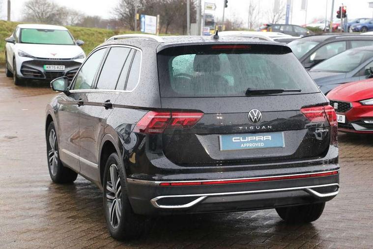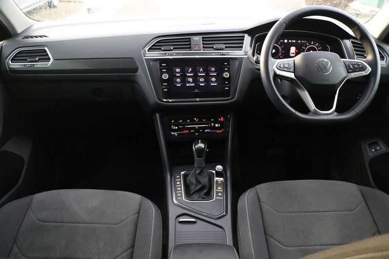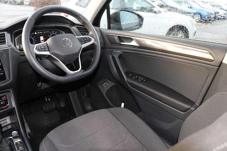 Adaptive cruise control ACC stop and go including speed limiter, App-Connect incl. App-Connect Wireless for Apple CarPlay and Android Auto, Bluetooth phone integration system, Distance control assist, Driver alert system, Driver profile selection, Dynamic road sign display, eCall emergency call system, Electromechanical speed sensitive power steering, Engine start/stop button, Lane keeping system Lane Assist, Lights on warning, Motorised electric tailgate operated via key fob, drivers door and foot movement under tailgate, Multifunction front facing camera, Outside temperature display, Premium multifunction display with multi colour display, Remote control boot opening, Rev counter, Revision / skills operating concept travel assistant, Service interval indicator, Speed limit display, Start/stop system with regenerative braking, Tailgate/trunk lid unlocking from outside, Trip computer, Warning sound and light for doors and tailgate open, Battery regeneration during braking, Charging cable Mode 3 Type 2 / 3 (16A), XDS electronic differential lock for improved traction and handling, 4 X 20 watt output, 8 Speakers, Diversity antenna for FM reception, Radio, SD card slot, Simultaneous pairing of 2 compatible mobile devices, SMS functionality - read, compose and send SMS messages using touch-screen display, Title and cover art display, USB C ports, Aluminium door sill protectors, Auto dimming interior rear view mirror, Automatic headlight control system, Body colour door handles, Body coloured bumpers, Body coloured door mirrors with integrated indicators, Coming/leaving home lighting function, Dynamic headlight range control, Front and rear electric windows, Heated rear window, High level 3rd brake light, IQ light-Adv high beam, Dynamic light assist for LED matrix headlamp+LED separate DRL+DCL, dark red rear LED tech, Poor weather light+ cornering light, Laminated safety glass windshield, heat and sound insulating, LED rear number plate lights, Privacy glass for rear side windows and rear window, Rain sensor windscreen wipers, Rear exhaust tailpipe, Rear fog lamp, Rear side wing doors, Rear windscreen washer and wiper with interval delay, Side and rear windows in heat insulating glass, Tilting and sliding panoramic sunroof with rear panoramic sunroof, Trailer Stability Programme, Windscreen wipers/ intermittent wipe + 4 position delay, 12V outlet in center console rear and in luggage compartment, 12V outlet in front and tray, 2 cup holders in front, 2 LED front reading lights, 2 LED rear reading lights, 3 bench rear seats in 2nd row, 3 rear headrests, 4 load lashing points, 40:20:40 split folding rear seats, Air Care Climatronic 3 zone automatic climate control with enhanced air filter and controls in the rear, Backrest release for left front seat, Climate control unit rear with touch function, Door and side trim panel in foam film and woven fabric, Front centre armrest, Front footwell illumination, Front seats head restraints (x-adjustment), Height adjustable front seats, Height/reach adjust steering wheel, Instrument lighting white adjustable panel illumination, Interior light with delay, Isofix Preparation 2 Rear child seats, Leather gear knob, Lockable cooled glovebox, Luggage compartment lighting, Luggage net, Rear bench seat asymetrically split folding, longitudinally movable and folding with load-through hatch and center armrest, Remote unlocking for rear seat backrest, Removable luggage cover, Removable rear headrests, Safety optimised front head restraints, Single front passenger seat, Sliding/reclining rear seats, Standard rear seat release, Storage compartment in driver's door, Storage compartment in passenger's door, Storage compartment in rear doors, Storage compartments in luggage area left and right, Storage tray on dashboard, Sun visors with illuminated vanity mirrors, Top front comfort seats, Variable boot floor, height adjustable and removable, Easy open and close pack with safelock - Tiguan, Park assist pack - Tiguan, 3 point seat belt for centre rear seats, 3 point seat belts with seat belt pretensioners for the outer rear seats, Active bonnet, Curtain airbags for front and rear passengers, Driver/Front Passenger airbags, Drivers knee airbag, Electronic parking brake with auto hold, Electronic Stability Control with driver steering recommendation, ABS, ASR, EDL, EDTC and trailer stabilization, Front assist with autonomous emergency braking (for Adaptive Cruise Control ACC up to 130 mph), Front disc brakes, Front passenger airbag deactivation, Front side airbags, Height adjustable front 3 point seatbelts + pretensioners, Hill hold control, Manual child proof rear door locks, Pedestrian monitoring system, Power assisted brakes, Proactive passenger protection system in combination with front assist, Rear disc brakes, Rigid safety cell with front and rear crumple zones, Two tone horn, Tyre pressure loss indicator, Warning sound and light for front seat belts if unfastened, Anti theft alarm system with interior monitoring, backup horn and towing protection, Anti theft wheel bolts, Central locking system with safelock radio remote control and 2 remote control folding keys, Electronic engine immobiliser, Tool kit, Tyre mobility kit Includes 12V compressor and tyre sealant,