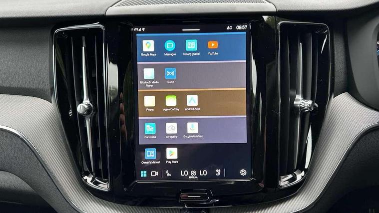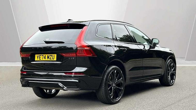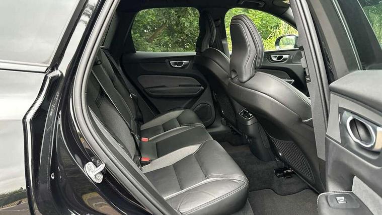 12.3" Progressive Driver Display, 360 degree surround view parking camera with side proximity sensors, 9" centre console touch screen, Adjustable steering wheel force, Apple carplay (wired), Bluetooth handsfree system, Driver alert control with lane keeping aid, Emergency services call system, Front and rear park assist, Google Automotive Services, Oncoming Lane Mitigation, PAS, Power operated tailgate with handsfree opening and closing, Service interval indicator, Speed limiter, Speed sensitive steering, Trip computer, Volvo cars services with app, Volvo on call with App, Wireless/Inductive Mobile Phone Charging, 8 speed automatic transmission with start/stop + manual change functions, DAB Digital radio, Premium Sound by Harman Kardon, dirac unison, dolby pro logic II surround sound, 13 speakers/600W output and fresh air subwoofer, Steering wheel remote infotainment controls, Adaptive brake lights with high level LED brake lights, Auto dimming interior + exterior mirrors, Automatic headlight levelling system, Automatic LED Headlights + Active high beam incorporating daytime running lights, Dark tinted windows for rear side windows and cargo area, Electric adjustable/heated/auto power folding door mirrors, Electric front+rear windows, Front aluminium tread plates, Heated front windscreen, High gloss black door mirrors and window surround, High gloss black front and rear bumper decoratives, High gloss black rear model, engine and volvo logo badges, Home safe and approach lighting, Integrated roof rails in high gloss black, LED front fog lights, Metallic paint, Puddle lights, Rain sensor with automatic windscreen wiper activation, Rear side wing doors, Rear wiper, Roof antenna, Roof spoiler, Tinted windscreen, Visible VIN plate, 12V socket in front tunnel console and cargo compartment, 3 seat bench in 2nd row, 4 Zone electronic climate control, A-pillar parking ticket holder, Air purifier particulate matter (PM) filter, B Pillar ventilation, Centre console cupholders and storage, Charcoal floor mats, Charcoal headlining, Contour sports seats with nappa soft leather/textile upholstery, Front and rear courtesy lights, Front and rear door pocket illumination, Front cupholder illumination, Front footwell illumination, Front reading lights, Front seat cushion extensions, Glovebox compartment with illumination, Head restraints for all seats, Heated front seats, Heated steering wheel, Height/reach adjustable steering column, Illuminated luggage compartment, Illuminated vanity mirrors + ticket holder, ISOFIX attachment on outer rear seats, Load cover, Load protection net, Multi directional lumbar support, Power driver seat with memory + exterior mirrors memory, Power height adjustable passenger seat, Rear armrest with cupholder, Rear footwell and front and rear side step illumination, Rear seat concealed storage, Single front passenger seat, Tailgate illumination and ambient door lighting, Underfloor stowage compartment, Versatile split folding rear seat - 60/40, Driver assist pack with Driver awareness - XC60, 5 three point seatbelts, City safety with steering support with Pedestrian + cyclist + front collision warning with full auto brake and rear auto brake, Drivers knee airbag, Dual stage driver/passenger airbags, Electronic parking brake with auto hold, First aid kit, Front seats SIPS airbags, Hill descent control - Off-road drive mode, Hill start assist, IC (Inflatable Curtains) - Full Length, Passenger airbag cut-off device, Power child locks on rear doors, Road sign information display, Run off Road Mitigation, Run off Road Protection, Seatbelt reminder and pretensioners, SIPS (Side Impact Protection System), Slippery road and hazard light alert, Stability and Traction Control with Spin control, Engine Drag Control and Corner Traction Control, Tyre pressure monitoring system, Vehicle deceleration control with Anti-lock Brake System, Electronic Brake Distribution and Emergency Brake Assist, Warning triangle, WHIPS whiplash protection system - front, Anti-theft alarm including immobiliser/volume sensor + level sensor, Key integrated remote control central locking + fuel flap with deadlocking system and auto open/close power windows, Keyless Drive (includes Keyless Entry and Keyless Start), Locking wheel nuts, Private locking for tailgate, 21" 5 Double spoke high gloss black alloy wheels,