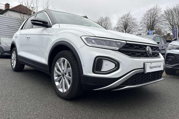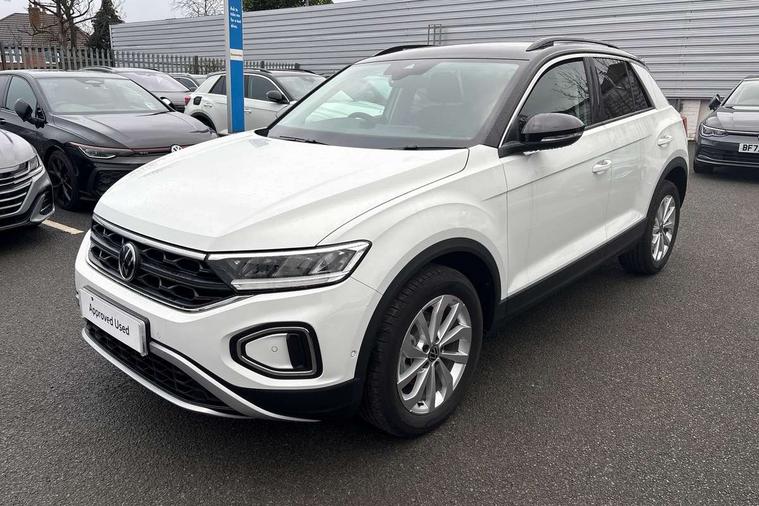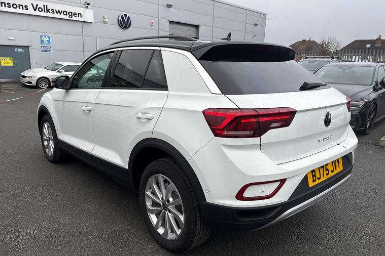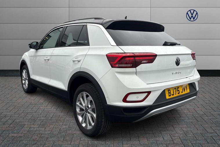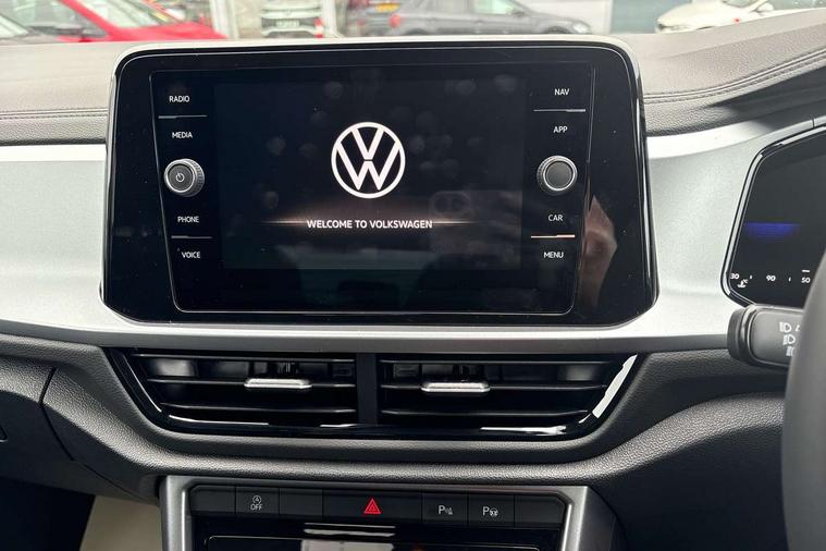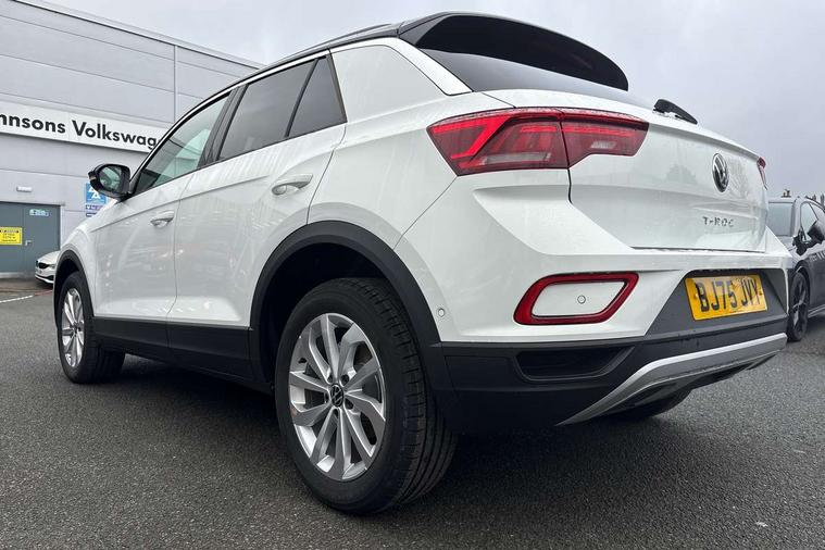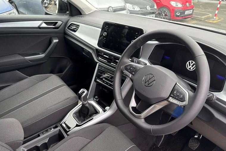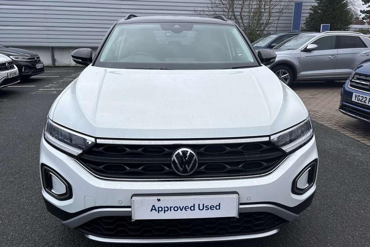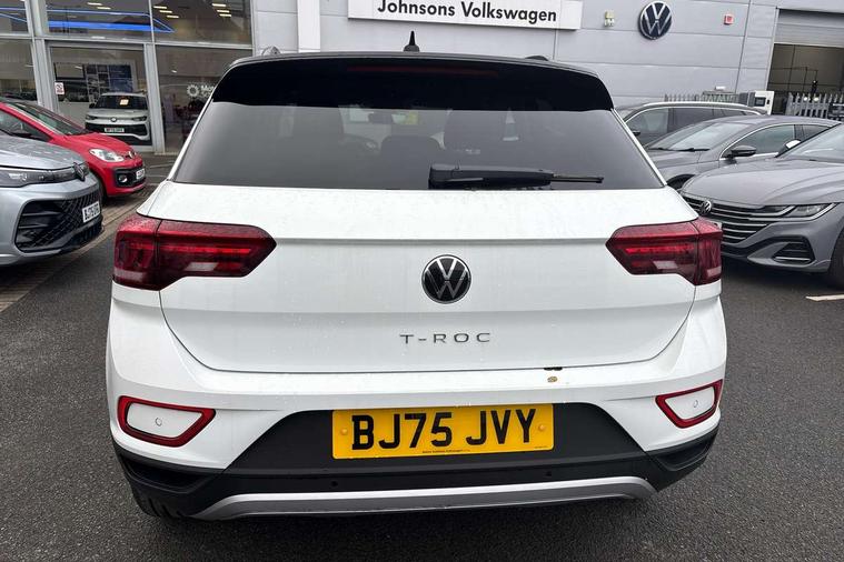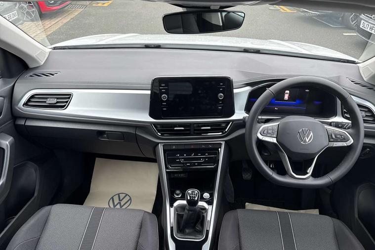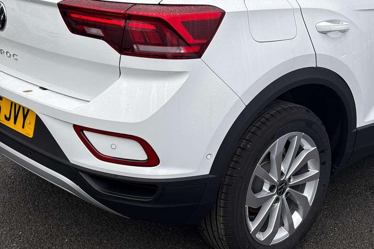 Advanced driver attention and drowsiness monitor, Dynamic road sign display, Emergency call service, Lane keeping system Lane Assist, Mobile phone interface, Modified key software - reduce switch off time for key status change to Long no motion, Online services, Park assist including front and rear parking sensors, Power assisted speed sensitive steering, Rear view camera, Service interval indicator, Tailgate/trunk lid release from outside, Think blue trainer driver tips and journey analysis, Warning sound and light for front seatbelts unfastened, Wireless app connect, Battery regeneration during braking, Front shock absorption, Rear shock absorption chassis with increased ride height, Start/stop function with battery regeneration, DAB Digital radio, Diversity antenna for FM reception, Music playback - MP3, WMA and AAC files, SD card slot, Simultaneous pairing of 2 compatible mobile devices, Title and cover art display, We Connect and We Connect Plus functionality, Auto dimming interior rear view mirror, Automatic hazard lights activation under emergency braking, Automatic headlight control with LED separate daytime running lights with coming/leaving home function, Black roof rails, Body coloured bumpers and radiator grille with chrome trim and front fog lamps with chrome bezel, Body coloured exterior mirror housings and door handles, Electrically adjustable and heated door mirrors, Extended roof spoiler, Exterior mirrors aspherical on driver side, convex on front passenger side, External USB type C socket and charging sockets, Front windscreen wiper with intermittent wipe and 4 position delay, Heated rear window, LED 3rd brake light, LED rear combination lamps, LED rear number plate lights, Power windows with comfort operation and circuit breaker, Privacy glass for rear side windows and rear window, Rain sensor, Rear exhaust tailpipe, Rear fog light on one side and reversing lights on both sides, Rear side wing doors, Rear wash/wipe with intermittent wipe setting, Remote electrically foldable door mirrors, puddle lights and reverse activated passenger's door mirror, 12V power socket in centre console, 3 rear head restraints, 3 seat bench in 2nd row, 4 load lashing points in luggage compartment, Air care climatronic air conditoning system with active combination filter and 2-zone temperature control, Black stitching for floor mats, Ceramique roof liner, Cloth upholstery, Door and side trim panel in cloth, Drawer under drivers seat, Driver/front passenger seat height adjustment, Front centre armrest, Front comfort sports seats, Front cupholders x 2, Front reading light, Front seat back storage pockets, Glove compartment door with light, Instrument lighting, white adjustable panel illumination, Interior ambient lighting and surround lighting, Interior light delay, Isofix child seat preparation, Leather gearshift handle, Load-through provision with cup holder when folded down ('Unsplit rear seat bench, split folding backrest, with centre armrest), Luggage compartment lighting, Lumbar support for driver's and front passengers seat, Non-folding front passenger seat backrest, Single front passenger seat, Storage compartment in left and right luggage area, Storage compartment in rear doors, Storage compartments in driver and front passenger doors, Sunvisors with illuminated vanity mirrors, Variable boot floor, height adjustable and removable, Driver assistance pack without proactive passenger protection - T-Roc Life/Match, 3 point height adj front seatbelts + pretensioners, 3 point seatbelts in outer rear with ECE label, ABS, Child locks on rear doors, City emergency braking and pedestrian monitoring, Driver and front passenger airbag with front passenger airbag deactivation, Driver and front passenger safety-optimised head restraints, Drivers seatbelt reminder, Electronic parking brake, Electronic Stability Control (ESC) inc EDL (Electronic Differential Lock) and ASR (Traction Control), Front and rear passengers curtain airbag system including front side airbags, Front disc brakes, Hill start assist, Predictive pedestrian protection, Rear disc brakes, Two tone horn, Tyre pressure loss indicator, Volkswagen roadside assistance, Alarm with interior protection, Keyless locking and starting system keyless access with safelock, Pewter matt decorative inserts for intrument panel, centre console and door panels at the front, Trims for alloy wheels,