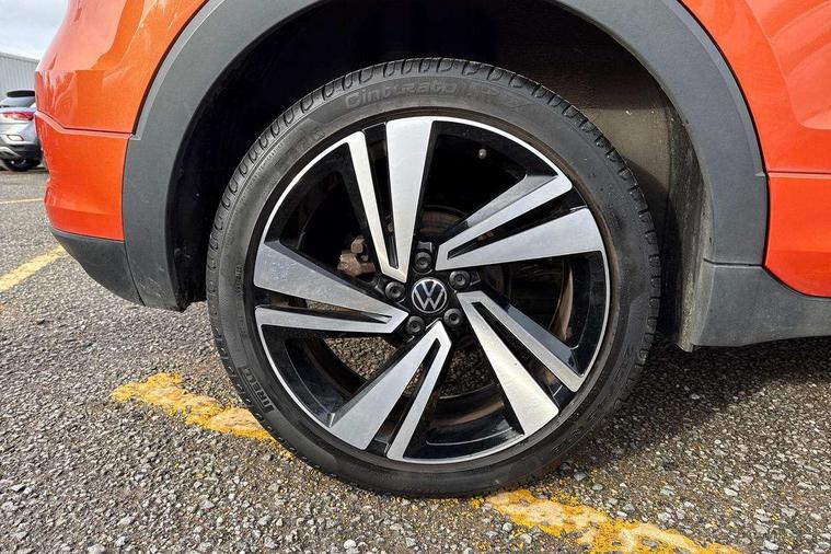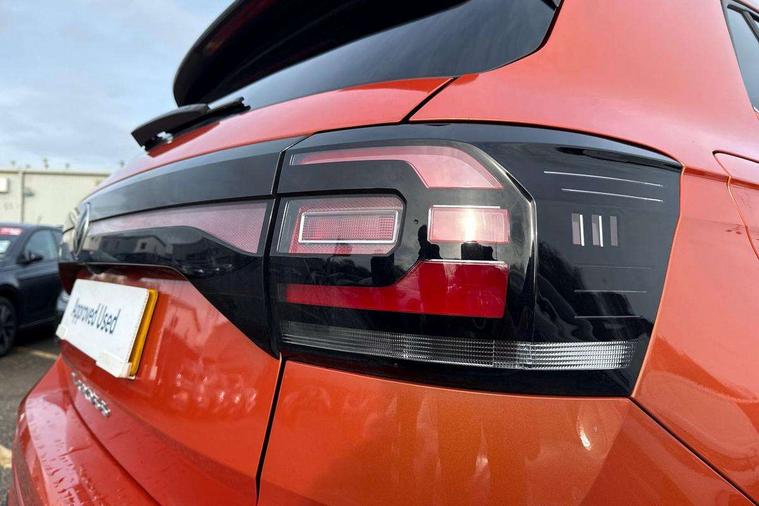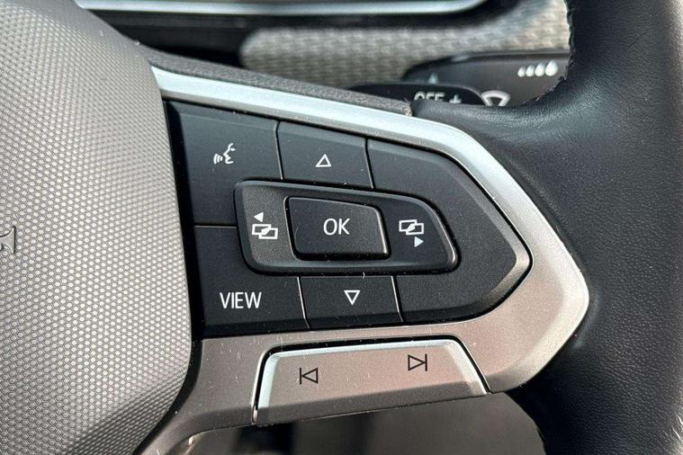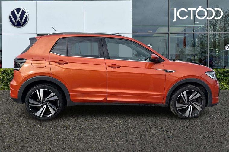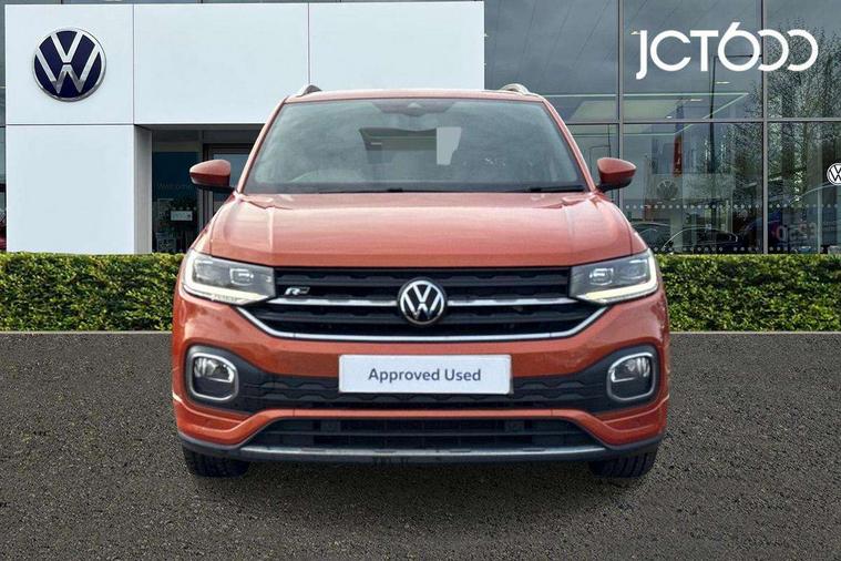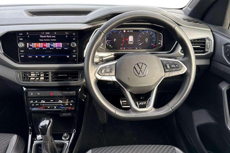 'Lights On' Reminder warning buzzer, 2D/3D map view, Active info display - 10.25" High resolution TFT dash display screen, Adaptive cruise control including front assist, forward collision warning, autonomous emergency braking, speed limiter, Blind spot monitoring, Bluetooth telephone and audio connection for compatible devices, Car information display, Driver alert system, eCall emergency call system, Lane assist, Low washer fluid warning light, Multifunction computer with visual gear change recommendation for fuel consumption, Operating permit alteration, Power assisted speed sensitive steering, Speed limit display, Speedo, rev counter, electronic odometer, trip, service interval display, exterior temperature and fuel gauge, Stop/start system, Warning sound and light for doors and tailgate open, Warning sound and light for front seatbelts unfastened, We connect plus preparation, Wireless Car net app connect with Apple CarPlay, combined functionality of Apple CarPlay/Android Auto and MirrorLink, Battery regeneration during braking, Misfuel prevention device, 2x USB connection with USB charging sockets and in rear centre console, DAB Digital radio receiver, Diversity antenna for FM reception, Multi device interface (MDI) with USB connection, Music playback - MP3, WMA and AAC files, Premium USB cable for Apple or Android smartphone compatibility, Simultaneous pairing of 2 compatible mobile devices, SMS Functionality, Three route options - Fast, Short, Eco, Title and cover art display, Automatic hazard lights activation under emergency braking, Body colour door handles, Body colour door mirrors with integrated indicators, Body colour rear roof spoiler, Body coloured bumpers, Dusk sensor + automatic driving lights, Electrically foldable, adjustable and heated door mirrors with reverse activated kerb view adjustment on passenger's side, Front and rear electric windows, Front fog lights with static cornering function, Galvanised body, Heated rear window, LED third brake light, Lower door sills and door pillars in black, Radiator grille with chrome trim and chrome bezel front fog lamp, Rear fog light on one side, reversing light on both sides, Rear lights incorporating LED technology, Rear side wing doors, Rear tinted glass 65% approx light absorbing from B pillar backwards, Rear window aerial, Rear windscreen washer and wiper with interval delay, Reflectors in all doors, Silver roof rails, Stainless steel door sill protection, Tailgate with integrated roof spoiler, Unique R Line badging, Windscreen wipers/ intermittent wipe + 4 position delay, 12V Accessory socket in centre console, 2 Front and rear reading lights incorporating LED technology, 2 Zone electronic climate control with automatic air recirculation, 3 rear head restraints and 3 rear three point seat belts with ECE label, 3 seat bench in 2nd row, 60/40 split folding rear seat backrest, Ambient lighting and sourround lighting, Black headlining, Branded points of interest, Brushed stainless steel pedals, Carbon flag cloth upholstery, Drawer under drivers seat, Driver and front passenger sunvisor with vanity mirror, Driver's sunvisor with ticket holder, Dust and pollen filter, Front and rear carpet mats with contrast stitching, Front centre armrest with storage compartment, Front footwell illumination, Front seat back storage pockets, Front seat R Line logo with rear seat backrest, Front sports seat with height and lumbar adjustment, Glovebox, Heating and fresh air system with 4 stage blower, Height/reach adjust steering wheel, Instrument lighting white adjustable panel illumination, Interior light with delay, Isofix child seat preparation for 2 rear child seats, Leather trimmed three spoke multifunction steering wheel with contrast stitching and aluminium inserts with R Line logo, Luggage compartment cover, Luggage compartment lighting, Moveable and foldable Rear bench seat, Scuff plates in door apertures, Steering wheel paddle shift, Storage compartment in drivers and front passengers door, Variable boot floor, R Line styling pack - T-cross, 3-point seat belts in front with electric tensioner + height adjustment, Anti-lock Braking System (ABS) with Hydraulic Brake Assist (HBA), Automatic post collision braking system, Driver and front passenger safety-optimised head restraints, Drivers and Front Passengers airbags with front passengers airbag deactivation switch, ESC with EDL, ASR, EDTC and trailer stabilisation function, Front and rear curtain airbags, Front seat side impact airbags, Hill start assist, Pre crash preventive occupant protection, Proactive passenger protection system in combination with front assist, Rear door child safety locks, Rigid safety cell with front and rear crumple zones, Single torn horn, Tyre pressure loss indicator, Volkswagen roadside assistance, Alarm with interior protection and deactivation via infotainment system, Child security locks in rear doors, Electronic engine immobiliser, Remote tailgate unlocking using key fob, Race decorative inserts in dash and doors, 18" Nevada black alloy wheels, Breakdown kit,