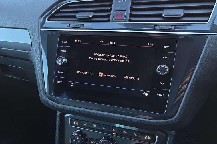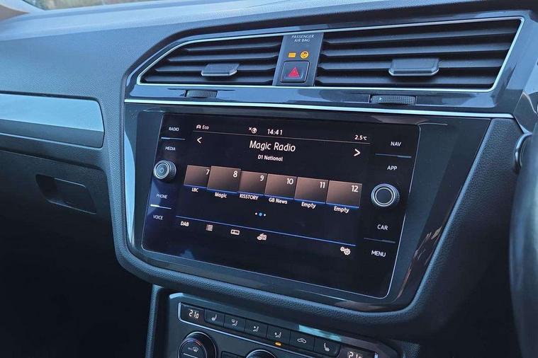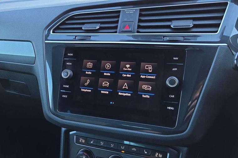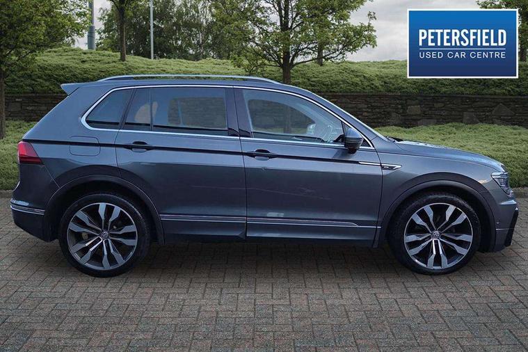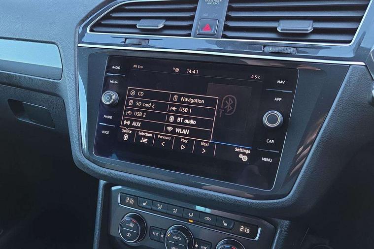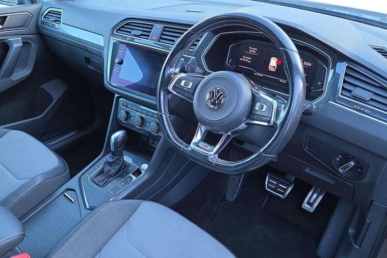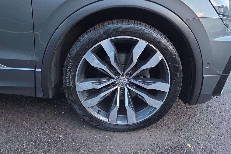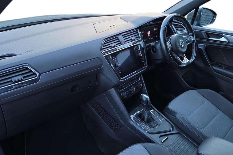 2D/3D map view, Active information display, Adaptive cruise control, App-Connect, Area view with park assist steering and front and rear parking sensors, Bluetooth phone integration system, Car information display, Distance control assist, Driver alert system with fatigue detection, Driver profile selection, Front assist, radar sensor controlled distance monitor, city emergency braking + predictive pedestrian protection, Fully electric tailgate + keyless entry and start, Instrument cluster, Lane assist, Lights on warning, Multifunction computer with visual gear change recommendation for fuel consumption, Outside temperature display, Progressive power assisted steering, Service interval indicator, Speed limiter, Start/Stop function, Warning sound and light for doors and tailgate open, Battery regeneration during braking, Diesel particulate filter, Misfuel prevention device for diesel engine, XDS electronic differential lock for improved traction and handling, 2 x USB connection + USB charging socket, 4 X 20 watt output, DAB Digital radio, SD card slot, Simultaneous pairing of 2 compatible mobile devices, SMS functionality - read, compose and send SMS messages using touch-screen display, Title and cover art display, 3D effect cherry red LED rear tail lights, Aluminium decorative inserts in dash and door panels, Auto dimming interior mirror, Automatic activation of hazard warning lights, Body colour door handles, Body colour door mirrors, Body colour rear spoiler, Body colour side skirt, Body coloured bumpers, Chrome side window surrounds, Chrome trimmed radiator grille, Coming/leaving home lighting function, Dusk sensor + auto driving lights, Electric panoramic sunroof with sunblind, Electrically heated and foldable door mirrors, door mirror puddle lights and reverse activated kerb view adjustment on passenger's door mirror, Front and rear electric windows, Heated rear window, High level 3rd brake light, LED headlights with dynamic light assist daytime running lights and cornering front fog lights, LED rear number plate lights, Piano black front air intake and rear diffuser, R Line body kit, R Line side sills, Rain sensor windscreen wipers, Rear tinted glass from B-pillar backwards approx 65% tinted, Rear windscreen washer and wiper with interval delay, Side skirts and rear bumper with chrome insert, Silver front underbody protection and rear diffuser, Silver roof rails, Trailer Stability Programme, Unique R Line badging, Windscreen wipers/ intermittent wipe + 4 position delay, 12V socket in centre console storage area, 2 cup holders in front, 3 rear headrests, 3 zone climate control, 4 load lashing points, 40:20:40 split folding rear seats, Bag hook in luggage compartment, Black headlining, Foldable front passenger seat backrest, Front + rear carpet mats, Front centre armrest with 12v socket, Front centre armrest with storage + rear 2 air vents, Front seat back storage pockets, Front seat R Line logo with rear seat backrest, Front seatback folding tables, Height/reach adjust steering wheel, Illuminated driver/passenger vanity mirrors, Illuminated scuff plates, Instrument lighting white adjustable panel illumination, Interior light with delay, Isofix Preparation 2 Rear child seats, Leather gear knob, Load through provision with 2 cupholders when folded, Lockable cooled glovebox, Luggage compartment lighting, Map pockets on front seats, Passenger seat height adjuster, Removable luggage cover, Sliding/reclining rear seats, Stainless steel pedals, Storage compartment in driver's door, Storage compartment in passenger's door, Storage compartment in rear doors, Storage compartments in luggage area left and right, Storage tray on dashboard, Sunglasses storage, Three spoke leather trimmed multifunction steering wheel with aluminium inserts and R Line Logo including paddle shift, Unique R Line door sill protectors, Variable boot floor, height adjustable and removable, Ambient lighting pack - Tiguan, R Line styling pack - Tiguan, 3 rear 3 point seatbelts, ABS+EBD+Brake assist, Active bonnet, Active pedestrian safety system, Curtain airbags, Driver/Front Passenger airbags, Driver/Passenger whiplash optimised head restraints, Drivers knee airbag, DTC - Drag torque control, Electronic parking brake with auto hold, ESC with EDL, ASR, EDTC and trailer stabilisation function, First aid kit, Front seat side impact airbags, Front side airbags, Front ventilated disc brakes and rear disc brakes, Head airbag system, Height adjustable front 3 point seatbelts + pretensioners, Hill hold control, Passenger airbag deactivate switch, Passenger knee airbag, Pre crash preventive occupant protection, Rear side airbags, Rigid safety cell with front and rear crumple zones, Two tone horn, Warning sound and light for front seat belts if unfastened, Warning triangle, Alarm with interior protection, Electronic engine immobiliser, Remote central locking with 2 remote folding keys, Chrome door trim inserts, Dark grey decorative inserts in dash and door panel, Piano black decorative inserts in centre console, 20" Suzuka alloy wheels with mobility self sealing tyres + anti theft wheel bolts, Steel space saver spare wheel,