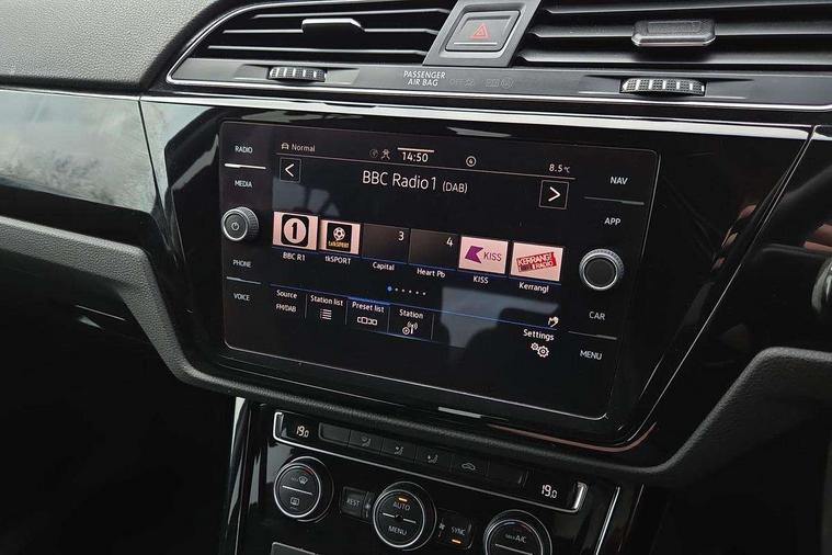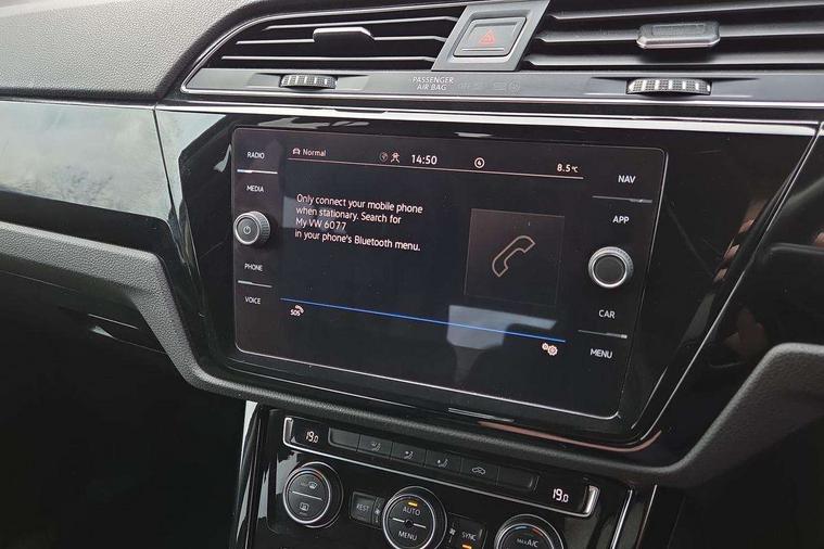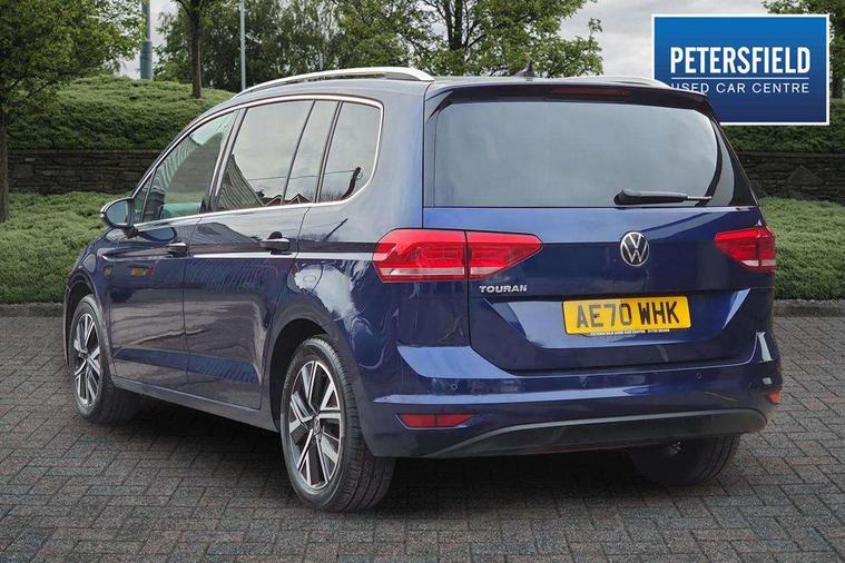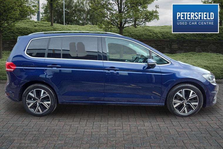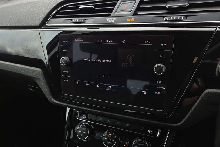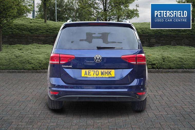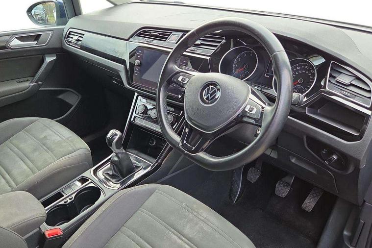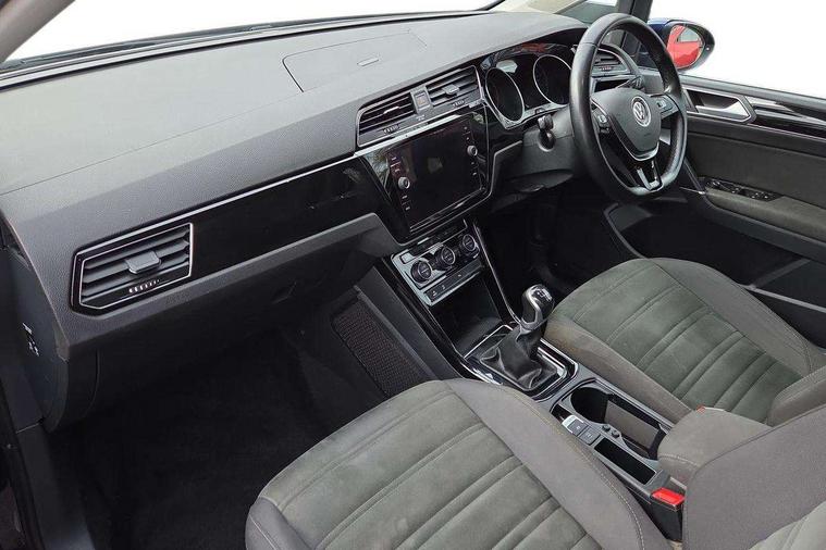 Adaptive cruise control, Audible lights on warning, Bluetooth telephone connectivity, Car information display, Driver alert system, Driver electronic voice amplification function, Electronic odometer, External temperature gauge, Flat tyre indicator, Mobile pairing with SMS function, Multifunction colour display, Rev counter with fuel gauge, Speed limiter, Speed sensitive power steering, Stop/start system, Think blue trainer driver tips and journey analysis, Trip and service interval display, Petrol Particulate Filter, XDS electronic differential lock, 4x20 watt output, Audio Connectivity System, DAB Digital radio, MP3/WMA compatability, SD card slot, Title and cover art display, USB connection, Aerial integrated into side window, Body colour bumpers, Body colour door handles, Body colour door mirrors with integral indicators, Chrome fog light surround, Chrome lower front bumper insert, Chrome trimmed front air intake surrounds, Chrome trimmed radiator grille louvre inserts, Chrome trimmed side windows, Dusk sensor + auto driving lights, Electric folding door mirrors with reverse activated kerb-view adjustment on passenger's door mirror, Front and rear electric windows, Front fog lights with static cornering function, Fully galvanised body, Gloss black finish B pillar, Green tinted heat insulating glass, High level third brake light, Rear tinted glass from B-pillar backwards approx 65% tinted, Rear wash/wipe with intermittent wipe setting, Silver roof rails, Tailgate wiper- reverse gear activation, Twin chrome exhaust tailpipes, Volkswagen roundel, Windscreen wipers intermittent wipe, 12V power point for Row 2, 12V socket in luggage compartment, 2 individual fold flat 3rd row seats, 2 three point seatbelts in 3rd row, 2nd row centre armrest, 2nd row centre seat converts into table, 3 single slide/fold/removable 2nd row seats, 3 spoke steering wheel, 3 Zone electronic climate control with automatic air recirculation, 3x3 point seatbelts on 2nd row with height adjust on outer seats, 4 boot load lashing points, 4 way adjustable front head restraints, 5 headrests, Ambient lighting in door trim and foot well, Driver and front passenger under seat drawer, Dust/pollen filters, Foldable front passenger seat backrest, Front + rear carpet mats, Front and rear reading lights, Front centre armrest with storage compartment, Front cupholders x 2, Front seat storage pockets, Front seatback folding tables, Height adjustable driver's seat, Height/reach adjust steering wheel, Illuminated glovebox, Illuminated vanity mirrors, Instrument lighting white adjustable panel illumination with red night time illumination, Interior light with delay, Isofix on 2nd row outer seats, Isofix on 3rd row seats, Large storage compartment in roof console, Leatherette on rear of front seats, Low tunnel 2nd row seat, Media box in dashboard on passenger side, Multi storage in passenger/luggage areas, Multi-function centre console with storage facilities, Retractable luggage cover, Split folding rear seat backrests, Storage bins on all doors, Convenience Pack - Touran, Mirror pack - Touran, 3 point height adjustable front seatbelts, Auto hold function, Automatic post collision braking system, Door open warning reflectors, Driver/Front Passenger airbags, Drivers knee airbag, EDL + ASR, Electronic parking brake, Energy recovery system, ESC with ABS, First aid kit, Front and rear (row 2) curtain airbags, Front assist including city emergency braking, Front seat side impact airbags, Front/rear disc brakes, Hill hold control, Hydraulic Brake Assist (HBA), Loose wheel warning function, Manual passenger airbag deactivation function, Pre crash preventive occupant protection, Seatbelt warning lamp and buzzer, Traction control, Two tone horn, Warning triangle, Alarm with remote central locking and interior protection, Electronic engine immobiliser, Chrome plated instrument surrounds, Piano black decorative inserts, Tyre mobility system,