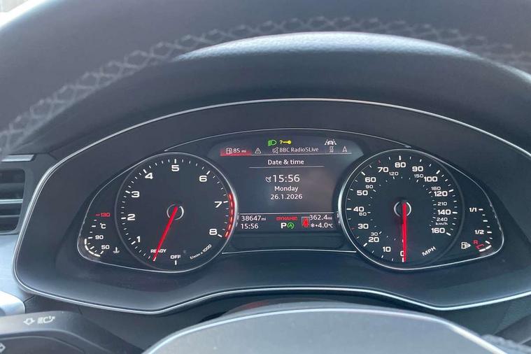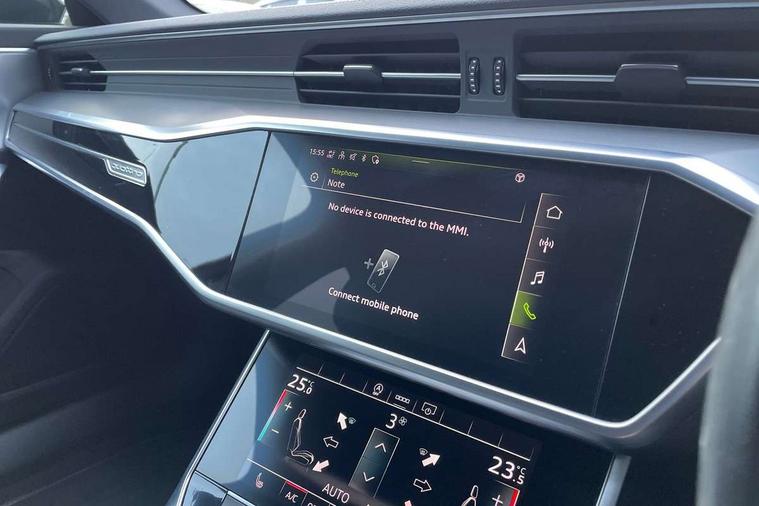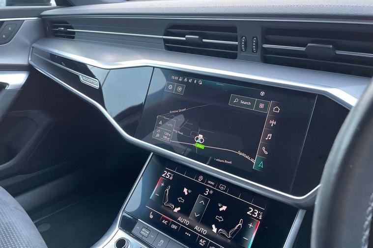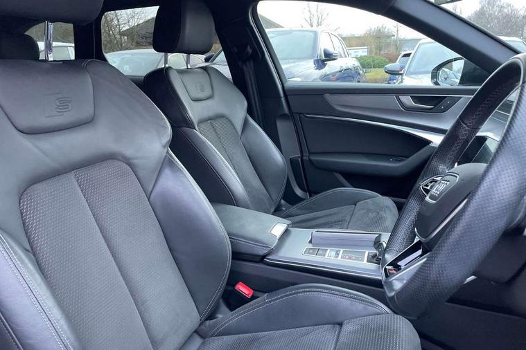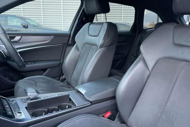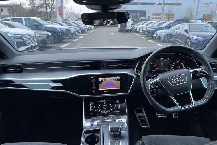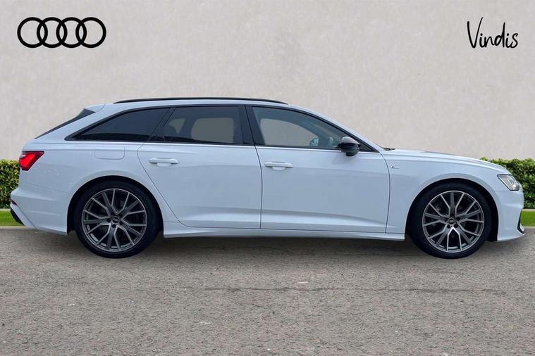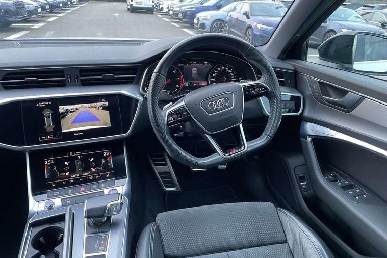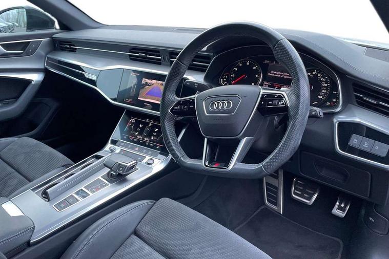 7" high resolution colour driver information display system, Audi connect safety and service (e-call), Audi drive select, Audi parking system plus - acoustic and visual park assist system for front and rear, Audi smartphone interface, Automatic start/stop system with coasting functionality, Bluetooth interface, Lane departure warning system, MMI navigation with MMI touch + twin touch screens 8.8" and 8.6" with haptic and acoustic feedback, Power operated tailgate, Progressive steering, Rear view camera, Service interval indicator, Voice control system, 12V Mild hybrid, Quattro on demand, Sports suspension, Audi music interface, Audi sound system, Auxiliary input socket, DAB Digital radio, USB connection, Black roof rails, Electric front/rear windows, Frameless auto dimming interior rear view mirror, Gloss black exterior mirror housings, Gloss black highlights on the exterior area of the Audi Single frame, Gloss black highlights on the front and rear bumpers, Gloss black highlights on the radiator grille, Gloss black highlights on the side windows trim strips, Headlight washers, Heat insulating glass in side and rear windows, Heat insulating glass in windshield, LED rear lights, LED signature front daytime running light, Matrix LED headlights with dynamic rear indicators, Matt black rear diffuser with diffuser strip and tailpipes in chrome, Matt black side air intake grille with inlay in matt aluminium, Privacy glass, Rain and light sensors, Rear roof spoiler, Signature rear LED light design, 2 zone deluxe electronic climate control, 4 way electric lumbar support for driver and front passenger, 40/20/40 split folding 3 rear seat bench in 3 parts with rear centre armrest, Black cloth headlining, Electrically adjustable front seats with driver memory, Front centre armrest, Front head restraints, Front/rear floor mats, Heated front seats, Height/reach adjust steering wheel, Illuminated door sill trims with S logo, Illuminated sun visors with vanity mirrors, ISOFIX child seat mounting and Top Tether with front passenger airbag deactivation, Leather gear knob, Luggage compartment system, Rear headrests, Stainless steel pedals and foot rest, Tool kit and car jack, LED Interior Ambient Lighting Pack - A6, Non smoking pack - A6, 3 point seatbelts on all seats, Airbags - Front side, front and rear including head, Audi pre-sense front, Black seatbelts, EBD - Electronic brakeforce distribution, Electromechanical parking brake, Electronic Stability Control (ESC) including ABS, ASR and EDL, Extended pedestrian protection measures, Seatbelt monitoring, Tyre pressure warning light, Warning triangle and first aid kit, Anti theft alarm with tow away protection, Anti-theft wheel bolts and wheel loosening detection, Immobiliser, Keyless Go, Remote central locking, Matt brushed aluminium dark inlays, 20" 5 V spoke star design Audi sport cast aluminium alloy wheels in matt titanium look,