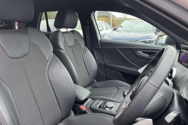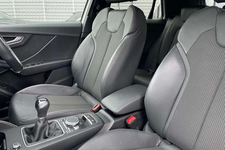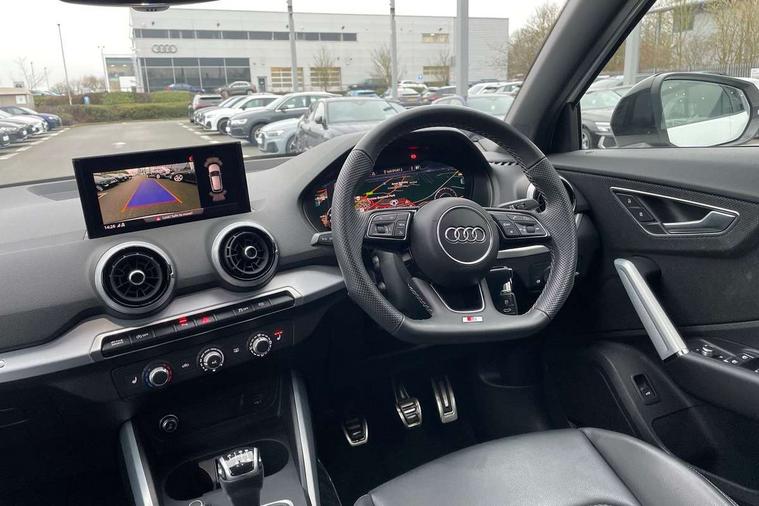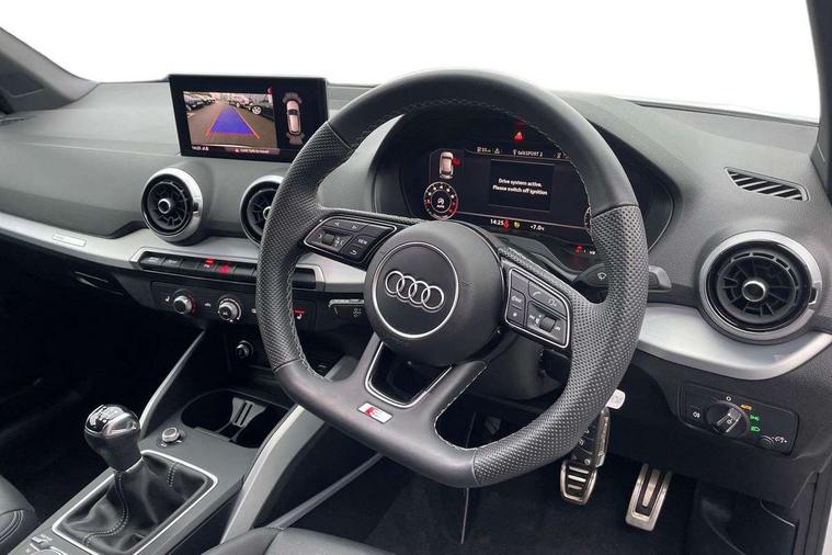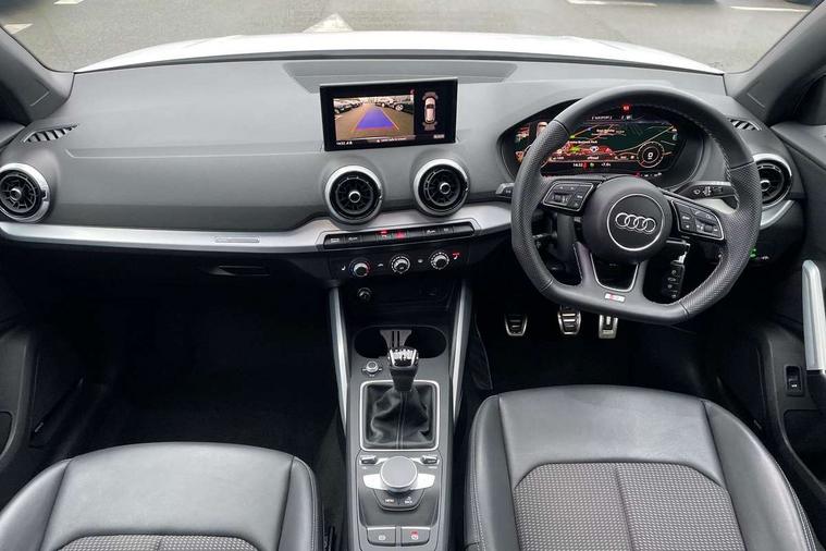3D map display, Audi connect navigation and infotainment includes innovative services, Audi connect remote and control connects your vehicle to your smartphone, Audi drive select: power steering assistance + engine (modes: comfort, auto, dynamic, efficiency, individual), Audi smartphone interface - Apple carplay/Android Auto, USB connect, 2xSDXC card readers, voice control for navi, telephone, music and 3rd party apps, Audi virtual cockpit, Automatic start/stop system with recuperation, Bluetooth interface includes bluetooth audio streaming, Cruise control, E-call, Jukebox hard drive memory for music (10GB), MMI navigation plus with 8.3" colour MMI screen and MMI touch, Natural voice recognition, Power operated tailgate, Progressive steering, Rear parking sensors, Sport suspension, 6 passive loudspeakers, DAB Digital radio, Audi beam, Auto dimming rear view mirror, Black window trims, Bumper in full body colour paint finish, Electrically adjustable, folding, auto dimming and heated door mirrors with integrated LED side indicators, Front windscreen with grey tinted sunband, LED daytime running lights, LED headlights with dipped beam, high beam, position lights, indicators, LED rear lights, LED third brake light, Privacy glass - dark tinted rear and rear side windows from B-pillar backwards, Rear side wing doors, Rear wiper, Variable front intermittent wipers, Wheel arch trims in manhattan grey, 12V socket in front, 3 seat bench in 2nd row, 3 spoke flat bottomed multi-function leather sport steering wheel, 4-way electric lumbar support for front seats including manual seat height adjustment for both front seats, 60/40 split folding rear seat bench, Black carpets, Black cloth headlining, Front and rear head restraints, Front centre armrest, Front sport seats, Front/rear floor mats, Height/reach adjust steering wheel, Illuminated door sill trims with S logo, ISOFIX child seat mounting in front passenger and rear outer seats, Manual air conditioning, Single front passenger seat, Stainless steel pedals, Black styling pack - Q2, 3x3 point rear seatbelts, 6 airbags - Front, curtain and front side airbags, Electromechanical parking brake, Electronic stabilisation control including ABS, ASR and EDL, Front passenger airbag deactivation, Hill hold assist, Pre-sense front with pedestrian recognition, Seatbelt monitoring, Tyre pressure warning light with visual and acoustic warning, Warning triangle and first aid kit, Anti theft alarm, Anti theft wheel bolts, Electronically operated child locks, Remote central door locking, Aluminium interior element, Black dashboard, Matt brushed aluminium trim inlays, Tool kit,