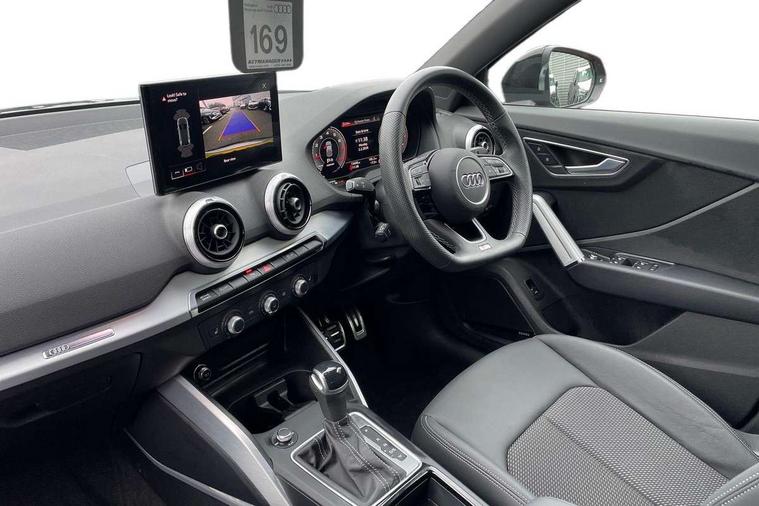 3D map display, Audi connect navigation and infotainment includes innovative services, Audi connect remote and control connects your vehicle to your smartphone, Audi drive select: S tronic - power steering assistance + engine + gearshift (modes: comfort, auto, dynamic, efficiency, individual), Audi smartphone interface - Apple carplay/Android Auto, USB connect, 2xSDXC card readers, voice control for navi, telephone, music and 3rd party apps, Audi virtual cockpit, Automatic start/stop system with recuperation, Bluetooth interface includes bluetooth audio streaming, Cruise control, Distraction and Fatigue warning, E-call, Jukebox hard drive memory for music (10GB), Lane departure warning, MMI navigation plus with 8.8" touchscreen, Natural voice recognition, Power operated tailgate, Progressive steering, Rear parking sensors, Sport suspension, 6 passive loudspeakers, DAB Digital radio, USB type C port, Audi beam, Auto dimming rear view mirror, Black window trims, Bumper in full body colour paint finish, Electrically adjustable, folding, auto dimming and heated door mirrors with integrated LED side indicators, Front windscreen with grey tinted sunband, LED daytime running lights, LED headlights with dipped beam, high beam, position lights, indicators, LED rear lights, LED third brake light, Privacy glass - dark tinted rear and rear side windows from B-pillar backwards, Rear side wing doors, Rear wiper, Variable front intermittent wipers, Wheel arch trims in manhattan grey, 12V socket in front, 3 seat bench in 2nd row, 3 spoke flat bottomed multi-function leather sport steering wheel with gear shift paddles, 4-way electric lumbar support for front seats including manual seat height adjustment for both front seats, 60/40 split folding rear seat bench, Black carpets, Black cloth headlining, Front and rear head restraints, Front centre armrest, Front sport seats, Front/rear floor mats, Height/reach adjust steering wheel, Illuminated door sill trims with S logo, ISOFIX child seat mounting in front passenger and rear outer seats, Manual air conditioning, Single front passenger seat, Stainless steel pedals, Black styling pack - Q2, 3x3 point rear seatbelts, 6 airbags - Front, curtain and front side airbags, Electromechanical parking brake, Electronic stabilisation control including ABS, ASR and EDL, Front passenger airbag deactivation, Hill hold assist, Pre-sense front with pedestrian recognition, Seatbelt monitoring, Tyre pressure warning light with visual and acoustic warning, Warning triangle and first aid kit, Anti theft alarm, Anti theft wheel bolts, Electronically operated child locks, Remote central door locking, Aluminium interior element, Black dashboard, Gloss black centre console, Matt brushed aluminium trim inlays, Tool kit,