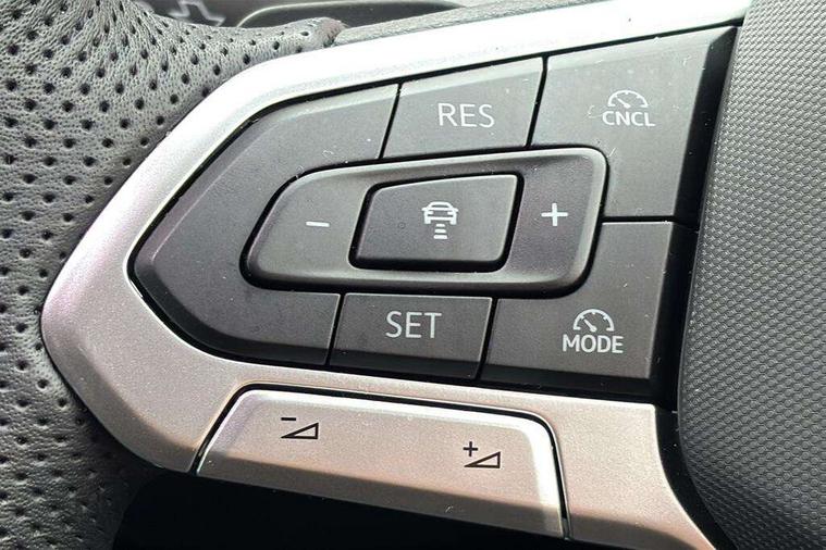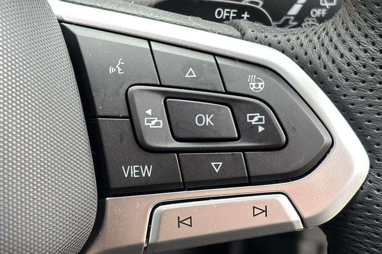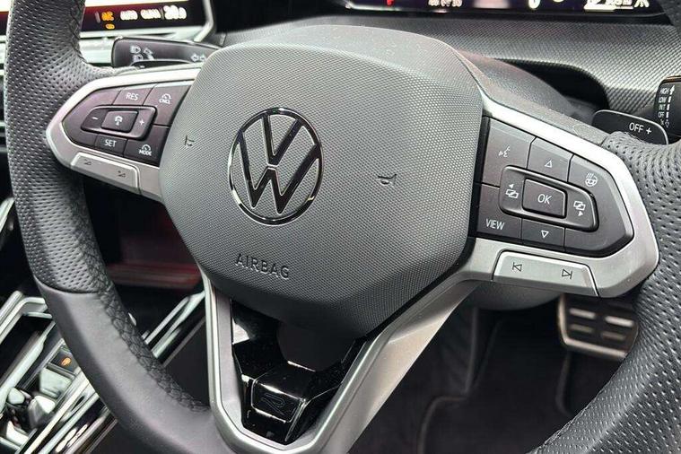 Activated carbon canister, Adaptive cruise control (ACC), Advanced driver attention and drowsiness monitor, Dynamic road sign display, Dynamic steering, E-Sim card for online connectivity, eCall emergency call system, Multi-color Digital cockpit pro, selection of different info profile possible, Multifunction front facing camera for distance control, Navigation system, Oncoming vehicle braking when turning including swerve support, Speed limiter, Speedo, rev counter, electronic odometer, trip, service interval display, exterior temperature and fuel gauge, Traffic jam assist, Voice enhancer and voice control, Warning signal and warning light for front and rear seatbelts not fastened, We connect plus preparation, We connect preparation, Wireless app connect, Hybrid propulsion system, Petrol Particulate Filter, Start-stop system with battery regeneration (recuperation - energy recovery during braking), XDS electronic differential lock for improved traction and handling, 2 USB C ports in front, 2 USB charging sockets on the centre console in the rear charging capacity upto 45W, Digital radio reception (DAB), Diversity antenna for FM reception, Gaming platform via car app, Infotainment system with 12.9" display, Mobile phone interface with inductive charging feature, 3rd brake light, Automatic headlamp activation with Coming home and Leaving home feature, Body colored bumpers in R-Line style, Body colour door handles, Exterior mirrors convex on the left and aspherical on the right, Front and rear electric windows, Heat insulating windshield made of laminated glass, LED separate daytime running light, Rear exhaust tailpipe, Rear fog light on one side and reversing lights on both sides, Rear side wing doors, Rear windscreen washer and wiper with interval delay, Remote electrically foldable door mirrors, puddle lights and reverse activated passenger's door mirror, Welcome light with surround lighting, 12V socket in front centre console, 12V socket in luggage compartment, 3 rear head restraints, 3 seat bench in 2nd row, Ambient lighting with 30 colour including LED light unit in front footwell with selectable light colour, Black roof lining, Brushed stainless steel pedals, Chrome plated radiator grille inserts, air vent surrounds and light switch surrounds, Door insert, side trim panel and arm support in leatherette, Front + rear black carpet mats, Front centre armrest, Front seat lumbar support adjuster, Integrated front head restraints, ISOFIX anchors for child seats on outer rear bench seats and on front passanger seat compatible for i-Size, Luggage compartment lighting, Manual height adjustable front passenger seat, Manually height adjustable driver seat, Plastic gear knob, Premium sports seats in front, Rear cupholder and loadthough, Sardegna cloth upholstery with front and outer rear seats Art Velour inner sides of bolsters, Single front passenger seat, Split folding backrest with centre armrest and unsplit rear seat bench, Sun visors with illuminated vanity mirrors, Titanium black instrument panel, 3 point height adj front seatbelts + pretensioners, 3 rear three point seatbelts, ABS, Autonomous emergency braking front assist with pedestrian and cyclist monitoring, Child locks on rear doors, Driver and front passenger airbag with front passenger airbag deactivation, Electronic parking brake with auto hold, ESC (Electronic Stability Control), Extended pedestrian protection measures, Hill start assist, Rear disc brakes, Two tone horn, Tyre pressure loss indicator, Volkswagen roadside assistance, Anti theft wheel bolts, Preparation for alcohol interlock, Decorative inserts carbon grey for dashboard and front door trim panels, Tool kit for tyre mobility set, Tyre mobility kit Includes 12V compressor and tyre sealant,