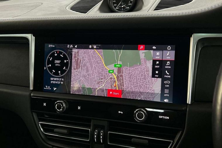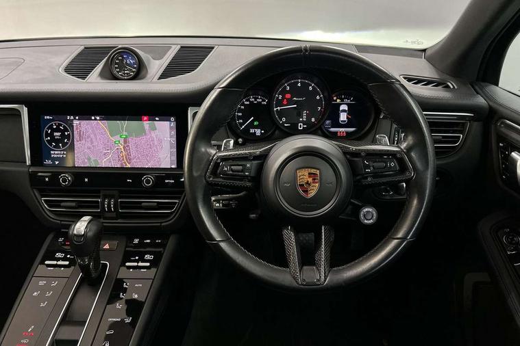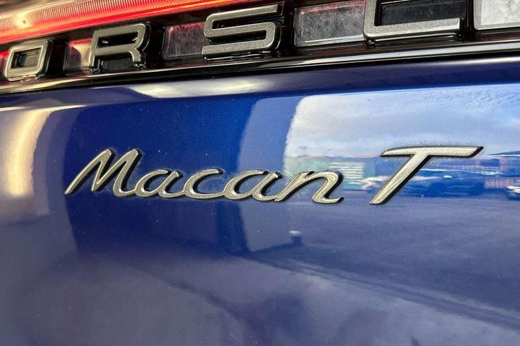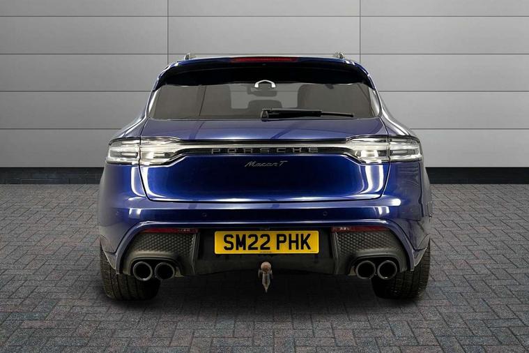 Analogue clock on dashboard, Automatic start/stop system, Automatic tailgate, eCall emergency call system, Instrument cluster with high resolution 4.8-inch TFT display, gear indicator for PDK, service interval display, external temperature indicator, fuel gauge, Off-road button, On board computer, Porsche Communication Management (PCM) including online navigation module, mobile phone preparation, audio interfaces and voice control system, 7-Speed Porsche Doppelkupplung (PDK) with automatic mode and manual controls (gearshift paddles) on steering wheel, Direct fuel injection (DFI), Gasoline particulate filter, VarioCam camshaft control for inlet and exhaust valves, 2 USB sockets in rear centre console, Apple CarPlay with Siri voice recognition, Connect Plus including online navigation, LTE communication module with SIM card reader, wireless internet access, Porsche Car Connect services, DAB Digital radio, Porsche Vehicle Traking System Plus (PVTS Plus), Two USB C charging and connectivity ports in the front centre console storage compartment, Active radiator grille shutters, Automatic headlight activation including welcome home lighting, Bumper system with high strength cross members and two deformation elements + One threaded fixture point for towing eye contained in onboard tool kit, Dynamic cornering lights, speed-sensitive headlight and dynamic range control, adverse weather function, four-point LED daytime running lights, Electric front and rear windows with remote closing function + anti trap + one touch, Electrically folding and heated exterior mirrors, Front light modules with LED position lights and direction indicators, Front windscreen wipers with two speeds, intermittent wipe and rain sensor, Front with integrated cooling air intakes, Fully galvanised body, Heated rear window with automatic switch off, High gloss black side window trims, High level 3rd LED brake light integrated into roof spoiler, Loading edge protection in aluminium, Rear side wing doors, Rear window wiper with intermittent function and washer jet, Roof spoiler in agate grey metallic, Towbar preparation, 3 adjustable rear headrests, 3 rear seats, 40:20:40 split folding rear bench seat, Cloth hook b-pillar, Floor mats with Porsche logo, Fold up centre console armrest with fore/aft adjustment, Front and rear bottle holders in door panels, Front headrests, Front passenger seat, Glove compartment, Isofix fastening system for child seats on outer rear seats, Luggage compartment cover, Particle/pollen filter with active carbon filter, Rear armrest with 2 cupholders, Storage bin in centre console, Storage compartment in side of luggage compartment and storage compartment in spare wheel recess, Storage pocket in front and rear doors, Two integrated cup holders in front with variable diameter, Two socket 12V power outlets in front console and luggage compartment, uncovered storage compartment in centre console, Ambient comfort lighting pack - Macan, Lower exterior trim package in black - Macan, Sport chrono package including mode switch - Macan T, 3-point automatic seatbelts with front and outer rear seats pretensioners and force limiter + manually height adjustable seatbelt + reminder warning, Auto hold function, Black painted brake calipers, Child locks on rear doors, Curtain airbags along entire roof frame and side windows from A pillar to the C pillar, Electronic parking brake, Front passenger airbag deactivation facility for installation of child seats indicator in overhead console, Front side airbags integrated into seat, Full size driver and passenger airbags, Internally vented brake discs with diameter of 350mm at front and 330mm at rear, Multi-Collision braking, Porsche hill control (PHC), PTM(Porsche Traction Management) and All-wheel drive with map-controlled multi-plate clutch, Roll over sensor for curtain airbag and seatbelt pretensioners, Side impact protection in doors, Tyre pressure monitoring system, Vehicle stability system, Porsche stability management (PSM) including ABS, ASR, ABD, MSR and trailer stability management, Vented discs brake with 4 piston aluminium monobloc fixed caliper at front, Vented discs brake with combination floating calipers at rear, Alarm system with ultrasonic interior surveillance, Engine immobiliser with key transponder, Remote control central locking, Accent trims with silver coloured finish,