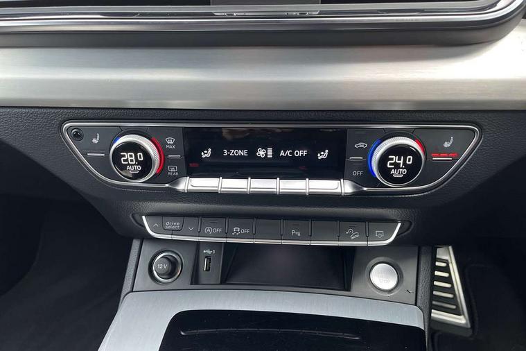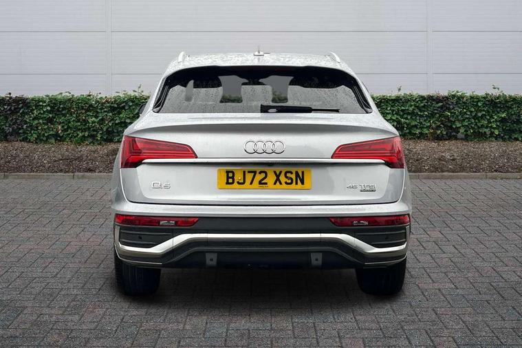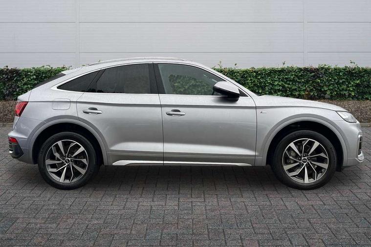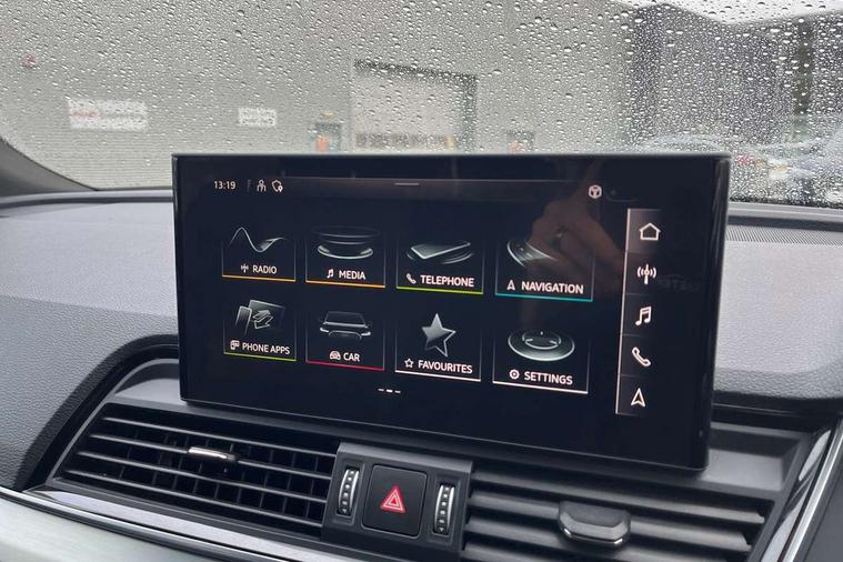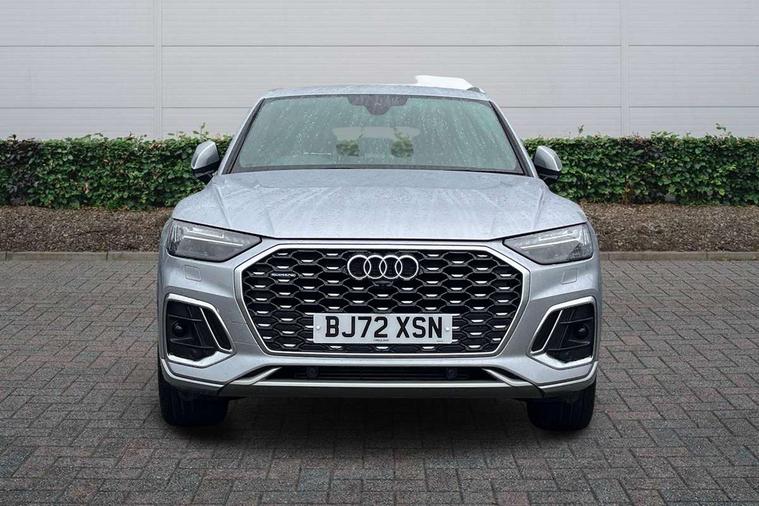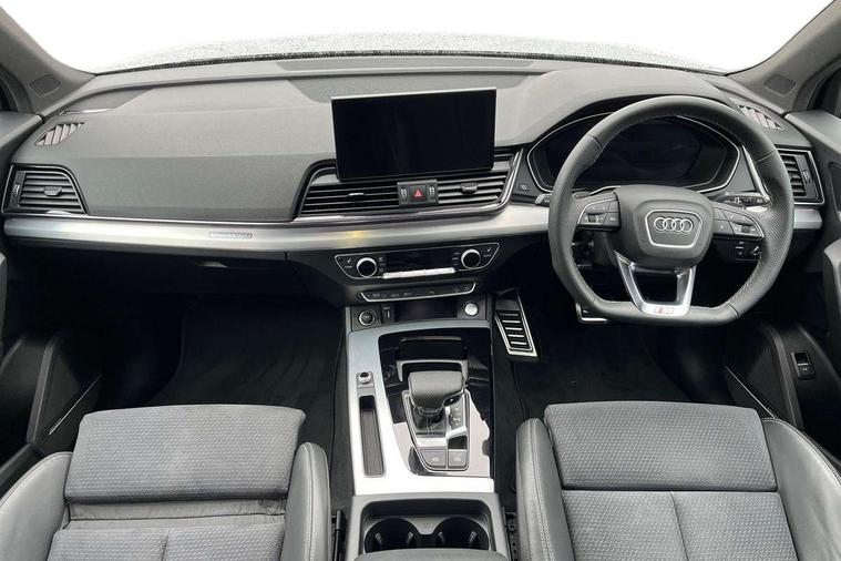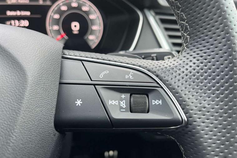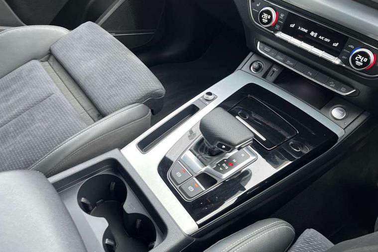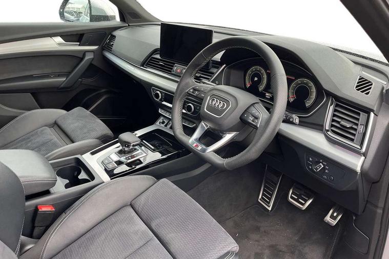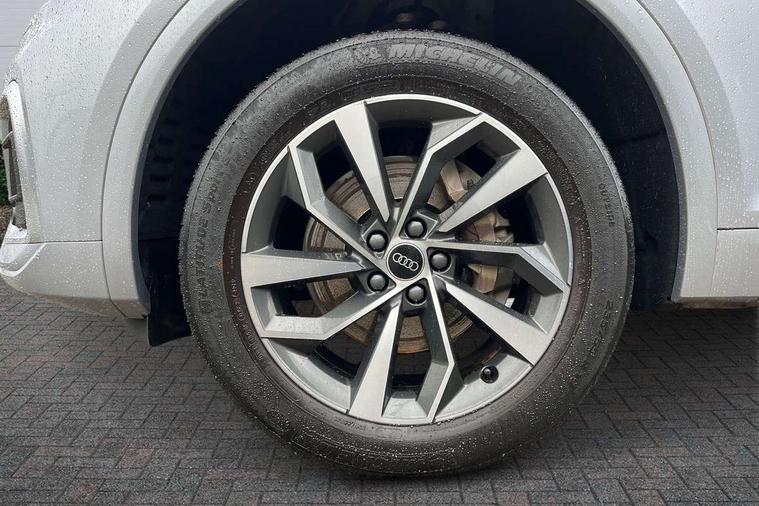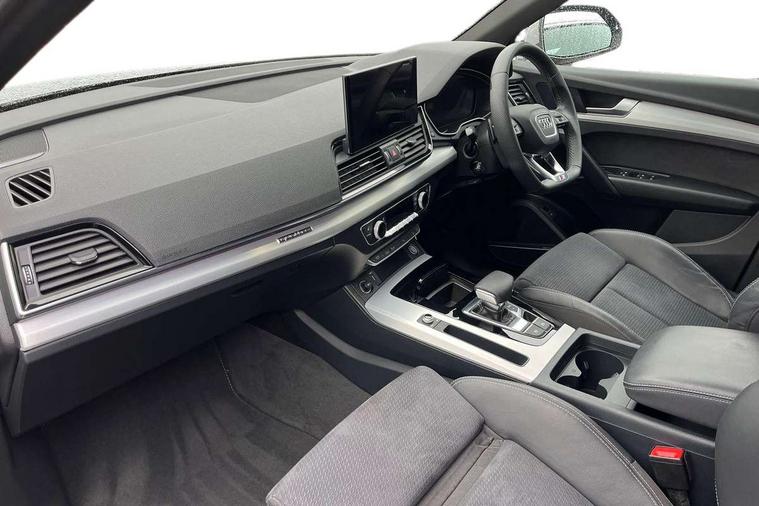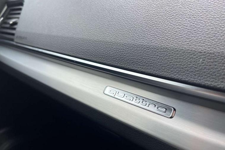 Audi connect safety and service (e-call), Audi connect with Amazon Alexa Integration, Audi drive select, Audi virtual cockpit plus with 12.3" screen and three different layout designs, Audi wireless smartphone interface, Automatic start-stop system with coasting functionality and efficiency programme, Bluetooth interface, Electro - mechanical power assisted steering, MMI navigation plus with 10.1" touch screen, Power tailgate, Reversing camera, Service interval indicator, Voice control system with Audi hotword activation "Hey Audi", Quattro on demand, S line sports suspension, 2 x USB charging port with aux input socket, DAB Digital radio, Acoustic windscreen, Aluminium roof rails, Audi matrix LED headlights with dynamic front and rear indicators, Auto dimming door mirrors, Auto dimming rear view mirror, Automatic headlights and windscreen wipers, Body colour door mirrors, Body colour rear diffuser with matt aluminium silver surrounds, Body colour underbody protection, Chrome plated exhaust trims, Daytime running lights, Door sills in Selenite silver, Electric adjustable/heated/folding door mirrors, Front air inlet surrounds in aluminium, Front and rear electric windows, Front radiator grille in honeycomb design, Headlight washers, High level LED brake light, Lower bumpers painted in contrast Manhattan grey, Rear chrome trim strip below lights, Rear privacy glass and rear side windows, Rear side wing doors, Rear wiper, Roof bars, S Line badges on the front wings, S Line front and rear bumpers, S Line rear spoiler, S Line side skirts, 3 rear headrests, 40:20:40 split folding 3 rear bench seat in 2nd row with rear centre armrest, Black cloth headlining, Comfort front centre armrest, Contrast stitching on seats, steering wheel and gear lever gaiter, Deluxe 3 zone electronic climate control, Front head restraints, Front/rear floor mats, Gear lever in black leather, Heated front seats, Height/reach adjustable steering column, Illuminated door sill trims with S logo, ISOFIX child seat mounting and top tether, Manual seat adjustment with 4-way electric lumbar support, Removable luggage compartment floor, Single front passenger seat, Stainless steel pedals, Sunvisors with vanity mirrors, Trunk roller cover, High gloss pack - Q5, LED interior light pack - Q5, 3 point seatbelts on all seats, 6 airbags - Driver, front passenger, curtain and side airbags, Electrically operated child locks on rear doors, Electromechanical parking brake, Electronic stabilisation control including ABS, ASR and EDL, Front passenger airbag deactivation, Hill descent control, Hill hold assist, Multi collision brake assist, Pop-up bonnet for pedestrian protection, Pre sense city, Seat belt force limiter, Seatbelt monitoring, Tyre pressure warning, Warning triangle and first aid kit, Anti theft alarm, Anti-theft wheel bolts, Keyless Go access/ignition system, Remote central locking, Matt brushed aluminium inlays,