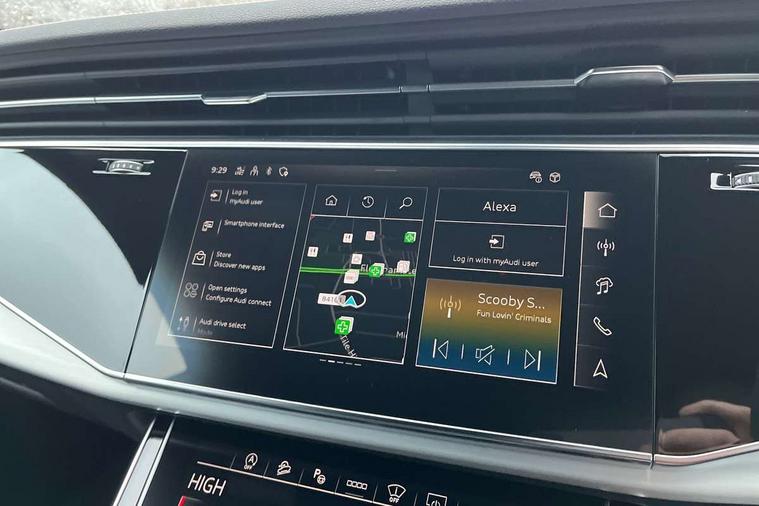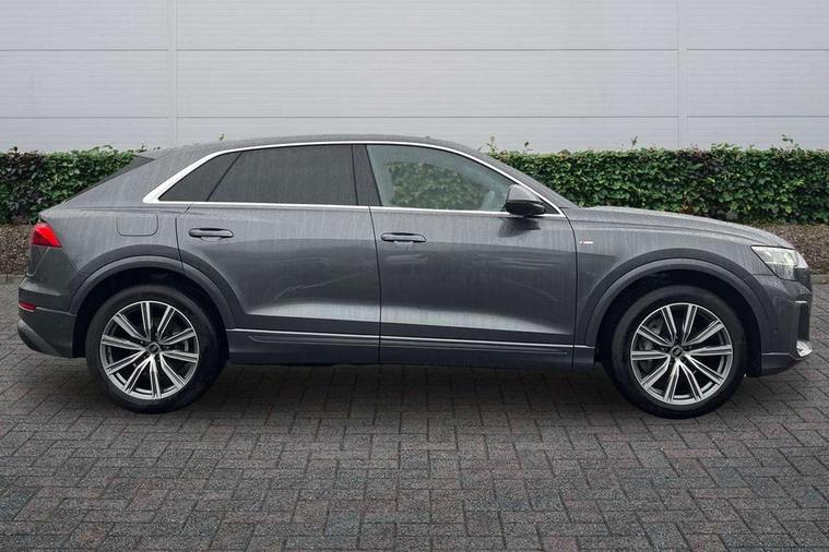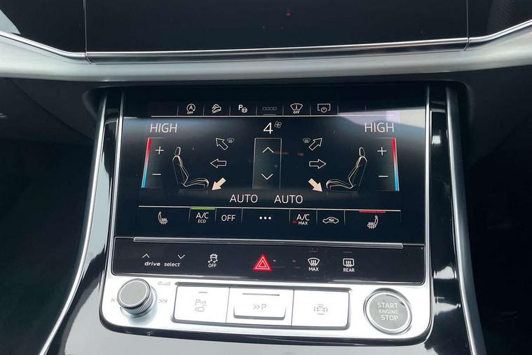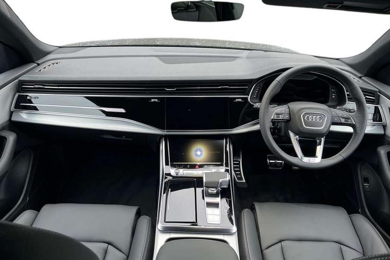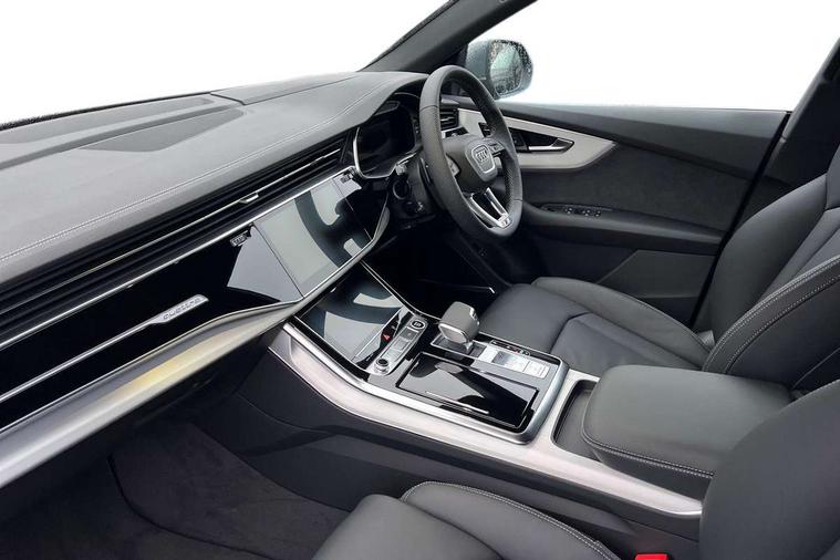 10.1" and 8.6" Dual colour touchscreens, Audi application store, Audi connect safety and service (e-call), Audi connect with Amazon Alexa Integration, Audi drive select, Audi parking system plus includes 360 degree display with front and rear sensors, Audi phone box light with wireless charging, Audi virtual cockpit - 12.3" high resolution LCD display with fully customisable instrument cluster, Automatic start/stop system, Bluetooth, Electro-mechanical PAS, Low washer fluid indicator, MMI navigation plus with MMI touch, Natural voice recognition, On board computer, Operating buttons in black, glass look with haptic feedback, Power operated tailgate, Rear view camera, Service interval indicator, Smartphone interface includes wireless Apple carplay/Android Auto, 48V Mild hybrid technology, 85 litre fuel tank, Adaptive sport air suspension, Quattro all wheel drive with self locking centre differential, Audi music interface with 2 USB ports with charge and data functions, Audi sound system with 6 channel amplifier, 180 watt amplifying capacity and 10 loudspeakers including subwoofer, Aux-in socket, DAB Digital radio, 3rd brake light, Aluminium window trim, Auto dimming frameless rear view mirror, Body colour door mirrors, Coming/leaving home lighting function, Electric front+rear windows, Electrically folding auto dimming/adjustable/heated door mirrors with memory function, LED side indicators and kerb view function for passenger side, Headlight washers, Heat insulating glass in windshield, Illuminated door sill trims with S line logo, LED rear light plus, LED signature daytime running lights, Loading edge protection in stainless steel, Matrix LED headlights with dynamic front and rear indicators, Platinum grey front spoiler lip and diffuser insert with honeycomb grille in black, Privacy glass - dark tinted rear and rear side windows from B-pillar backwards, Rain and light sensors, Rear side wing doors, Rear wiper, S line badges on front wings, S Line body styling, S line bumpers in full body colour paint finish, S line roof spoiler, S Line side skirts, S line side ventilation grille, Singleframe grille surround in matte platinum grey, 2 zone automatic climate control, 3 bench rear seats in 2nd row, 4-way lumbar support for front seats, 40:20:40 split folding rear bench seat, Black cloth headlining, Comfort front centre armrest, Driver seat memory function, Electrically adjustable front seats, Front head restraints, Front/rear floor mats, Heated front seats, ISOFIX child seat mounting for front passenger seat and 2 outer rear seats with top tether child seat mounting for all 3 rear seats, LED interior ambient lighting, Luggage compartment sill protection in stainless steel, Rear centre armrest with 2 cupholders, Rear headrests, Seat cushion displaceable by 100mm in the ratio 60:40, Single front passenger seat, Stainless steel pedals, Sunvisors with illuminated vanity mirrors, 3 point seatbelts on all seats, Audi pre sense front, Convenience key with safelock, Driver and front passenger, front side and curtain airbags, Electromechanical parking brake, Electronic Stability Control (ESC) including ABS, ASR and EDL, Front passenger airbag deactivation, Hill descent control, Hill hold assist, Predictive pedestrian protection, Seatbelt monitoring, Traction control, Tyre pressure loss indicator, Warning triangle and first aid kit, Anti theft alarm with tow away protection, Anti-theft wheel bolts and wheel loosening detection, Electronically operated child lock, Immobiliser, Keyless go with remote central locking, Dark matt brushed aluminium inlay, Tool kit, Tyre repair kit,