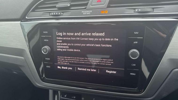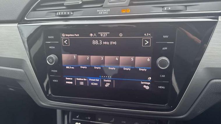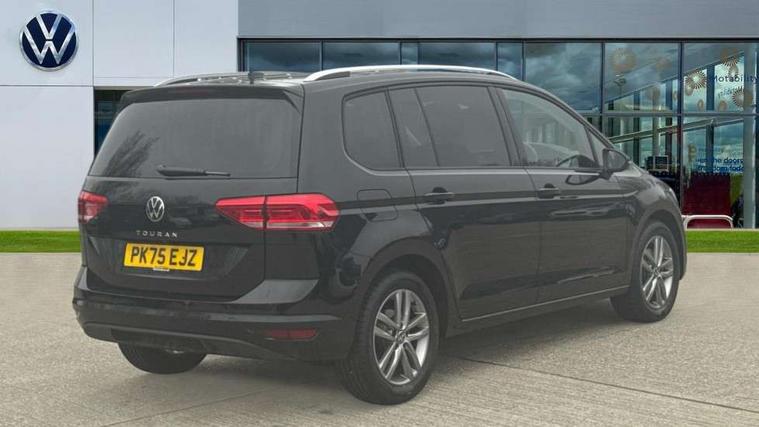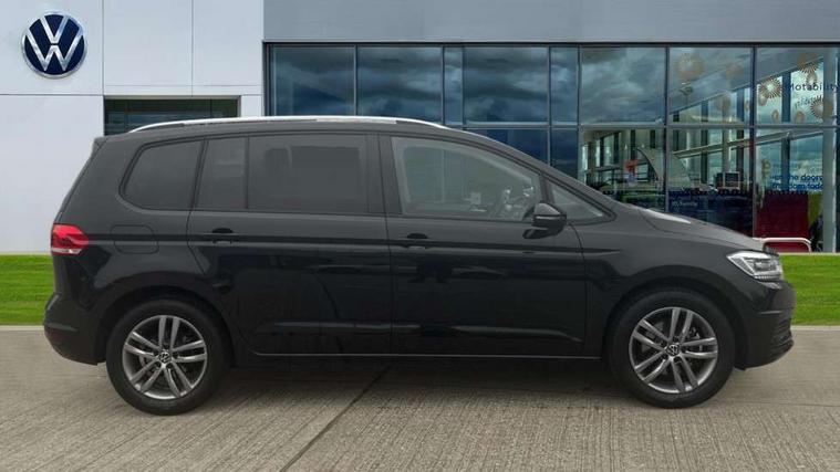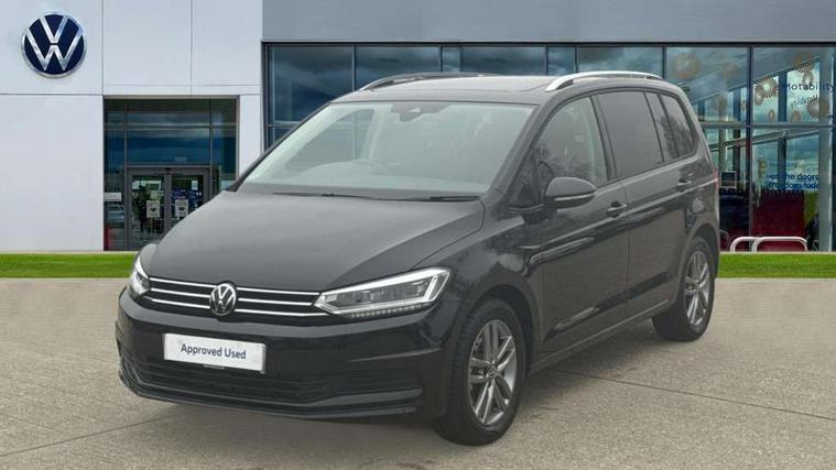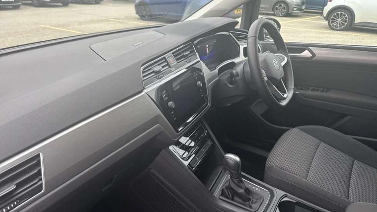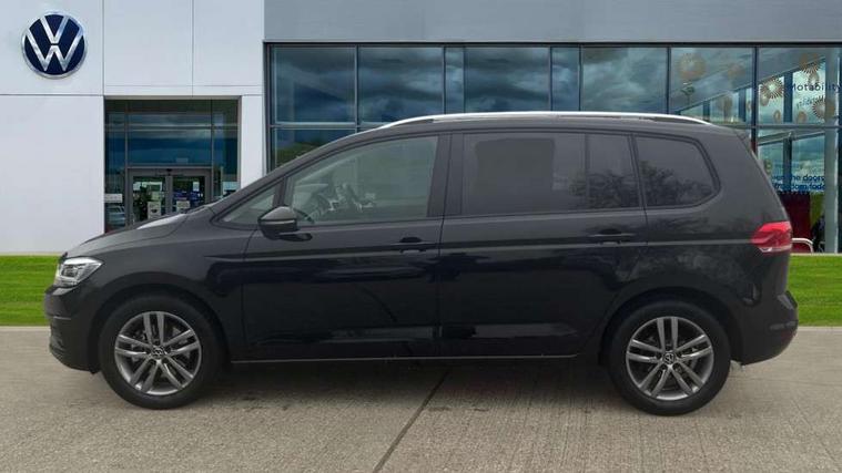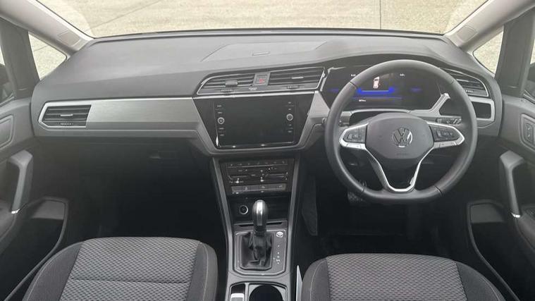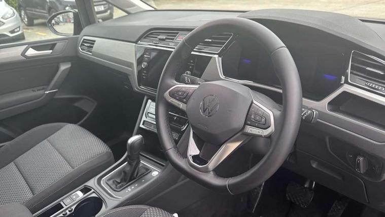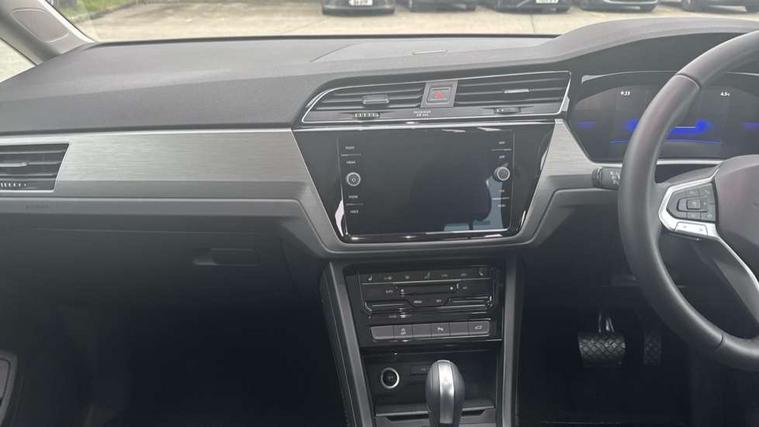 Adaptive cruise control, Audible lights on warning, Discover media navigation touchscreen navigation/radio system with streaming and internet, Driver alert system, Driver profile selection, Dynamic road sign display, Electric tailgate, Electronic odometer, Emergency services call system, Extended, crash-active and proactive Pedestrian and cyclist monitoring, External temperature gauge, Front parking sensors, Lane change system side assist and rear traffic alert, Lane keep assist, Misfuelling protection device, Mobile pairing with SMS function, Mobile phone interface with inductive charging, Rear view camera displayed via vehicles audio system display, Rev counter with fuel gauge, Side scan, Speed limiter, Speed sensitive power steering, Stop/start system, Think blue trainer driver tips and journey analysis, Trip and service interval display, We connect' and 'We connect plus' functionality, Petrol Particulate Filter, Rear stabiliser bar, XDS electronic differential lock, 4x20 watt output, 8 Speakers, Audio Connectivity System, DAB Digital radio, External USB-C data socket with increased charging performance - 2 USB sockets 45W, MP3/WMA compatability, SD card slot, Title and cover art display, USB connection, Aerial integrated into side window, Auto dimming door mirrors, on driver side, surround lighting and front passenger side mirror lowering function, Auto dimming rear view mirror, Automatic coming/leaving home lighting function, Body colour bumpers, Body colour door handles, Body colour door mirrors with integral indicators, Door mirrors with memory function, Dusk sensor + auto driving lights, Electric folding door mirrors, Electric heated + adjustable door mirrors, Electric, glass sliding/tilting panoramic sunroof including integrated roller blind and LED lighting around aperture, Front and rear electric windows, Fully galvanised body, Gloss black finish B pillar, Green tinted heat insulating glass, High level third brake light, Rain sensor, Rear fog lights, Rear side wing doors, Rear tinted glass from B-pillar backwards approx 65% tinted, Rear wash/wipe with intermittent wipe setting, Removable engine badge, Silver roof rails, Tailgate wiper- reverse gear activation, Twin chrome exhaust tailpipes, Volkswagen roundel, Windscreen wipers intermittent wipe, 12V power point for Row 2, 12V socket in luggage compartment, 2 individual fold flat 3rd row seats, 2 three point seatbelts in 3rd row, 2nd row centre armrest, 2nd row centre seat converts into table, 3 single slide/fold/removable 2nd row seats, 3 spoke steering wheel, 3x3 point seatbelts on 2nd row with height adjust on outer seats, 4 boot load lashing points, 4 way adjustable front head restraints, 5 headrests, Activated charcoal canister for intensified evaporation system, Air care climatronic 3 zone air conditioning system with rear air conditioning control panel, Chrome plated radiator grille inserts, air vent surrounds and light switch surrounds, Driver and front passenger under seat drawer, Dust/pollen filters, Foldable front passenger seat backrest with load through function, Front and rear reading lights X 2, Front centre armrest with storage compartment, Front comfort seats with lumbar support, Front cupholders x 2, Front passenger seat height adjust, Front seat storage pockets, Front seatback folding tables, Height adjustable driver's seat, Height/reach adjust steering wheel, Illuminated glovebox, Instrument lighting white adjustable panel illumination with red night time illumination, Interior light with delay, Isofix on 2nd row outer seats, Isofix on 3rd row seats, Large storage compartment in roof console, Lasano cloth upholstery, Leather multifunction steering wheel with gear knob, Leatherette on rear of front seats, Low tunnel 2nd row seat, Luggage compartment lighting, Media box in dashboard on passenger side, Multi storage in passenger/luggage areas, Multi-function centre console with storage facilities, Retractable luggage cover, Split folding rear seat backrests, Storage bins on all doors, Sun visors with illuminated vanity mirrors, Family Pack - Touran, Winter pack without heated washer jet - Touran, 3 point height adjustable front seatbelts, Auto hold function, Automatic post collision braking system, Door open warning reflectors, Driver/Front Passenger airbags, Drivers knee airbag, EDL + ASR, Electronic parking brake, Energy recovery system, ESC with ABS, First aid kit, Front and rear (row 2) curtain airbags, Front assist with autonomous emergency braking, Front seat side impact airbags, Front seatbelt pretensioners, Front/rear disc brakes, Hill hold control, Hydraulic Brake Assist (HBA), Loose wheel warning function, Manual passenger airbag deactivation function, Pre crash preventive occupant protection, Proactive passenger protection system with front and side assist, Rear child proof door locks, Road sign recognition, Seatbelt warning lamp and buzzer, Traction control, Two tone horn, Warning triangle, Alarm with remote central locking and interior protection, Electronic engine immobiliser, Keyless Access Keyless locking and starting system with SAFELOCK, New brushed design decorative inserts in dash and front doors, 17" Salvador alloy wheels with anti-theft wheel bolts, 215/55 R17 self sealing tyres with low rolling resistance,