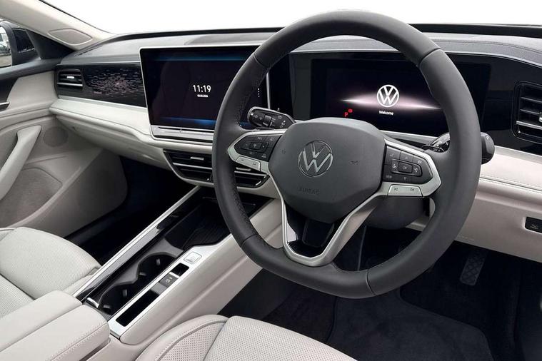 2 x Front USB-C ports, 2 x USB-C charging sockets on the centre console in the rear, charging capacity up to 45W, Adaptive cruise control, Advanced driver attention and drowsiness monitor, Chat GPT function for IDA voice assistant, Digital cockpit pro 10.25" high resolution, Discover media navigation system includes streaming and internet, Dynamic road sign display, E-Sim card for online connectivity, eCall emergency call service, Electronic engine sound, Full electric tailgate operation, Inductive smartphone charging without external antenna connection, Memory feature for park assist, Oncoming vehicle braking when turning including swerve support, Park assist pro with park distance control (Remote park assist), Predictive speed limiter, Preparation for We connect and We connect plus, Wireless app connect, Battery 340 A (58 Ah), Front wheel drive, Petrol Particulate Filter, 8 Speakers, Auto dimming interior rear view mirror, Automatic headlights, Body colour bumpers, Body colour door handles, Electric panoramic sunroof, tilting and sliding panoramic sunroof with rear panoramic sunroof, Heated windscreen washer jets, Laminated safety glass windshield, heat and sound insulating, LED third brake light, Rain sensor, Rear side wing doors, Rear wiper, Welcome light with surround lighting, 3 seat bench in 2nd row, 3 zone air care climatronic with rear air conditioning control panel, 30 colours options interior ambient lighting, Front + rear carpet mats, Front head restraints, Front sports comfort seats, Isofix child seat preparation, easy-fit (for two outer rear seats, and front passenger seat), compatible with I-size, Leather-wrapped, heated and multi-function steering wheel with shift paddles, Luggage compartment cover, power operated, Rear centre armrest, Single front passenger seat, Standard pedal cluster, Sun visors with illuminated vanity mirrors for driver and front passenger, Sunblind for rear side windows, Three rear head restraints, Unsplit rear seat bench, split folding backrest, Acoustics pack - Passat Estate, LED High matrix headlamps pack with Illuminated VOLKSWAGEN emblem rear - Passat, 3x3 point rear seat belts, ABS (Anti locking brake system) includes BAS (Brake assist) and EBD (Electronic brake pressure distribution), Autonomous emergency braking front assist with pedestrian and cyclist monitoring, Disc brakes in front, Driver/Front Passenger airbags, Drivers knee airbag, Electronic parking brake with auto hold, ESC (Electronic stability control) + EDL (Electronic Differential lock) and ASR (Traction control), EDTC (Engine drag torque control), Extended safety system with proactive passenger protection system, Front passenger airbag deactivation switch, Hill hold function, Tyre pressure loss indicator, Warning triangle and first aid kit, Alarm with interior protection, Electronic engine immobiliser, Keyless locking and starting system keyless access with safelock, Aluminium decorative inserts, Tool kit for tyre mobility set, Trims for alloy wheels,