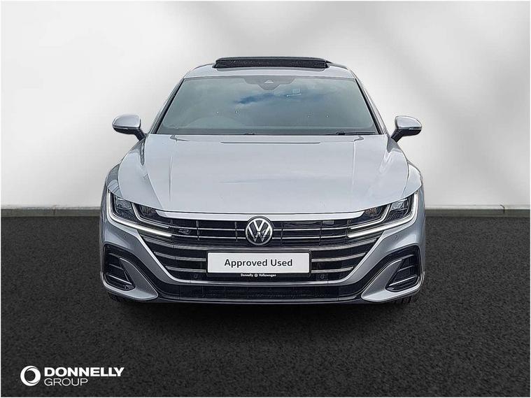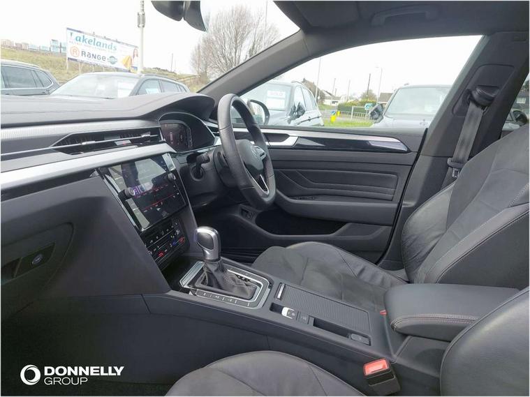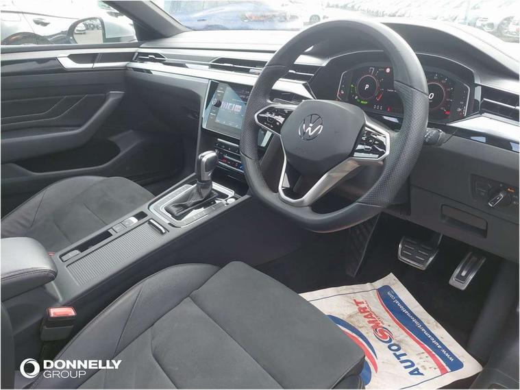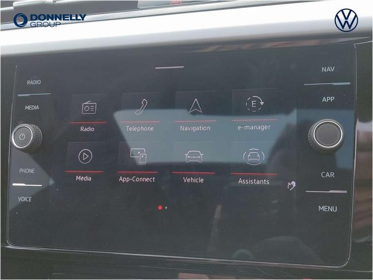 Adaptive cruise control (ACC) with speed limiter, front assist (reacting vehicles pedestrian and cyclists) and follow to stop, App connect including wireless Apple CarPlay, Camera for warning system, Digital cockpit with 10.25" high resolution TFT display screen with customisable menus and information, Driver alert system with fatigue detection, Driver profile selection including ECO function, Dynamic road sign display, eCall - Emergency call service for SOS calls to emergency response, Emergency assist, Hands free boot opening, Press and drive key, Progressive steering, Speedo and rev counter, electronic odometer, trip, service interval display and exterior temperature gauge, Tailgate, Travel assist - Lane keeping assist and traffic jam assist, Voice activation for telephone and navigation, 10 amp mode 2 charging cable, 16 amp mode 3 charging cable, Start/stop function with battery regeneration, External, USB type C data sockets with increased charging performance front (45 Watt), Premium USB cable in choice of either Apple or Android smartphone compatibility, Auto dimming interior rear view mirror, Automatic headlights, Body colour door handles, Body colour side skirt, Body coloured top and matt black lower door mirrors with integrated indicators, Chrome plated radiator grille inserts and light switch surrounds, Chrome side window surrounds, Dynamic headlight range control, Electric folding door mirror, adjustable, heated with front passenger exterior mirror lowering function, Front and rear electric windows, Front and rear stainless steel door sill protection, Front windscreen washers and wipers with 4x interval delay, Heat insulating glass windscreen, Heat insulating side and rear windows, Heated rear windscreen, Heated windscreen washer jets, LED 3rd brake light, LED rear combination lamp with dynamic indicators, LED rear number plate lights, Panoramic sunroof with tilting and sliding including integrated roller blind, R Line design body coloured bumpers, Rain sensor, Rear fog lamp on one side and reversing lamp on both sides, Rear side wing doors, Rear tinted glass from B pillar backwards, approx 65% tinted, Rear windscreen washer and wiper with interval delay, Roof spoiler, Tailpipes behind rear bumper, 12V socket in front centre console, 12V socket on rear of front centre armrest, 3 rear head restraints, 3 seat bench in 2nd row, 30 colours options interior ambient lighting, 60:40 split folding rear seat backrests with centre armrest, Air care climatronic 3 Zone electronic air conditioning with automatic air recirculation, Black roof lining, Chrome trim on upper and lower air vents extending across cockpit, Driver and front passenger sunvisor with vanity mirror, Front + rear carpet mats, Front cupholders x 2, Front footwell illumination, Front sports comfort seats, Glovebox, Heated front seats, Height/reach adjust steering wheel, Isofix child seat preparation easy fit for two outer rear seats, Luggage compartment lighting, Removable luggage compartment cover, Single front passenger seat, Split folding front seat backrest with front centre armrest, Stainless steel pedals, Two LED front reading light, 3 rear three point seatbelts, ABS+EBD+Brake assist, Child locks on rear doors, Driver airbag and front passenger airbags with deactivation switch including driver knee airbags, Electronic parking brake, Electronic stability control (ESC) and Electromechanical brake booster, Front disc brakes, Front side airbags with curtain airbags, Hill start assist, Pro active occupant protection to detect critical situations with elevated accident potential from the front, Rear disc brakes, Three point height adjust front seatbelts + pretensioners, Two tone horn, Tyre pressure loss indicator, Warning buzzer for seatbelts if unfastened, Warning triangle, Alarm with interior protection with deactivation via infotainment system, Electronic engine immobiliser, Keyless entry system including start/stop button on centre console, Remote central locking, Aluminium decorative inserts, Chrome trim on lower doors in front and rear, Leatherette insert on door and side trim panel in foam film, Piano black decorative inserts in centre console, 19" Montevideo alloy wheels with Airstop tyres + anti-theft wheel bolts, Tyre mobility kit,