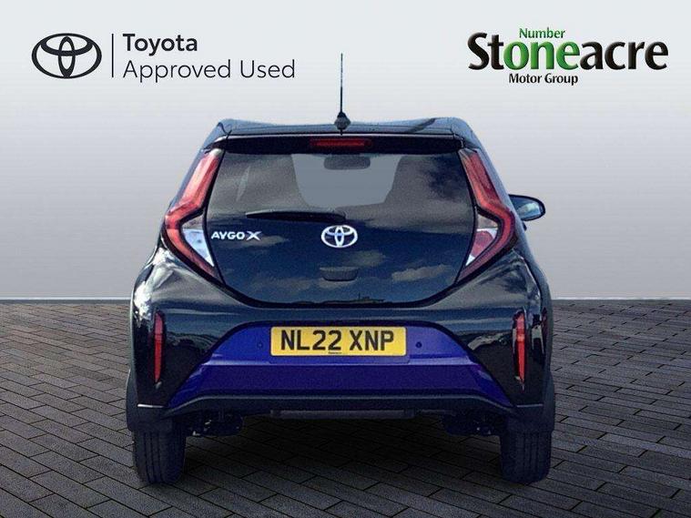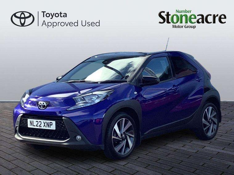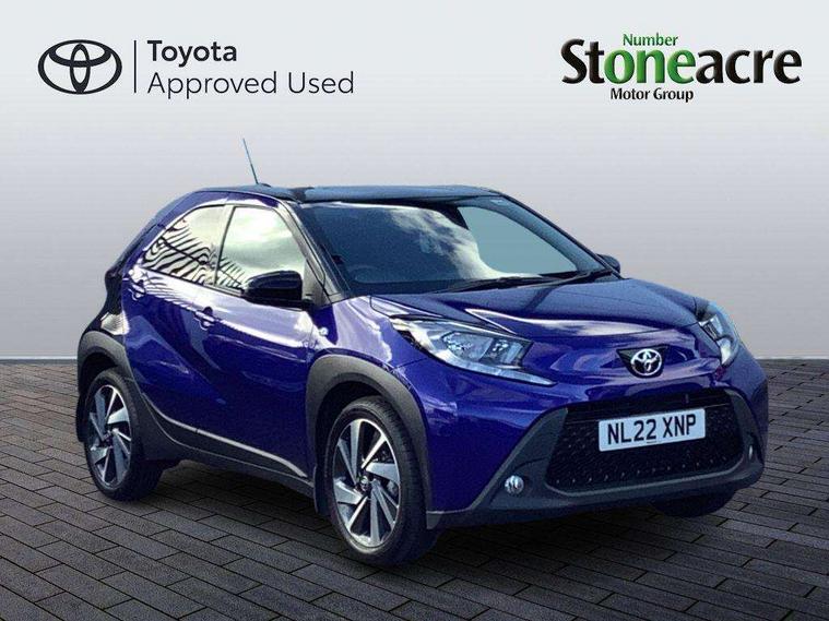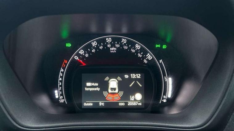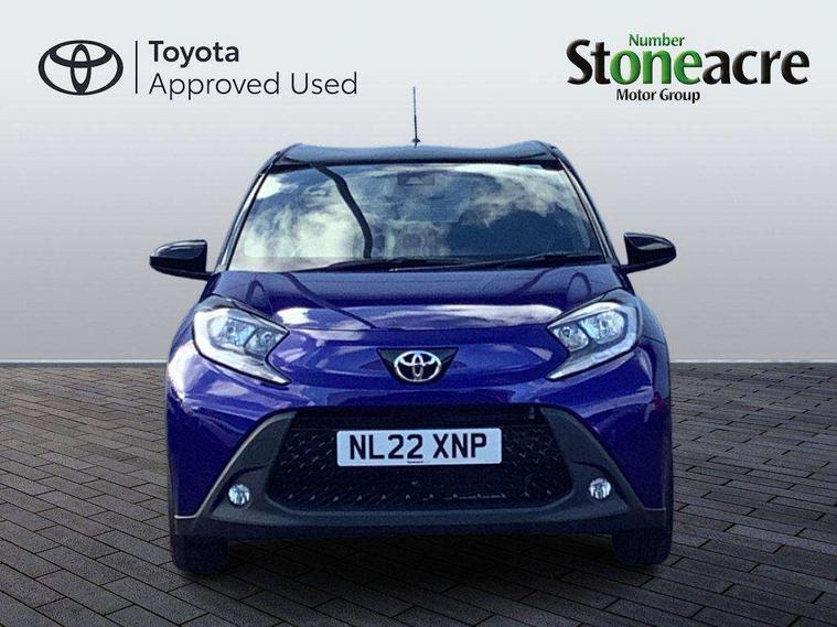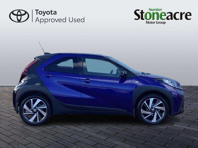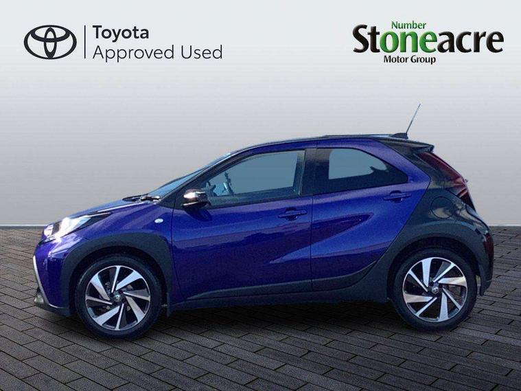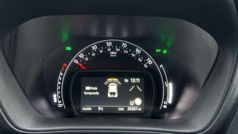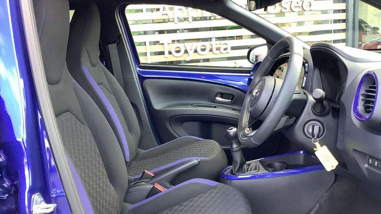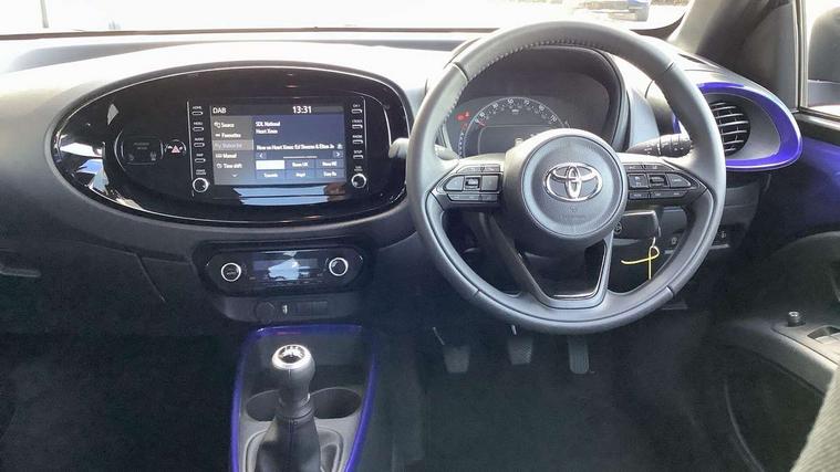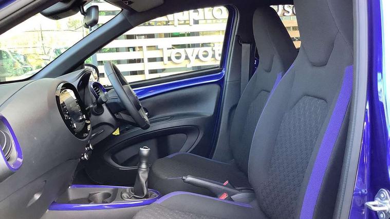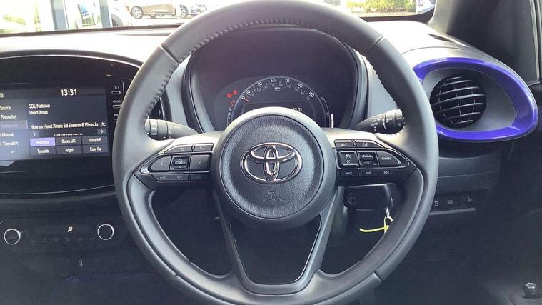 Toyota safety sense pack - Aygo X, Black wheel centre caps, Tyre repair kit, Immobiliser, Remote power door locks, 4 speakers, DAB digital audio broadcast, Toyota touch 2 multimedia System with 8" Screen display, USB connector, Anti lock braking system + Electronic brake force distribution, Child safety door lock, Emergency brake light signal (EBS), Hill start assist control (HAC), Passenger airbag on/off switch, Seat belt reminder for front and rear seats, Supplement restraints system (SRS) - 6 airbags, Traction control, Tyre pressure warning system, Auto headlights, Auto wipers, Automatic headlights cut-off, Bicycle towing hook, Black fog light surrounds, Black side protection mouldings, Black wheel arch mouldings, Body colour door handles, Body coloured front bumper, Boot door scuff plate, Eclipse black rear bumper, Electric heated door mirrors, Follow me home headlights, Front fog lights, Front power windows, Gloss black door mirrors, Gloss black upper front grille, Headlight cut-off reminder, LED daytime running lights, LED front light guide, LED High mounted stop lamp, Manual day/night rear view mirror, Manual headlight levelling, Pagoda roof, Power adjustable door mirrors, Privacy glass, Projector halogen headlights, Rain sensor, Rear combination lights LED bulb type, Rear side wing doors, Rear windscreen defogger, Rear windscreen wiper, Short antenna, Variable intermittent windscreen wipers, 12v power outlet - front, 2 seat bench in 2nd row, 3 spoke leather steering wheel, 50/50 split folding rear seat, Adhesive roof headlining, Adjustable speed limiter switch on steering wheel, Audio and telephone switches on steering wheel, Auto air conditioning, Black insert on steering wheel, Black roof lining, Boot light, Centre room light, Chrome interior door handles, Chrome surround on air conditioning buttons, Clean air filter, Fabric upholstery, Floor mats, Front and rear cup holders, Front head rest deco art, Front head restraints, Height adjustable driver seat, Intelligent adaptive cruise control switch on steering wheel, ISOFIX child restraint system on rear seats, Lane departure alert switch on steering wheel, Leather gearshift knob, Manual tilt steering wheel, Manually reclining and sliding driver seat, Manually reclining and sliding front passenger seat, Multimedia switches on steering wheel, Pollen filter, Rear door pockets, Rear head restraints, Satin silver insert on gear shift knob, Single compartment glovebox with lights, Single front passenger seat, Soft tonneau cover, Sun visors with mirror on driver and passenger side, Voice recognition switch on steering wheel, 4.2" TFT colour screen, Adjustable speed limiter, Analogue speedometer, Bluetooth connectivity, Digital tachograph, Driver attention alert system, eCall emergency call system, Electric power steering, Intersection turn assist, Key reminder warning, Noise reduction kit, Pre collision system with emergency steering assist, Reversing camera with static guide lines, Smart phone integration with Apple car play/Android Auto, Speed limit display, Start and stop, Vehicle Stability Control (VSC),