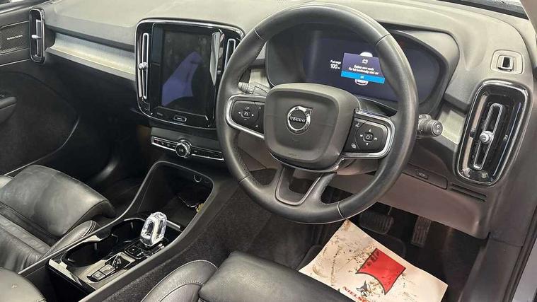 12.3" Progressive Driver Display, 360 degree surround view parking camera with side proximity sensors, 9" centre console portrait touch screen, Adjustable steering wheel force, Bluetooth hands free telephone kit, E-call, eCall emergency call system, Front park assist, Google automatic services - Nav with google maps, apple carplay/android auto, voice recognition with google assistant, Hands free power tailgate, Lane keep assist with driver alert control, Oncoming Lane Mitigation, Rear park assist, Speed limiter, Speed sensitive steering, Wireless/Inductive Mobile Phone Charging, Dynamic chassis, DAB Digital radio, High performance sound, 8 speakers/250W, front USB and 2 rear type C USB, Premium Sound by Harman Kardon, Dolby Pro Logic II Surround Sound, Dirac Unison, 12 speakers/600W and subwoofer, Steering wheel mounted remote controls, Adaptive brake lights with high level LED brake lights, Auto dimming interior mirror, Automatic headlamp levelling, Automatic LED Headlights + Active high beam incorporating daytime running lights, Dark tinted windows for rear door side windows and cargo compartment, Front aluminium tread plates, Front and rear electric windows, Headlight cleaning system, High gloss black front and rear skid plate, High gloss black mesh front grille with high gloss black surround, High gloss black window trim, Home safe and approach lighting, Integrated roof rails in high gloss black, LED front fog lights, Power glass tilt and slide panoramic sunroof with sun curtain, Puddle lights, Rain sensor with automatic windscreen wiper activation, Rear side wing doors, Rear wiper, Roof antenna, Roof spoiler, Visible VIN plate, 12V socket in front tunnel console and luggage compartment, 2-Zone electronic climate control with CleanZone air quality system and pollen filter, 3 seat bench in 2nd row, 3 Spoke tailored steering wheel with chrome trim, 60/40 versatile split folding rear seat, A-pillar parking ticket holder, Ambient front door and instrumental panel lighting, Centre console cupholders and storage, Flexible load floor and grocery bag holder, Floor mats, Front door pocket and front cupholder illumination, Front footwell illumination, Front headrests, Front reading light and theatre lighting, Front seat cushion extensions, Front tunnel pocket, Glovebox bag hook, Height adjustable passenger seat, Height/reach adjustable steering column, High gloss centre tunnel deco, Illuminated glovebox, Illuminated luggage compartment, Illuminated tailgate, Illuminated vanity mirrors, Integrated waste bin, Isofix attachments on outer rear seats, Load protection net, Multi directional lumbar support, Power driver seat with memory + exterior mirrors memory, Power folding rear headrests, Power passenger seat, Rear armrest / integral cup holders / storage tray, Rear reading and courtesy lights, Single front passenger seat, Underfloor cargo storage, Climate pack - XC40, Driver assist pack - XC40, 3x3 point rear seatbelts, City safety with steering support with Pedestrian + cyclist + front collision warning with full auto brake and rear auto brake, Drivers knee airbag, Dual stage driver/passenger airbags, Electronic parking brake with auto hold, First aid kit, Front and outer rear seatbelt reminder and pretensioners, Front seats SIPS airbags, Hill descent control, Hill start assist, Inflatable curtain, Passenger airbag cut-off device, Power child locks on rear doors, Road sign information display, Run off Road Mitigation, Run off Road Protection, SIPS (Side Impact Protection System), Slippery road and hazard light alert, Stability and Traction Control with Spin control, Engine Drag Control and Corner Traction Control, Tyre pressure monitoring system, Vehicle deceleration control with Anti-lock Brake System, Electronic Brake Distribution and Emergency Brake Assist, Warning triangle, WHIPS whiplash protection system - front, Anti-theft alarm including immobiliser/volume sensor + level sensor, Care key with user defined top speed, Key integrated remote control central locking + fuel flap with deadlocking system and auto open/close power windows, Keyless drive includes keyless entry and keyless start, Locking wheel nuts, Private locking for tailgate,