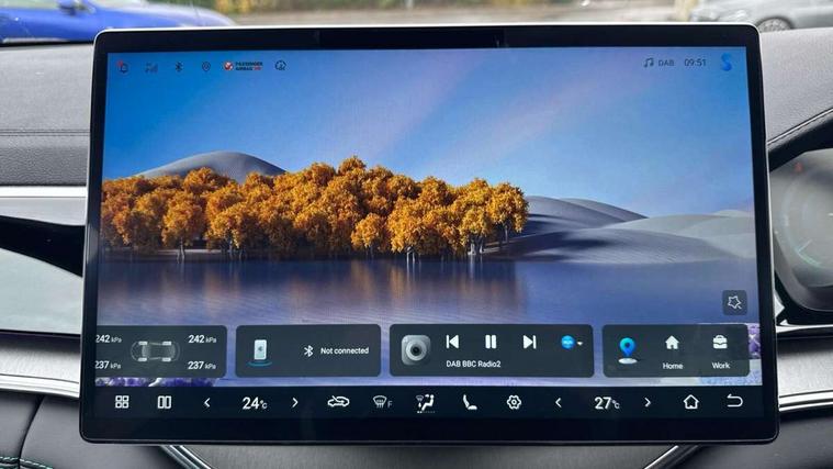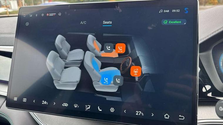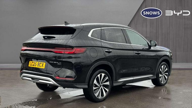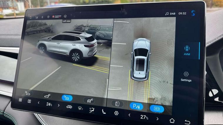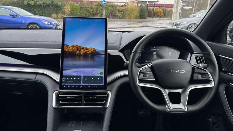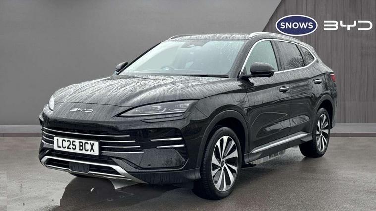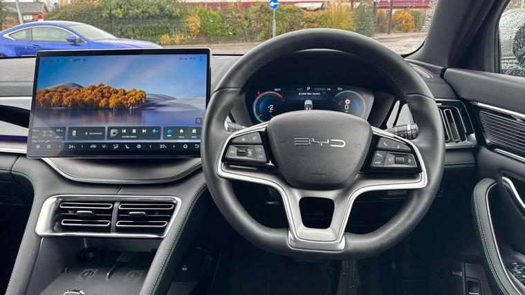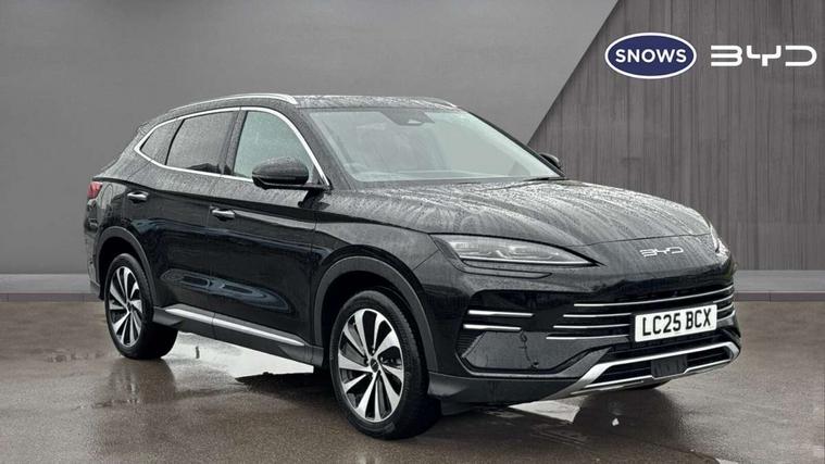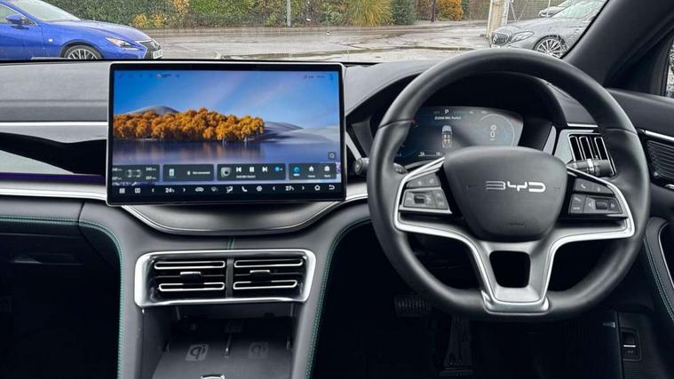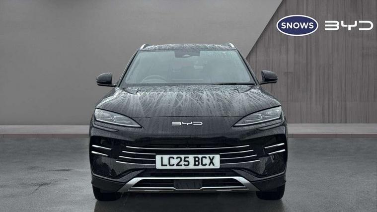 12.3" TFT full LCD instrument panel, 360 camera, Adaptive Cruise Control (ACC) and Intelligent Cruise Control (ICC), Automatic vehicle hold, Blind spot detection, BYD voice control assistant "Hi, BYD", Controller Deceleration Parking (CDP), Drive mode select (Eco, normal, sport, snow, sand, muddy), e-Call (emergency call), Electric tailgate release, Emergency Lane Keeping Assist (ELKA), Forward collision warning, Front and rear parking sensors, Front cross traffic alert and front cross traffic brake, Head up Display, Indirect driver fatigue management, Intelligent Speed Limit Control (ISLC), Keyless system entry and start, Lane change assist, Lane Departure Assistant (LDA) and Lane Departure Warning (LDW), Lane departure prevention, PAS, Predictive collision warning, Rear collision warning, Rear cross traffic alert and rear cross traffic brake, Rollover Control System (RMI), Smartphone wireless charging, 2 x 15W, Traffic sign recognition (TSR), Vehicle-to-Load (V2L) function, 11kW on board charger, Mode 3 Type 2 charging cable (3 phase), V2L (Vehicle to load) power strip - Type F, 15.6" Electrically rotatable touchscreen, FM/DAB+ radio, Front USB ports, 1 x 18W Type C, 1 x 60W Type C, Infinity sound system with 10 speakers, Rear USB ports, 2 x 18W Type C, Aluminium roof rails, Auto dimming interior rear view mirror, Auto headlamps (on/off), Dynamic welcome lights, Electric folding and heated door mirrors, Emergency tow hook, Exterior mirror footlights, Follow me home headlights (The headlights turned on in advance and delayed off function), Front windscreen, UV protection, thermal insulation and sound proofing, High beam assist, LED 3rd brake light, LED daytime running lights, LED Headlights, LED taillights, One touch electric front/rear windows with pinch protection, Panoramic sunroof with anti-pinch sensor and electrically adjustable sunshade, Rain sensor windscreen wipers, Rear fog lights, Rear side wing doors, Rear window and rear windscreen with tinted glass, Rear wiper, 12V power outlet, 3 seat bench in 2nd row, 8 way electrically adjustable drivers seat, Adjustable rear headrests, Boot parcel shelf, Driver and passenger sunvisors with illuminated vanity mirrors, Driver seat memory function, Front centre armrest with 2 cupholders, Front LED reading lights, Front passenger seat with 4-way electric adjustment, Front seat footlights, Heat pump, Heated front seats, Heated steering wheel, Integrated headrest in front seats, ISOFIX and i-Size for front passenger and outer rear seats, LED front door lights, Nylon floor mats, PM2.5 air filter, PM2.5 air purification system, Rear air vents, Rear armrest with 2 cupholders, Rear side LED reading lights, Rhythm-reactive multi-colour ambient lighting, Single front passenger seat, Split folding rear seats - 40/60, Vegan leather multifunction steering wheel, Vegan leather upholstery, Ventilated front seats, 3x3 point rear seatbelts, ABS/EBD, Automatic emergency braking system, Brake override system (BOS), Child presence detection, Comfort stop, Door open warning, Driver airbag, Electric parking brake, Force limiting pre-tensioned front seat belts, Front centre airbag, Front passenger airbag, Front passenger airbag deactivation, Front side airbags, Hill descent control, Hill hold control, Hydraulic Brake Assist (HBA), Hydraulic brake boost, Mechanical child safety lock, Rear middle seat force limiting seat belt, Rear seat belt pretensioners, Reflective vest, Side curtain airbags, Traction control system (TCS), Tyre pressure monitoring system (TPMS), Vehicle Dynamics Control System (VDC), Warning triangle, 2 x Smart keys, Anti theft alarm system, Automatic door locking, 19" Bi-colour alloy wheels, Tyre nut covers remover, Tyre repair kit,