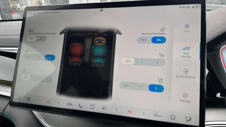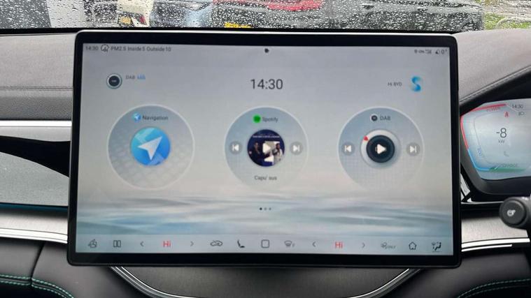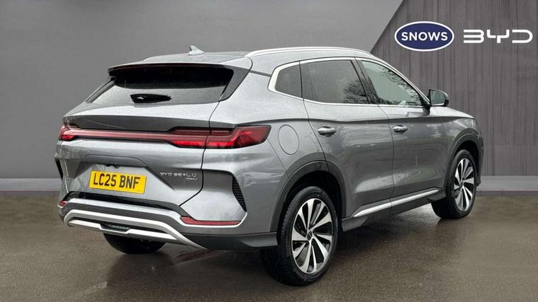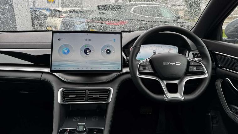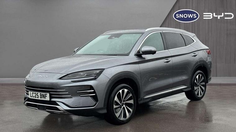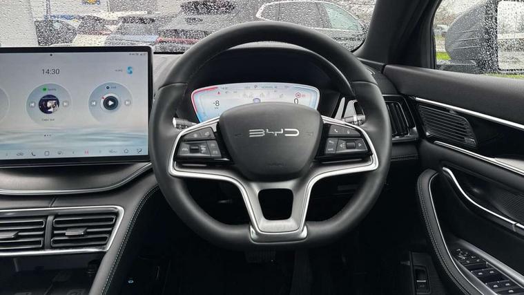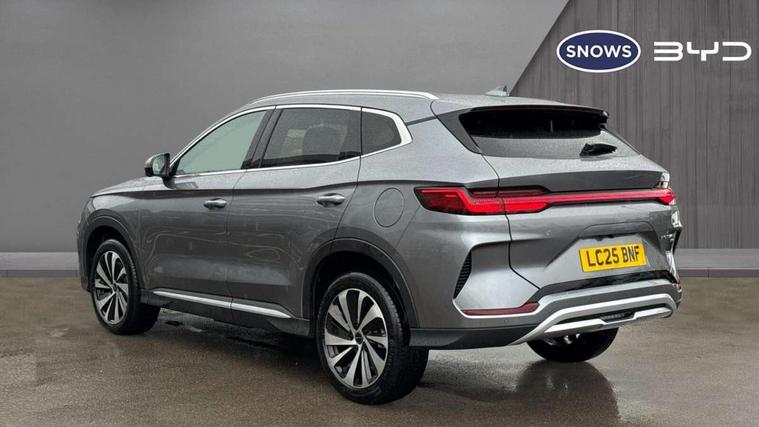 12.3" TFT full LCD instrument panel, 360 camera, Adaptive Cruise Control (ACC) and Intelligent Cruise Control (ICC), Automatic vehicle hold, Blind spot detection, BYD voice control assistant "Hi, BYD", Controller Deceleration Parking (CDP), Drive mode select (Eco, normal, sport, snow), e-Call (emergency call), Electric tailgate release, Emergency Lane Keeping Assist (ELKA), Forward collision warning, Front and rear parking sensors, Front cross traffic alert and front cross traffic brake, Head up Display, Indirect driver fatigue management, Intelligent Speed Limit Control (ISLC), Keyless system entry and start, Lane change assist, Lane Departure Assistant (LDA) and Lane Departure Warning (LDW), Lane departure prevention, PAS, Predictive collision warning, Rear collision warning, Rear cross traffic alert and rear cross traffic brake, Rollover Control System (RMI), Smartphone wireless charging, 2 x 15W, Traffic sign recognition (TSR), Vehicle-to-Load (V2L) function, 11kW on board charger, Mode 3 Type 2 charging cable (3 phase), V2L (Vehicle to load) power strip - Type F, 15.6" Electrically rotatable touchscreen, FM/DAB+ radio, Front USB ports, 1 x 18W Type C, 1 x 60W Type C, Infinity sound system with 10 speakers, Rear USB ports, 2 x 18W Type C, Aluminium roof rails, Auto dimming interior rear view mirror, Auto headlamps (on/off), Dynamic welcome lights, Electric folding and heated door mirrors, Emergency tow hook, Exterior mirror footlights, Follow me home headlights (The headlights turned on in advance and delayed off function), Front windscreen, UV protection, thermal insulation and sound proofing, High beam assist, LED 3rd brake light, LED daytime running lights, LED Headlights, LED taillights, One touch electric front/rear windows with pinch protection, Panoramic sunroof with anti-pinch sensor and electrically adjustable sunshade, Rain sensor windscreen wipers, Rear fog lights, Rear side wing doors, Rear window and rear windscreen with tinted glass, Rear wiper, 12V power outlet, 3 seat bench in 2nd row, 8 way electrically adjustable drivers seat, Adjustable rear headrests, Boot parcel shelf, Driver and passenger sunvisors with illuminated vanity mirrors, Driver seat memory function, Front centre armrest with 2 cupholders, Front LED reading lights, Front passenger seat with 4-way electric adjustment, Front seat footlights, Heat pump, Heated front seats, Heated steering wheel, Integrated headrest in front seats, ISOFIX and i-Size for front passenger and outer rear seats, LED front door lights, Nylon floor mats, PM2.5 air filter, PM2.5 air purification system, Rear air vents, Rear armrest with 2 cupholders, Rear side LED reading lights, Rhythm-reactive multi-colour ambient lighting, Single front passenger seat, Split folding rear seats - 40/60, Vegan leather multifunction steering wheel, Vegan leather upholstery, Ventilated front seats, 3x3 point rear seatbelts, ABS/EBD, Automatic emergency braking system, Brake override system (BOS), Child presence detection, Comfort stop, Door open warning, Driver airbag, Electric parking brake, Force limiting pre-tensioned front seat belts, Front centre airbag, Front passenger airbag, Front passenger airbag deactivation, Front side airbags, Hill descent control, Hill hold control, Hydraulic Brake Assist (HBA), Hydraulic brake boost, Mechanical child safety lock, Rear middle seat force limiting seat belt, Rear seat belt pretensioners, Reflective vest, Side curtain airbags, Traction control system (TCS), Tyre pressure monitoring system (TPMS), Vehicle Dynamics Control System (VDC), Warning triangle, 2 x Smart keys, Anti theft alarm system, Automatic door locking, 19" Bi-colour alloy wheels, Tyre nut covers remover, Tyre repair kit,