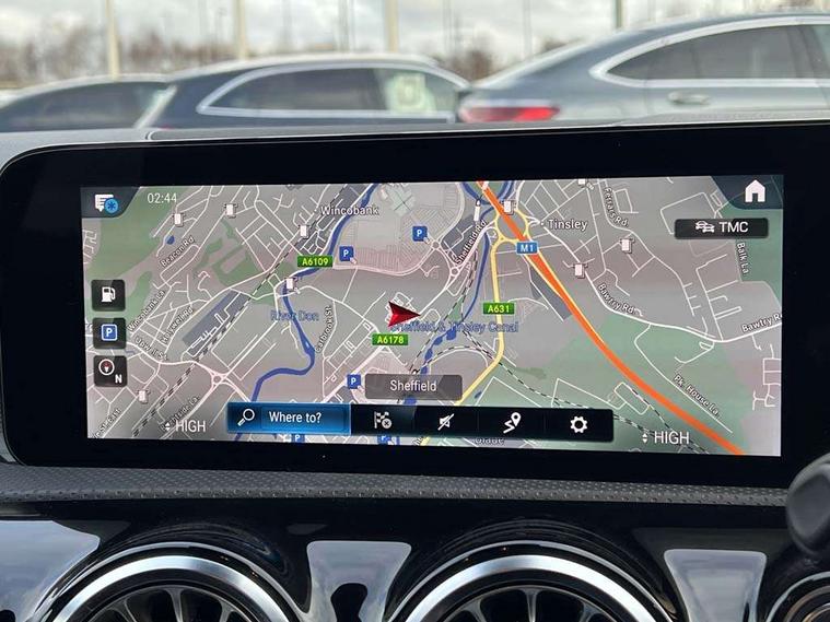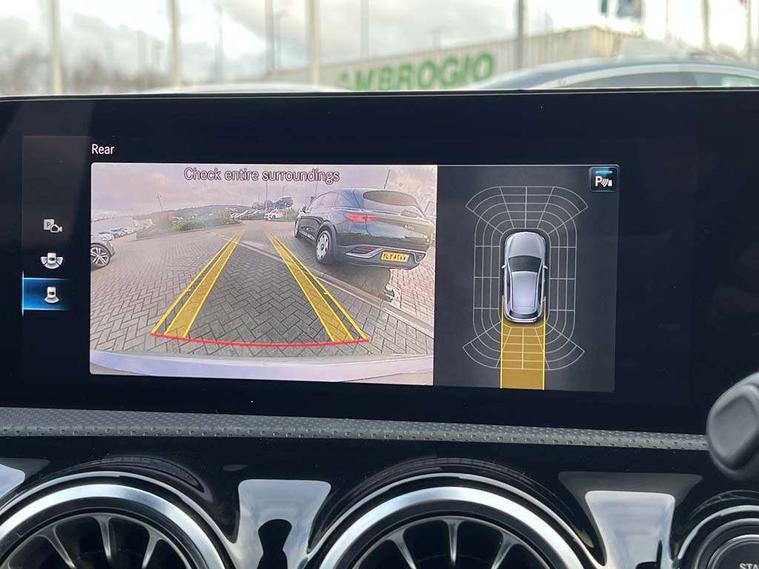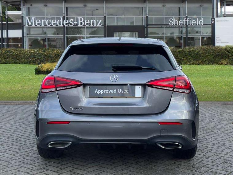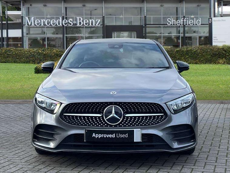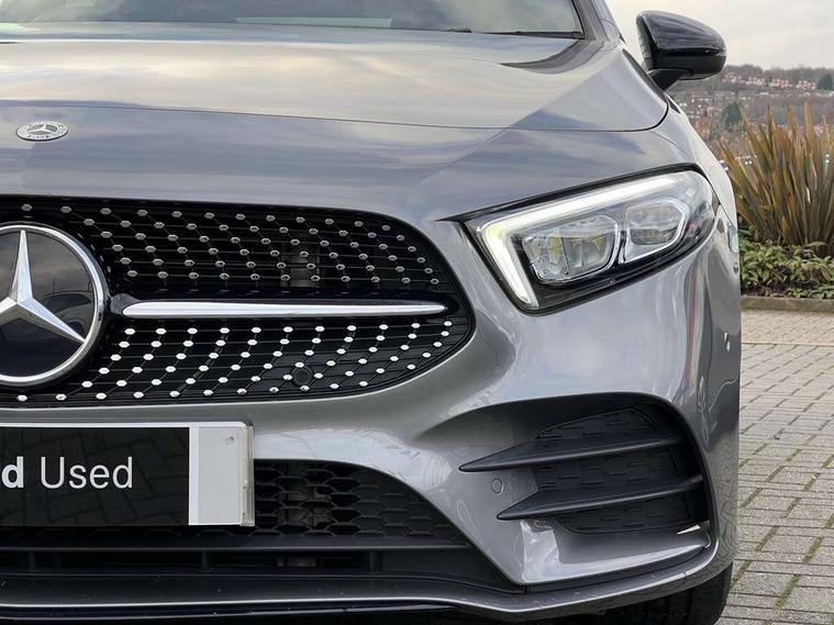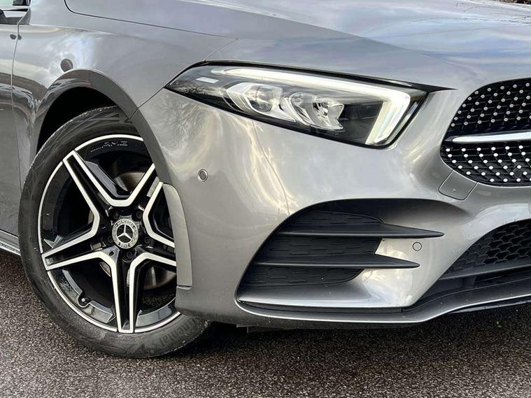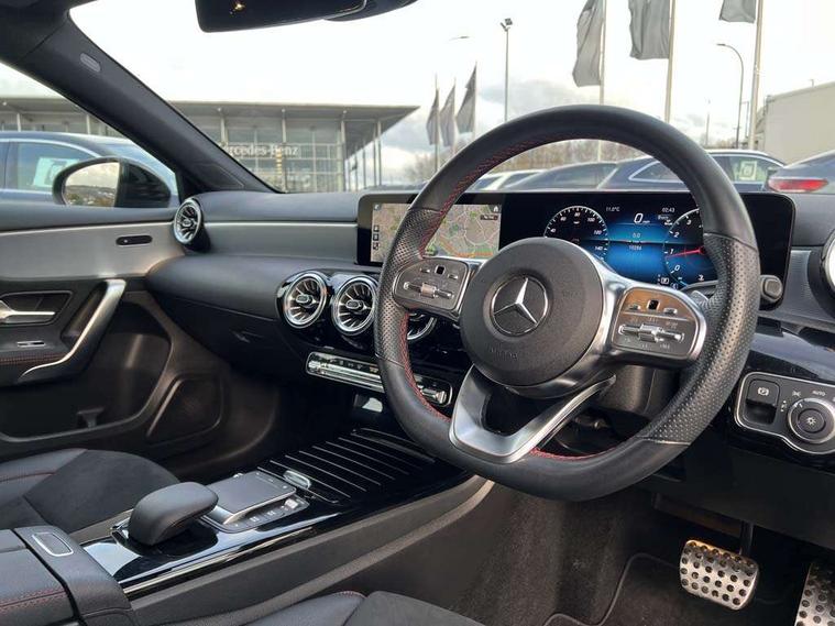 10.25" Digital instrument cluster display screen, 10.25" media display, 180 degree rear view camera with parking guidelines, Active parking assist with visual and audible warning of detected obstacles, Attention assist, Brake pad wear indicator warning light, Car wash mode, Cruise control + speed limiter, Direct steering, Dual bluetooth interfaces, DYNAMIC SELECT with a choice of driving modes (ECO, Comfort, Sport and Individual), ECO start/stop function, Fluid level warning indicator for fuel, oil, coolant and washer fluid, Hard-disk navigation, Hey Mercedes Voice activation, Lamp failure indicator, Lane keeping system, Mercedes me connect including emergency call system, accident recovery, breakdown and maintenance management, Mercedes me remote services, Outside temperature gauge, Owners manual in English, Pre-installation for private car sharing, Preinstallation for Mercedes Benz link, Service indicator (ASSYST), Smartphone integration with Apple CarPlay and Android auto, Speed limit assist, Speed sensitive power steering, Trip computer, Ultrasonic sensors positioned in the front and rear bumpers, Lowered comfort suspension, Rear axle torsion beam, 2 USB ports (type C) in rear stowage compartment and one in front of center console, 6 speakers, DAB Digital radio, MBUX multimedia system with DAB digital radio and touchpad including satellite navigation, Mercedes-Benz sound system - 100W, 4 Electric Front and Rear windows, Adaptive brake lights, AMG bodystyling - Front apron with splitter in chrome, rear apron with chrome trim and chrome visible trim elements in tailpipe, Automatic headlights, Black weather strip, Body colour bumpers, Body colour door handles with chrome inserts, Body colour side skirt, Electric adjustable and heated door mirrors with integrated LED side indicators, Exclusive diamond radiator grille, Exhaust system - Twin visible tailpipes in polished stainless steel, Headlamp assist automatic headlamp activation, Heated glass rear windscreen + timer control, LED High level third brake light, LED high performance headlamps with integrated LED daytime running lights, LED tail lamp, Privacy glass, Radio aerial, Rain sensing windscreen wipers with two sensitivity settings, Rear fog lights, Rear side wing doors, Rear wiper, 3 seat bench in 2nd row, 3 Spoke flat bottom leather multi function steering wheel with perforated leather in grip area, 40:20:40 split folding rear seats, Artico man-made leather/Microfibre Dinamica upholstery with red contrast stitching, Auto Mercedes-Benz child seat recognition sensor, Black air vents with surround in silver chrome, Black roof lining, Brushed stainless steel sports pedals with rubber studs, Controller on centre console with chrome surround, Floor mats with AMG lettering, Front centre armrest with storage compartment, Front seat backs luggage nets, Galvanished gear shift paddles on steering wheel, Heated front seats, Height/reach adjustable steering column, Illuminated Mercedes Benz lettering front door sills with changeable cover, Interior lighting - 64 colour Ambient lighting, Interior mirror with reading lamps in black and frameless, Manual height adjustable front seats, Rear armrest with 2 cupholders, Rear head restraints, Seat occupancy sensor for front passenger seat, Single front passenger seat, Sports seats with integrated headrests, Stowage compartment in centre console with retractable cover, Sunvisors with illuminated vanity mirrors, Touchpad on center console, Twin front cupholders, Two zone thermotronic luxury automatic climate control, Light and sight pack - A Class, Mirror package - A Class, Night pack - A Class Saloon/Hatchback, Seat comfort pack - A Class, 3 rear 3 point seatbelts, ABS with Brake Assist, Active bonnet, Active brake assist includes forward collision warning system with autonomous braking, Adaptive brake assist with hold function and hill start assist, Black seatbelts, Childproof locks manually operated for rear doors and electrically operated for rear power windows, Crash responsive emergency lighting, Driver and passenger head and side airbags, Drivers knee airbag, Dual stage driver/passenger airbags, Electronic parking brake, ESP curve dynamic assist, ESP with ASR, Front and rear seatbelt reminder, Front brake callipers with Mercedes Benz lettering, ISOFIX and top tether child seat fixing points in two outer rear seats, Tyre pressure monitoring system, Warning triangle and first aid kit, Window airbags, Alarm system/interior protection/immobiliser, Keyless entry lock/unlock, Keyless Go, Remote central locking and crash sensor with emergency opening function, Urban guard vehicle protection system with immobiliser and interior protection, Matrix look light longitudinal grain aluminium trim element, 18" AMG 5 twin spoke light alloy wheels aerodynamically optimised painted in black with highsheen finish, Summer tyres, Tirefit sealant kit,