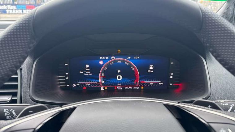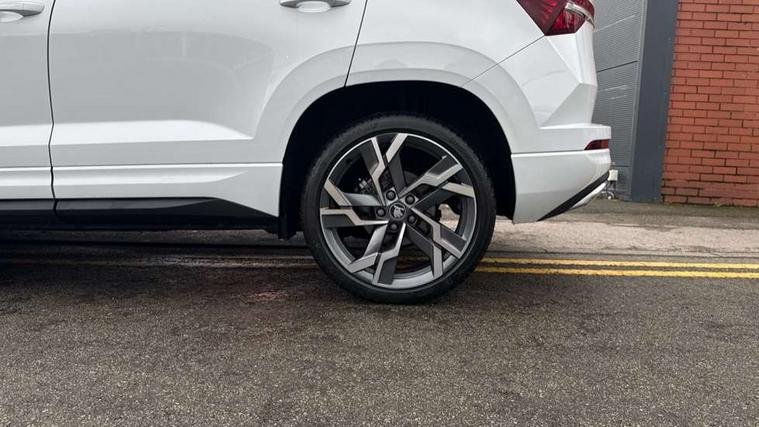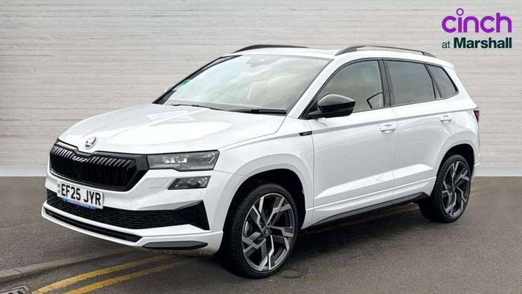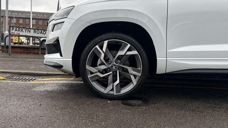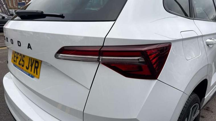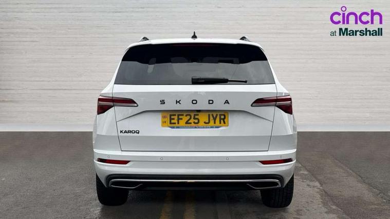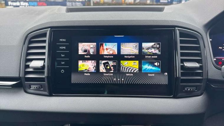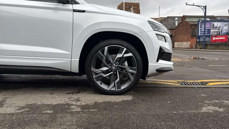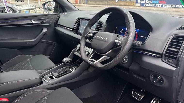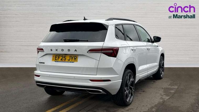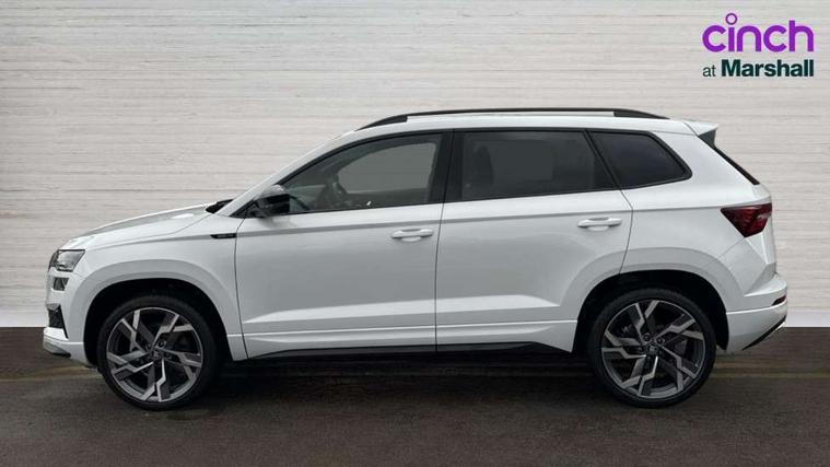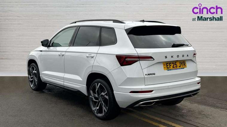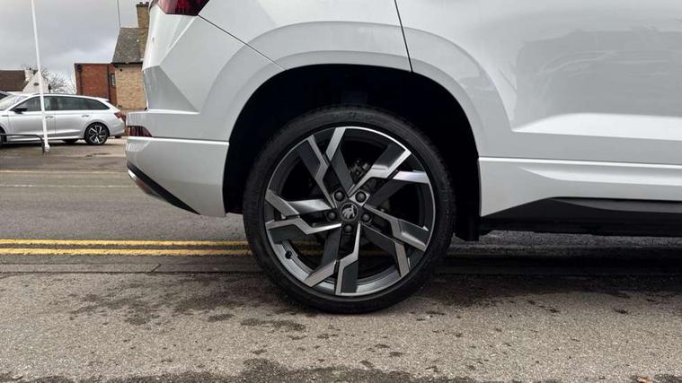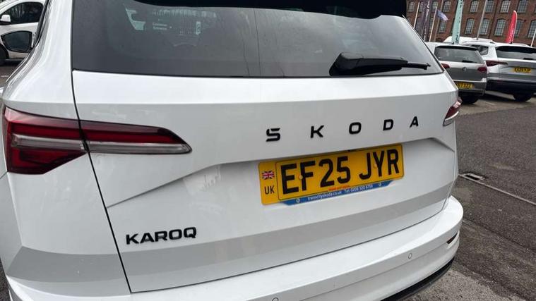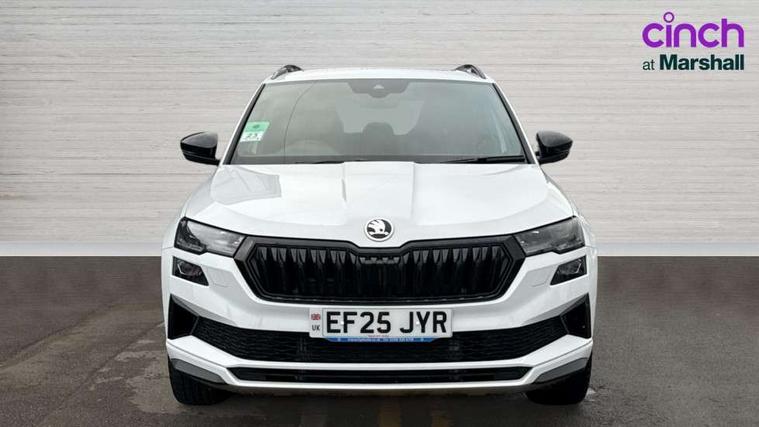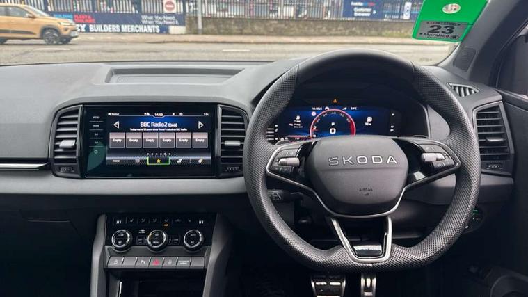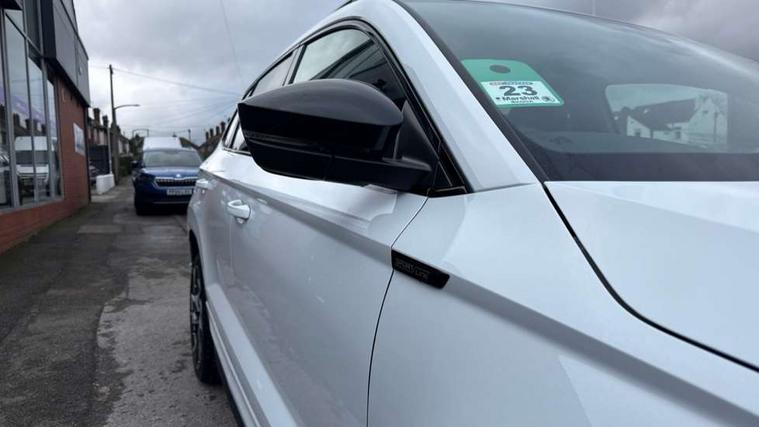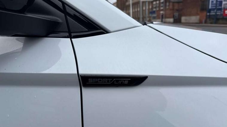 Advanced driver attention and drowsiness monitor, Emergency services call system, Outside temperature gauge, Sensor for driver assistance systems, Service interval indicator, SmartLink wireless for Apple and wired for Android, Start/stop system with regenerative braking, Traffic sign recognition, USB C Port x 2 in front centre console, Virtual Cockpit - 10.25" digital display, Virtual pedal with electrically operated boot door, Wireless smartphone charging, DAB radio with Bluetooth, USB connection, Acoustic glass, Aero front windscreen wipers with intermittent function, Auto dimming rear view mirror with light and rain sensors, Black door mirrors, Black electric window control buttons, Black radiator grille, Black roof rails, Body colour door handles, Electric front and rear windows with child proof lock, Extended rear roof spoiler, Front door steps with SportLine logo, Heated rear windscreen, LED daytime running lights, LED rear lights with high functionality welcome effect and dynamic indicators, Light assistant (coming/leaving home/tunnel light), Panoramic sliding sunroof, Plastic scuff plates in door apertures, Privacy glass, Protective door side sills in body colour, Rear diffuser, Rear side wing doors, Rear window wiper with washer system and intermittent control, Safety reflectors on front doors, Skoda lettering on tailgate in black, Sportline badge on front fender, Sports front and rear bumpers, Third brake light, Unique dark chrome design logo on alloy wheels, 1.5 litre bottle holders in driver and front passenger door panels, 12V socket in boot, 12v socket in front centre armrest with storage compartment and rear air vents, 2 x Tablet holder, 3 rear height adjustable headrests, 3 seat bench in 2nd row, 3 spoke sports leather heated multifunction steering wheel with DSG paddles, 4 foldable roof handles with rear coat hooks, Black floor carpet, Cargo elements in boot, Chrome inner door handles, Foldable hooks in the boot, Front head restraints, Height adjustable front three point seats belts with tensioners, Height/reach adjust steering wheel, Ice scraper, Illuminated glovebox, Illuminated luggage compartment, Isofix child seat preparation for front passenger seat, Isofix child seat preparation outer rear, Manual lumbar support for front seats, Pen holder, Pollen filter, Rear backrest release from boot, Rear boot cover, Rear package tray, Rear reading lights, Rear seats fixed folding and divided 60:40, Rubbish bin door, Safety vest holder, Single front passenger seat, Skoda lettering on steering wheel, Sportline decorative inserts, Storage box in upper central dashboard closed, Sunvisors with illuminated vanity mirrors, Textile floor mats, Ticket holder, Titan black interior ceiling, Umbrella under passenger seat, Under passenger seat storage compartment, Columbus pack - Karoq, LED Interior lighting pack with Skoda welcome logo - Karoq, Light Pack - Karoq, Non Smokers pack, Performance pack - Karoq, Winter plus pack with heated front and rear seats - Karoq, Automatic door unlocking in case of crash, Automatic fuel cut off in case of crash, Driver airbag, Electronic parking brake with auto hold function, Emergency rear braking signal, ESC (incl. ABS+MSR+ASR+EDS+HBA+DSR+RBS+MKB), Front side airbags, Head airbags, Hill hold control, Knee airbags, Passenger airbag with switch-off function, Pedestrian monitor, Seatbelt reminder signalisation and pretensioner for all seats, Three point seatbelts rear, Two tone horn, Tyre pressure monitor, Alarm with interior monitoring, back up horn and tilt sensor with safe function, Electronic engine immobiliser, Keyless entry and start/stop, Remote central locking with 2 remote folding keys, Black air vent surround, Black centre console, carbon door decor, Satin black dashboard, Satin black door trim, 19" Sagittarius anthracite alloy wheels, Anti-theft wheel bolts protection, Breakdown and tool kit,