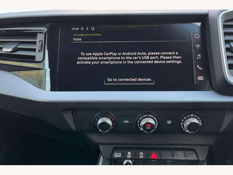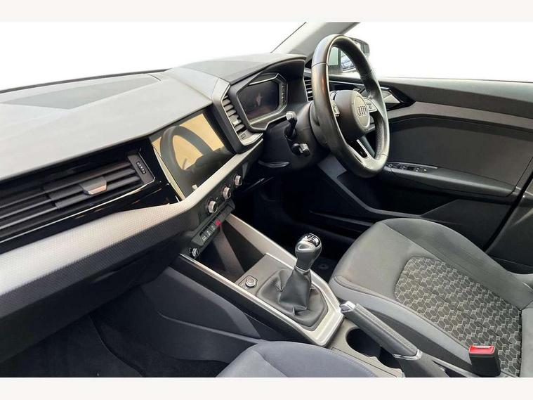 10.25" Digital instrument cluster display classis style instrument dials + speed, odometer, time, outside temperature, telephone menu + fuel level warning, Audi drive select - power steering assistance + engine, Audi smartphone interface with connect compatible smartphone via USB directly MMI display + Nav, music, third party apps controlled via MMI controller, Automatic start/stop system, Bluetooth interface, Cruise control, Driver's information system, Electromechanical power steering, Emergency e-call, Lane departure warning system, Rear parking sensor, Service interval indicator, Speed limiter, Voice control system, Washer fluid level indicator, Dynamic suspension, 2 x USB type C connection points, 6 passive loudspeakers, DAB Digital radio, MMI radio plus with 10.1" colour MMI display screen and MMI touch, Auto dimming rear view mirror, Body coloured bumpers, Body coloured door mirrors, Electric front and rear windows, Electrically adjustable, heated, folding door mirrors with integrated LED side indicator, Front side air inlets in grained matt black and C frame in anthracite black, Heat insulating glass windscreen and side windows, Heated rear windscreen, High level LED brake light, LED headlights with LED rear lights + dynamic rear indicators + headlight adjustment and high beam, turning light + LED daytime running lights, Radiator grille and rear diffuser in matt anthracite black, Radiator protective grille frame in matt aluminium silver, Rain and light sensors, Rear fog lights, Rear side wing doors, Rear wiper, Side front spoiler lips in grained matt black, 12V socket in centre console with two cup holders, 3 rear seats with headrests, 3 seat bench in 2nd row, 3 spoke leather multifunction plus steering wheel, 40:60 Split folding rear seat or folded fully, Black front and rear floor mats, Door sill trims with aluminium inlay, Driver and passenger seat with manual height adjust with forward and backwards adjustment, Front head restraints, Front passenger seat, Grey cloth headlining, Height and reach adjustable steering wheel, ISOFIX child seat mounting for front passenger and outer rear seats including top tether attachment point of outer rear seats, Leather gear knob with aluminium trim, Leather handbrake grip, Luggage compartment light with front and rear reading lights, Manual air conditioning, Manually adjustable lumbar support in front seats, Novum cloth upholstery with front sport seats, Luggage compartment pack - A1, 3x3 point rear seatbelts, Audi pre-sense front with pedestrain and cyclist recognition, Brake assist function, Driver and front passenger airbag with front side and head airbags, Electronic Stability Control including ABS, EBD, ASR and EDL, Front passenger airbag deactivation switch, Hill hold assist, Manual rear child locks, Seatbelt height adjustment for front seats, Seatbelt monitoring, Tyre pressure warning light, Warning triangle and first aid kit, Anti theft alarm, Anti theft wheel bolts and loose wheel warning, Immobiliser, Remote central locking with 2 foldaway keys, Aluminium trim for control switches, air vents and digital instrument cluster, Black dashboard, Silver grey accent areas including air vents, door handle recesses and centre console in diamond paint finish, Slate grey inlays polygon structure in fine paint finish,