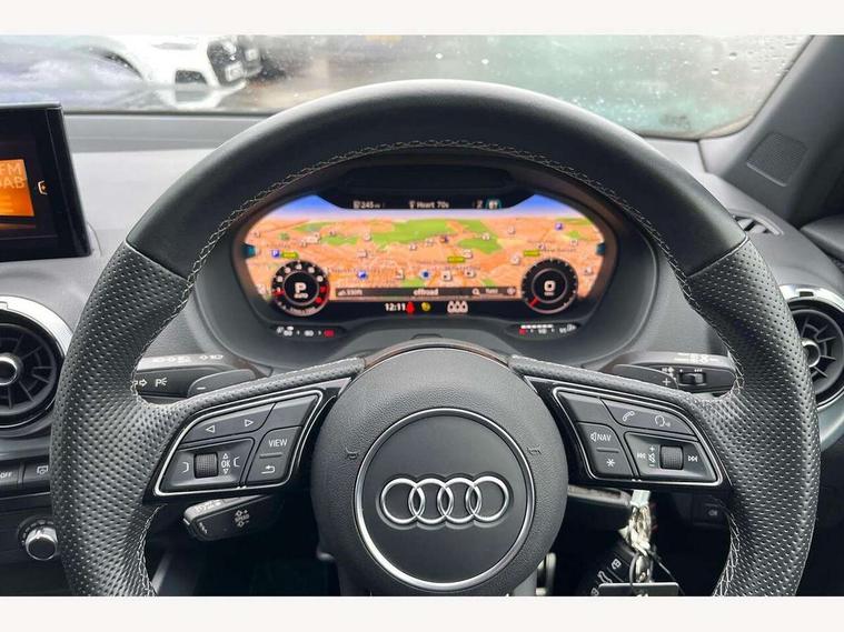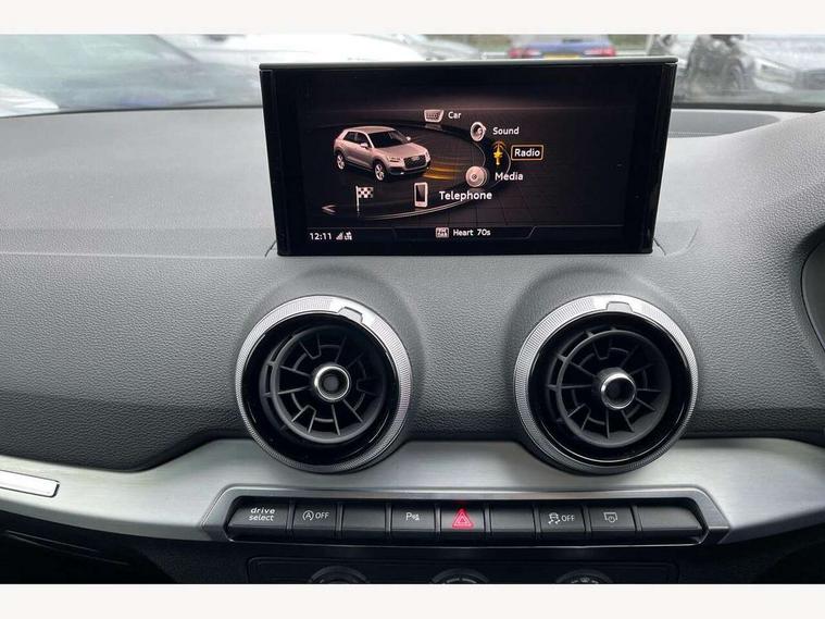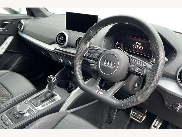 Audi connect navigation and infotainment includes innovative services, Audi connect remote and control connects your vehicle to your smartphone, Audi drive select - Power steering assistance + engine + gearshift, Audi drive select with efficiency, Audi smartphone interface, Audi virtual cockpit, Automatic start/stop system with recuperation, Bluetooth interface includes bluetooth audio streaming, Cruise control, E-call, MMI navigation plus with MMI touch, Power operated tailgate, Progressive steering, Rear parking sensors, 2 x SDXC card reader, 6 passive loudspeakers, DAB Digital radio, DVD Drive, Auto dimming rear view mirror, Black window trims, Bumper in full body colour paint finish, Electrically adjustable, folding, auto dimming and heated door mirrors with integrated LED side indicators, Front windscreen with grey tinted sunband, LED daytime running lights, LED headlights with LED rear lights, LED third brake light, Privacy glass - dark tinted rear and rear side windows from B-pillar backwards, Rear side wing doors, Rear wiper, Variable front intermittent wipers, Wheel arch trims in manhattan grey, 12V socket in front, 3 seat bench in 2nd row, 3 spoke flat bottomed multi-function leather sport steering wheel with gear shift paddles, 4-way electric lumbar support for front seats including seat height adjustment for both front seat, 60/40 split folding rear seat bench, Black cloth headlining, Front and rear head restraints, Front centre armrest, Front/rear floor mats, Height/reach adjust steering wheel, Illuminated door sill trims with S logo, Single front passenger seat, Stainless steel pedals, Black styling pack - Q2, 3x3 point rear seatbelts, 6 airbags - Front, curtain and front side airbags, Electromechanical parking brake, Electronic stabilisation control including ABS, ASR and EDL, Front passenger airbag deactivation, Hill hold assist, Pre-sense front with pedestrian recognition, Seatbelt monitoring, Tyre pressure warning light, Warning triangle and first aid kit, Anti theft alarm, Anti theft wheel bolts, Manual child locks, Remote central door locking, Aluminium interior element, Matt brushed aluminium trim inlays, Tool kit,
