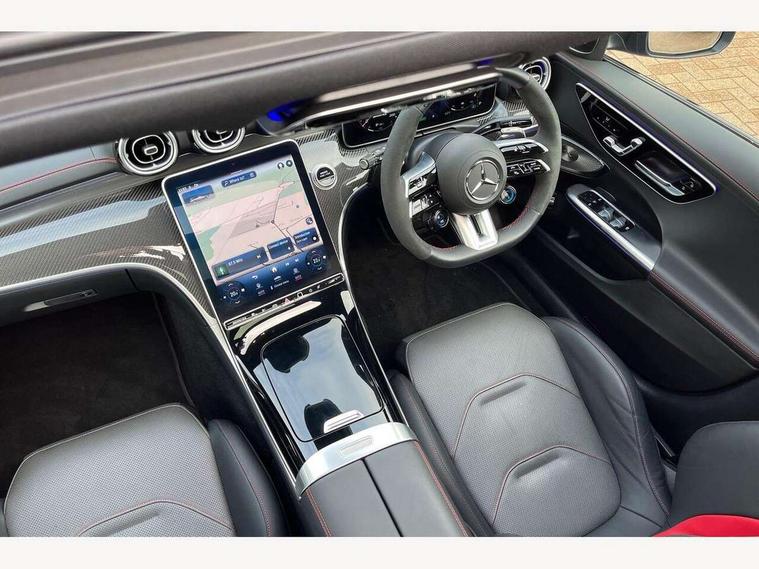 11.9" high resolution multimedia colour display, 12.3" digital instrument cluster display, Acoustic ambient protection, Active parking assist with PARKTRONIC, AMG DYNAMIC SELECT with a choice of eight driving modes(Electric, Comfort, Battery Hold, Sport, Sport+, Race, Slippery and Individual), AMG track pace, Attention assist, Charging services plus, E-call, Extended MBUX functions, Finger print sensor, Fluorescent jacket for driver, Hard disc navigation, Head up Display, MBUX augmented reality for navigation, MBUX navigation premium, Mercedes me remote services, Outside temperature gauge, Rear axle steering, Service indicator (ASSYST), Smartphone integration, Sports direct steer speed sensitive steering, Status display for rear seat belts in instrument cluster, Tailgate, Traffic sign assist, Wireless charging system for mobile devices, 5m charging cable for household socket (mode 2), 5m charging cable for wall box/public charging stations(mode 3), AC charging, AMG Ride Control suspension, AMG speedshift MCT 9G with wet starting clutch and race start function, Petrol Particulate Filter, Suspension with adaptive damping system, Burmester 3D surround sound system, DAB Digital radio, MBUX multimedia system, Adaptive brake lights, Adaptive high beam assist plus, AMG body styling front apron, rear apron and side skirts, AMG fuel cap, AMG illuminated door sills with AMG lettering and with exchangeable cover, AMG Real Performance Sound, Black roof rails, Body coloured bumpers, Digital light LED headlamps, Electric panoramic glass sunroof, Electric windows with one touch opening/closing and obstruction sensors, Electrically adjustable and heated door mirrors, Flared wheel arches, Heat insulating dark tinted glass, High gloss black AMG performance spoiler lip, LED daytime running lights, LED Indicators, LED tail lights, LED third brake light, Mercedes AMG exterior, Noise acoustic glass, Rain sensor with automatic windscreen wiper activation, Rear side wing doors, Rear wiper, 3 seat bench in 2nd row, 40:20:40 split folding rear bench seat, Ambient lighting premium, Ambient lighting with projection of brand logo, AMG floor mats, AMG Nappa leather upholstery, AMG Performance steering wheel in nappa leather/microcut microfibre, AMG steering wheel buttons, Auto Mercedes-Benz child seat recognition sensor, Black roof liner, Double cupholder in centre console, Electrically height/reach adjustable steering column, Folding rear seat backrest, Front and rear head restraints, Gearshift paddles on steering wheel, Illuminated glove compartment stowage, Load compartment cover, Mercedes AMG interior, Rear top tether child seat ISOFIX attachment, Single front passenger seat, Sunvisors with illuminated vanity mirrors, THERMATIC 2 zone automatic climate control, AMG aerodynamics package - C Class C63, AMG drivers pack - C Class, AMG exterior night pack - C Class, Boot comfort package - C Class, Easy pack tailgate - C Class, Interior light package - C Class, Keyless go comfort package - C Class, Memory package - C Class, Mirror package - C Class, Parking package with 360 degree camera - C Class, Stowage space pack - C Class, USB package plus - C Class, 3 rear 3 point seatbelts, Active bonnet pedestrian safety measure which detects an impact and raises bonnet, Adaptive brake system with HOLD function and brake drying in the wet, Anti-lock braking system (ABS), Black seat belts, Child proof door locks, Drivers knee airbag, Drivers pelvis airbag, Dual stage driver/passenger airbags, Electric parking brake, Electronic Stability Programme (ESP), Front centre airbag between driver and front passenger seats, Front side airbags, Red brake callipers, Tyre pressure monitoring system, Warning triangle and first aid kit, Window airbags for driver, front passenger and rear passenger, Antitheft alarm system, Interior monitoring system and Increased antitheft protection, Central locking with interior switch, automatic locking and crash sensor with emergency opening function, Chrome surround in electric key, Dashcam, Urban guard vehicle protection plus, Carbon fibre trim with centre console in high gloss black, Dashboard, instrument panel and beltlines in ARTICO man made leather in nappa look, 20" AMG cross spoke light alloy wheels painted in high gloss black with high sheen finish, TIREFIT with tyre inflation compressor,