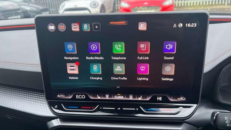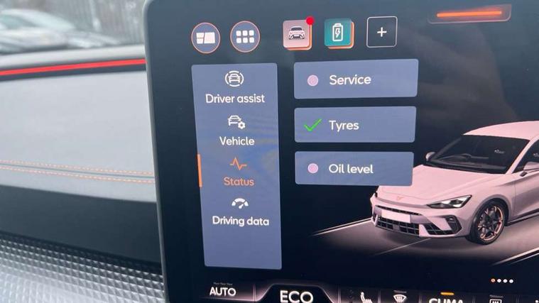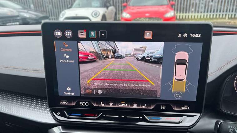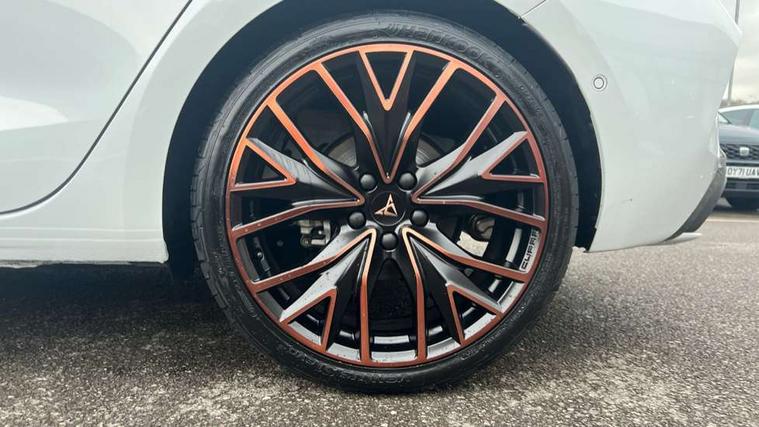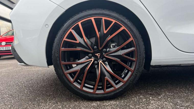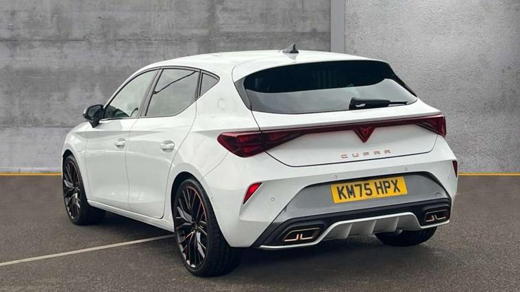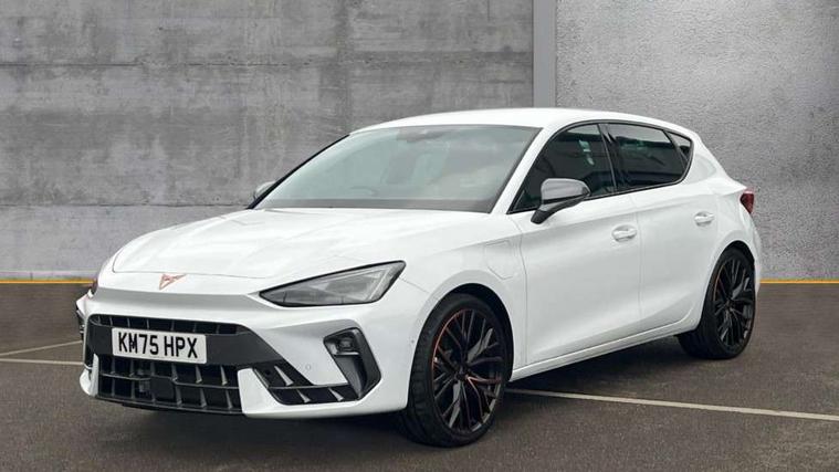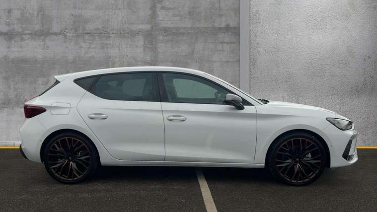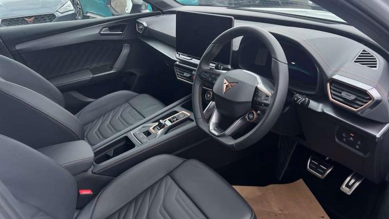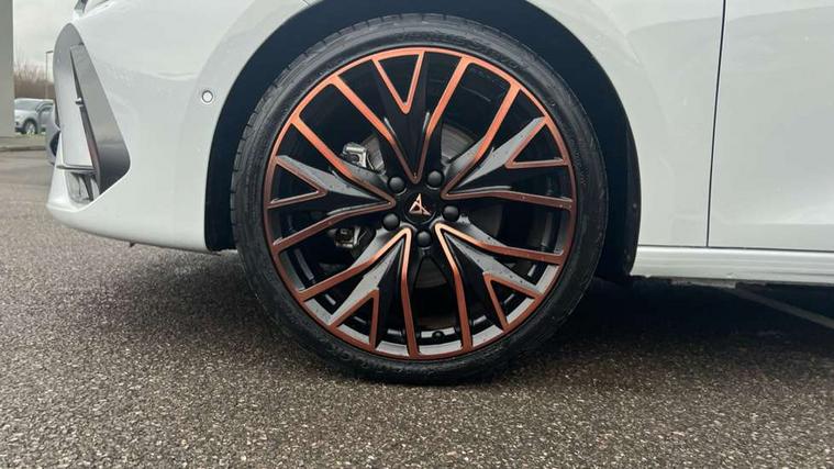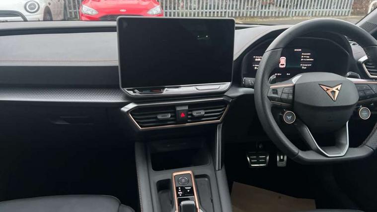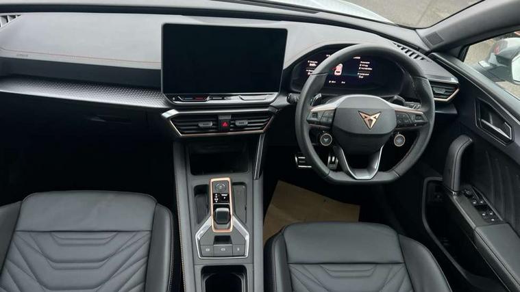 Adaptive cruise control with follow-to-stop and speed limiter, CUPRA drive profile selection with (Comfort/Performance/Individual), throttle response and gearshift mode, Digital cockpit, Driver alert system, Dynamic road sign display, E-call, Front and rear parking sensors, Front assist with forward collision warning braking reaction to vehicles, pedestrians and cyclists, Front cross traffic assist, Full link smartphone integration with Mirror Link, wireless Apple CarPlay and wired Google Android Auto, Intelligent park assist, Lane change assist with emergency assist, Lockable tailgate, Rear view camera, RPM, trip computer, outside temp gauge, instrument light brightness, low fuel warning light, lights on reminder, gearshift indicator, Service interval indicator, Side and exit assist, Start/stop system with regenerative braking, Wireless phone charger, 10 amp mode 2 charging cable, 16 amp mode 3 charging cable, Auxiliary input socket, Auto dimming rear view mirror, Body colour door handles, Body coloured bumpers, Cupra sports bumpers, Dark tinted rear windows, Electric front/rear windows, Electrically adjustable, heated and folding door mirrors, High beam assist, LED front fog lamps with cornering function, LED headlights with dynamic turn signals, tail lights, rear fog lights with rear coast to coast lighting, LED rear fog lamp, Rain sensing wipers, Rear diffuser with copper simulated exhaust pipes, Rear side wing doors, Rear wash/wipe, Separate daytime running light with automatic headlight control and coming home feature, Third brake light, Welcome light with logo projector in door mirrors, 12v power supply in centre console, 3 seat bench in 2nd row, 5 headrests, 60/40 split rear bench seat with armrest, Ambient lighting (glovebox, footwell, ambient lighting multicoloured), Black headlining, Cupra sports pedals, CUPRA Supersports, heated steering wheel with satellite buttons, Electrically adjustable driver seat and lumbar support with memory function + manually adjustable passenger seat, Folding boot cover, Four x USB Type C ports (2 in front and 2 in rear), Front and rear reading lights X 4, Front centre armrest, Heated front seats, Height/reach adjust steering wheel, Illuminated interior front door sills, Interior wraparound lighting, ISOFIX points in outer rear seats with top tether anchorage points, Leather upholstery, Single front passenger seat, Storage pockets on rear of front seats, Sunvisors with illuminated mirror, Three zone climate control, Dynamic and comfort pack - Leon Cupra, Media system plus with 12.9" display + navigation pack - Leon Cupra, 3 point seatbelts on all rear seats, ABS, Brake control system - ESC and brake booster, Child proof door locks, Cupra black brake calipers, Disc brakes in front, Driver and front passenger airbags with front passenger airbag de-activation, front side and curtain airbags, Electronic parking brake, Hill hold control, Pre-crash front and rear seat belt tensioner, window closure and hazard lights, Rear disc brakes, Seat belt reminder for front and rear seats, Tiredness recognition system, Tyre pressure monitoring system, Anti theft alarm system with interior monitoring in cab, backup horn and towing protection, KESSY Advanced - Keyless start, keyless entry, Locking wheel bolts, Chrome and copper interior detailing, Breakdown kit, Tool kit,