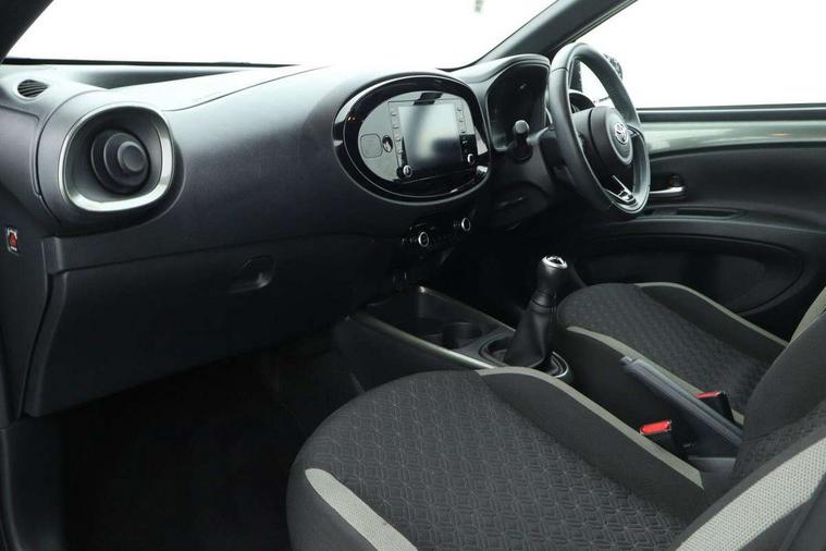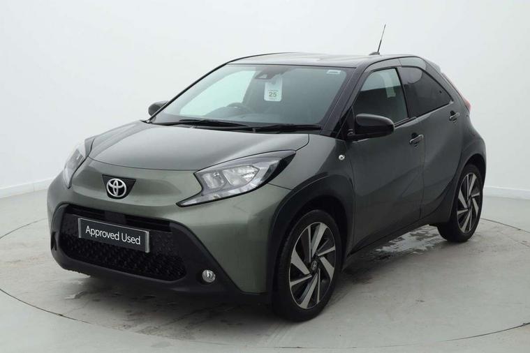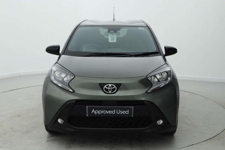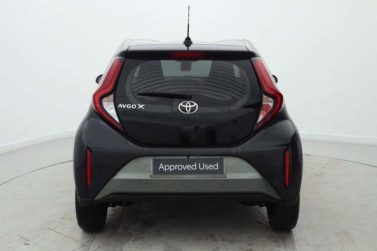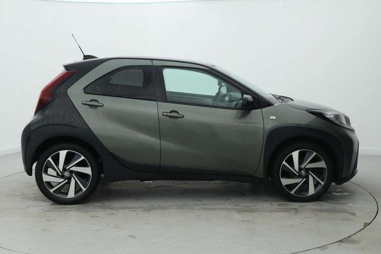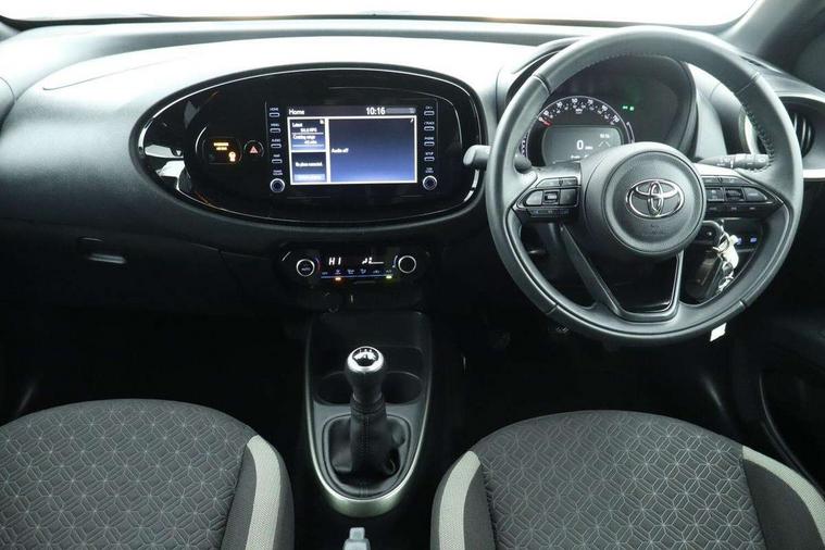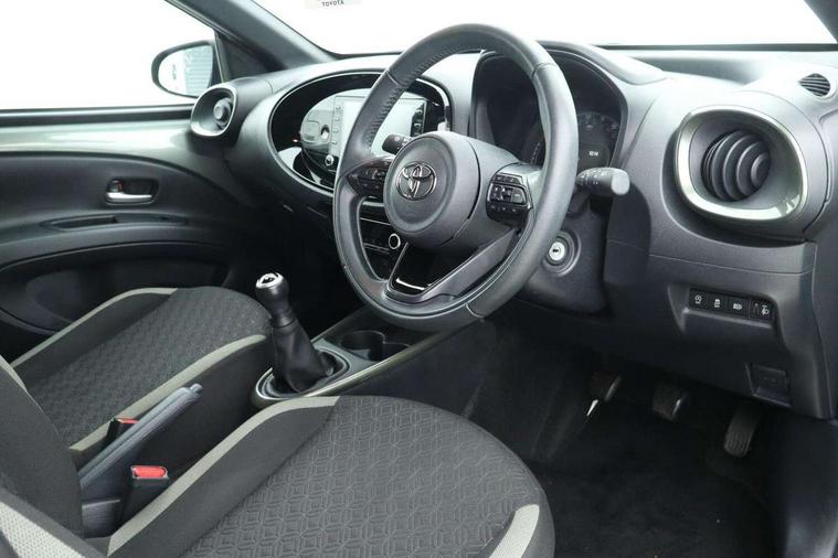 4.2" TFT colour screen, Adjustable speed limiter, Analogue speedometer, Bluetooth connectivity, Digital tachograph, Driver attention alert system, eCall emergency call system, Electric power steering, Intersection turn assist, Key reminder warning, Noise reduction kit, Pre collision system with emergency steering assist, Reversing camera with static guide lines, Smart phone integration with Apple car play/Android Auto, Speed limit display, Start and stop, Vehicle Stability Control (VSC), 4 speakers, 9" HD multimedia display touch screen with Toyota smart connect, DAB digital audio broadcast, USB connector, Auto headlights, Auto wipers, Automatic headlights cut-off, Bicycle towing hook, Black contrast roof, Black side protection mouldings, Black wheel arch mouldings, Body colour door handles, Body coloured front bumper, Boot door scuff plate, Eclipse black rear bumper, Electric heated door mirrors, Follow me home headlights, Front fog lights, Front power windows, Gloss black door mirrors, Gloss black upper front grille, Headlight cut-off reminder, LED daytime running lights, LED front light guide, LED High mounted stop lamp, Manual day/night rear view mirror, Manual headlight levelling, Pagoda roof, Power adjustable door mirrors, Power back door, Privacy glass, Projector halogen headlights, Rain sensor, Rear combination lights LED bulb type, Rear side wing doors, Rear windscreen defogger, Rear windscreen wiper, Short antenna, Variable intermittent windscreen wipers, 12v power outlet - front, 2 seat bench in 2nd row, 3 spoke leather steering wheel, 50/50 split folding rear seat, Adhesive roof headlining, Adjustable speed limiter switch on steering wheel, Audio and telephone switches on steering wheel, Auto air conditioning, Black insert on steering wheel, Black roof lining, Boot light, Centre room light, Chrome interior door handles, Chrome surround on air conditioning buttons, Clean air filter, Console box storage in body color, Fabric upholstery, Floor mats, Front and rear cup holders, Front head rest deco art, Front head restraints, Height adjustable driver seat, Intelligent adaptive cruise control switch on steering wheel, ISOFIX child restraint system on rear seats, Lane departure alert switch on steering wheel, Leather gearshift knob, Manual tilt steering wheel, Manually reclining and sliding driver seat, Manually reclining and sliding front passenger seat, Multimedia switches on steering wheel, Pollen filter, Rear door pockets, Rear head restraints, Satin silver insert on gear shift knob, Single compartment glovebox with lights, Single front passenger seat, Soft tonneau cover, Sun visors with mirror on driver and passenger side, Voice recognition switch on steering wheel, Toyota safety sense pack - Aygo X, Anti lock braking system + Electronic brake force distribution, Child safety door lock, Emergency brake light signal (EBS), Hill start assist control (HAC), Passenger airbag on/off switch, Seat belt reminder for front and rear seats, Supplement restraints system (SRS) - 6 airbags, Traction control, Tyre pressure warning system, Immobiliser, Remote power door locks, Black wheel centre caps, Tyre repair kit,