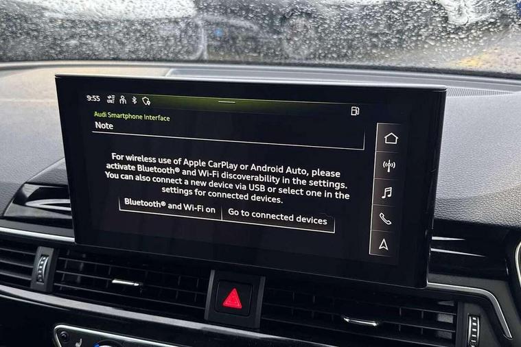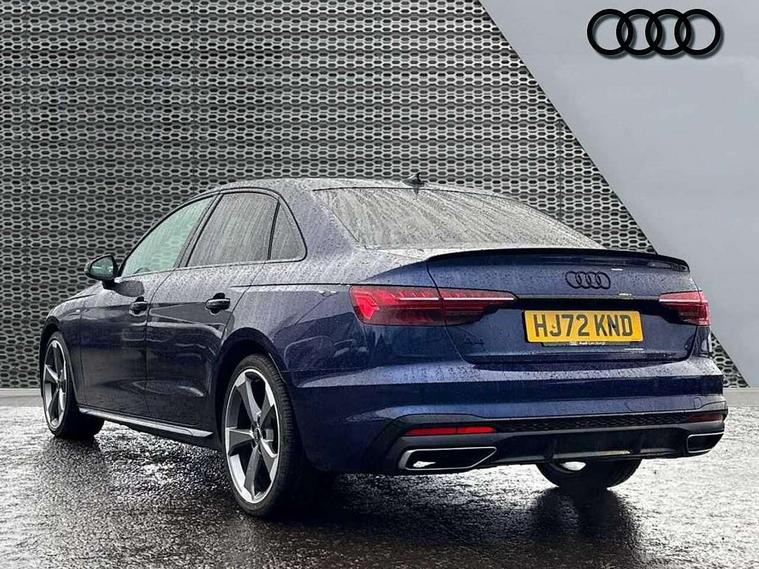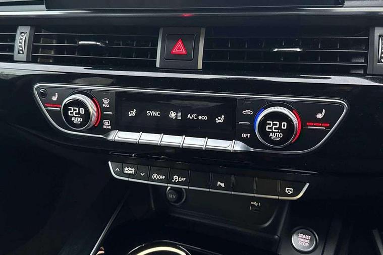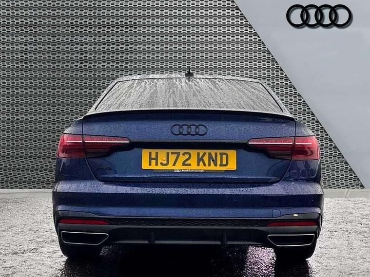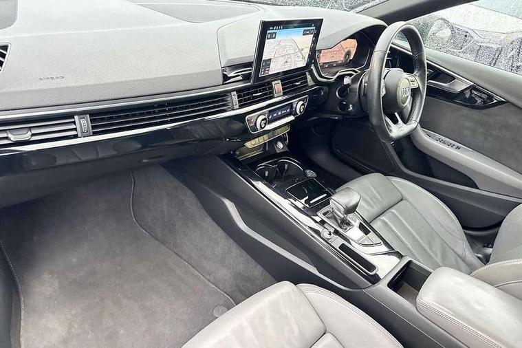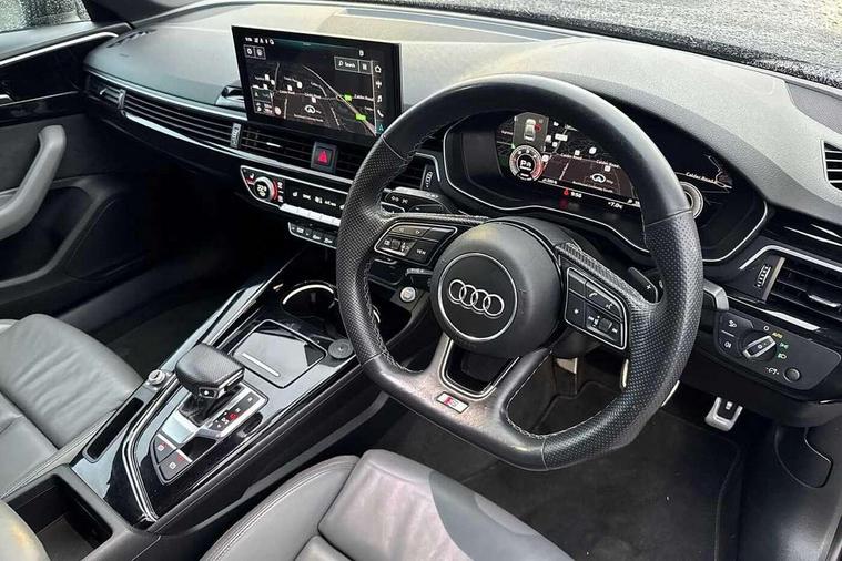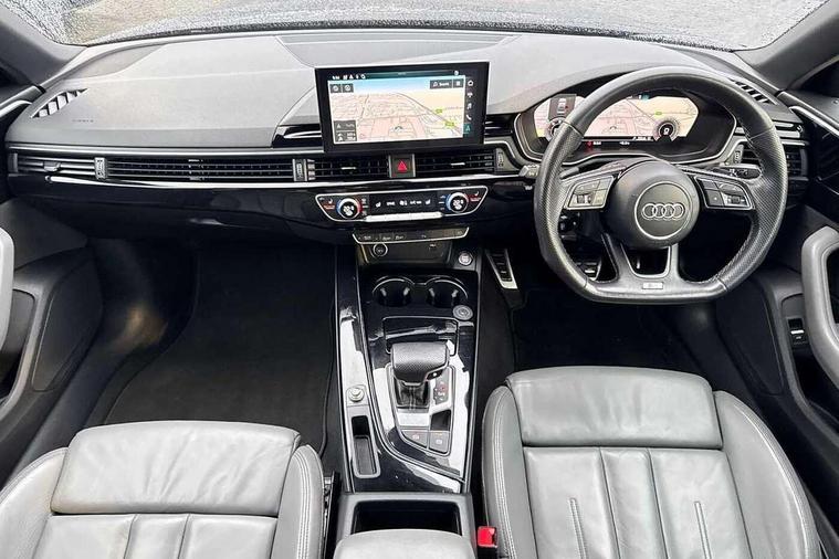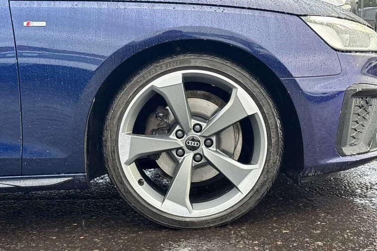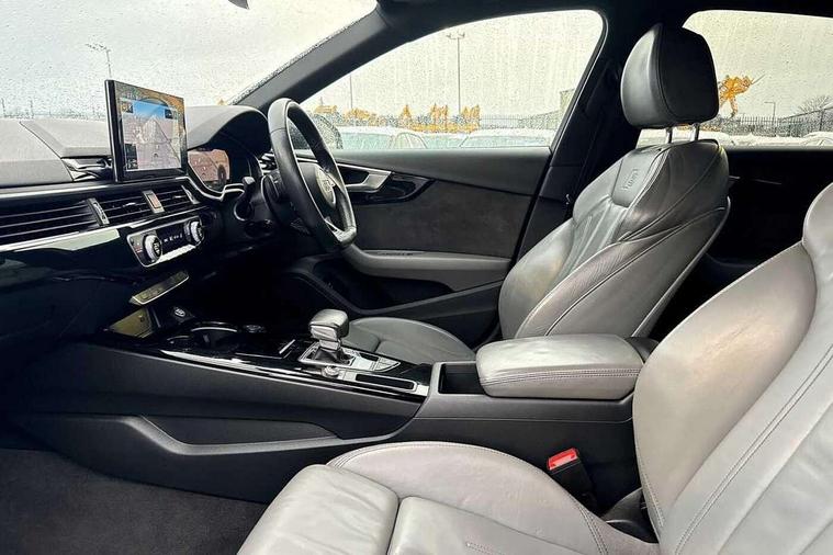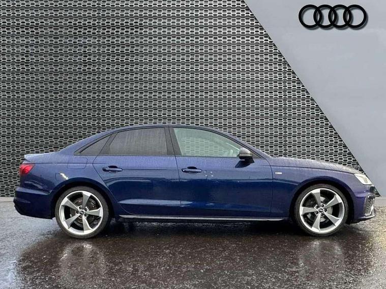 Audi connect safety and service (e-call), Audi connect with Amazon Alexa Integration, Audi drive select, Audi smartphone interface, Audi virtual cockpit, Automatic start-stop system with coasting functionality and efficiency programme, Bluetooth interface, Electric boot lid release, Electromechanical power steering, Email, calendar and text messages displayed via MMI, MMI Navigation plus with MMI touch includes 10.1" high resolution colour MMI display, 3D map, Voice control system, Sports suspension lowered by 23mm, 2 USB charging ports, 8 passive loudspeakers, DAB digital radio reception, Auto dimming rear view mirror, Black Audi rings and black badging (model name in black badging, no engine badging), Body colour door handles, Body colour front spoiler lip, Body colour side sill trim, Electrically folding auto dimming/adjustable/heated door mirrors with LED side indicators and kerb view function for passenger side, Front and rear bumpers with side skirts, Front wing badges, Grained matt black side air inlets with matt aluminium silver inlay, High beam assistant, High gloss black B pillar trims and triangular rear door trim, LED headlights with LED rear lights + dynamic rear indicators + headlight adjustment and high beam, turning light + LED daytime running lights, LED third brake light, Matt aluminium silver tailpipe trim, Privacy glass, Rain and light sensors, Rear boot, Rear diffuser in matt titanium black with trim strip in matt aluminium silver, Rear side wing doors, Variable intermittent front wash/wipe, Windscreen with acoustic glazing, 4 way electric lumbar support for driver and front passenger, 40/20/40 split folding 3 rear seat bench in 3 parts with rear centre armrest, Black cloth headlining, Black perforated leather gearknob, Contrast stitching on seats, steering wheel and gear lever gaiter, Deluxe 3 zone electronic climate control, Door sill trims with aluminium inlay, Front and rear head restraints, Front centre armrest, Heated front seats, Illuminated door sill trims with S logo, ISOFIX child seat mounting and top tether, Manual seat adjustment, Single front passenger seat, Stainless steel pedals and foot rest, Black styling pack - A4 Saloon, LED Interior light pack - A4/S4, 3 rear seatbelts, 6 airbags - Driver, front passenger, curtain and side windows, Electronic Stabilisation Control (ESC) including ABS, ASR and EDL, Hill hold assist, Multi collision brake assist, Pop-up bonnet for pedestrian protection, Pre sense city, Rear door child safety locks, Seatbelt monitoring, Warning triangle and first aid kit, Anti theft alarm, Anti theft wheel bolts, Central locking, Keyless Go, Piano black finish inlay, Tool kit, Tyre repair kit,