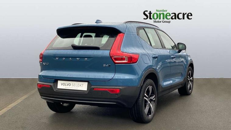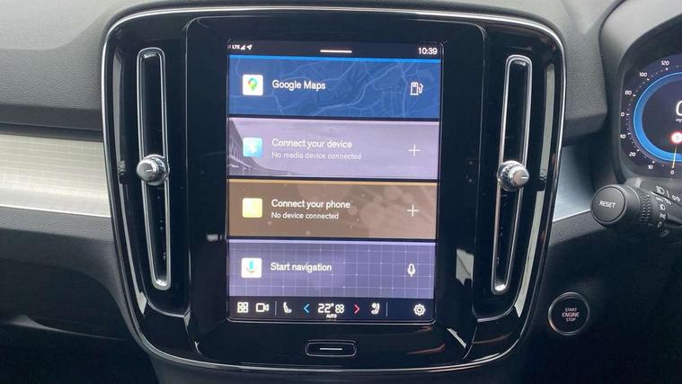 12.3" Progressive Driver Display, 9" centre console portrait touch screen, Adjustable steering wheel force, Bluetooth hands free telephone kit, E-call, eCall emergency call system, Front park assist, Google automatic services - Nav with google maps, apple carplay/android auto, voice recognition with google assistant, Hands free power tailgate, Lane keep assist with driver alert control, Oncoming Lane Mitigation, Rear park assist, Speed limiter, Speed sensitive steering, Wireless/Inductive Mobile Phone Charging, Dynamic chassis, DAB Digital radio, High performance sound, 8 speakers/250W, front USB and 2 rear type C USB, Steering wheel mounted remote controls, Adaptive brake lights with high level LED brake lights, Auto dimming interior mirror, Automatic headlamp levelling, Automatic LED Headlights + Active high beam incorporating daytime running lights, Front aluminium tread plates, Front and rear electric windows, High gloss black front and rear skid plate, High gloss black mesh front grille with high gloss black surround, High gloss black window trim, Home safe and approach lighting, Integrated roof rails in high gloss black, LED front fog lights, Puddle lights, Rain sensor with automatic windscreen wiper activation, Rear side wing doors, Rear wiper, Roof antenna, Roof spoiler, Visible VIN plate, 12V socket in front tunnel console and luggage compartment, 2-Zone electronic climate control with CleanZone air quality system and pollen filter, 3 seat bench in 2nd row, 3 Spoke tailored steering wheel with chrome trim, 60/40 versatile split folding rear seat, A-pillar parking ticket holder, Ambient front door and instrumental panel lighting, Centre console cupholders and storage, Flexible load floor and grocery bag holder, Floor mats, Front door pocket and front cupholder illumination, Front footwell illumination, Front headrests, Front reading light and theatre lighting, Front seat cushion extensions, Front tunnel pocket, Glovebox bag hook, Height adjustable passenger seat, Height/reach adjustable steering column, High gloss centre tunnel deco, Illuminated glovebox, Illuminated luggage compartment, Illuminated tailgate, Illuminated vanity mirrors, Integrated waste bin, Isofix attachments on outer rear seats, Load protection net, Multi directional lumbar support, Power driver seat with memory + exterior mirrors memory, Rear armrest / integral cup holders / storage tray, Rear headrests, Rear reading and courtesy lights, Single front passenger seat, Underfloor cargo storage, Climate pack - XC40, 3x3 point rear seatbelts, City safety with steering support with Pedestrian + cyclist + front collision warning with full auto brake and rear auto brake, Drivers knee airbag, Dual stage driver/passenger airbags, Electronic parking brake with auto hold, First aid kit, Front and outer rear seatbelt reminder and pretensioners, Front seats SIPS airbags, Hill descent control, Hill start assist, Inflatable curtain, Passenger airbag cut-off device, Power child locks on rear doors, Road sign information display, Run off Road Mitigation, Run off Road Protection, SIPS (Side Impact Protection System), Slippery road and hazard light alert, Stability and Traction Control with Spin control, Engine Drag Control and Corner Traction Control, Tyre pressure monitoring system, Vehicle deceleration control with Anti-lock Brake System, Electronic Brake Distribution and Emergency Brake Assist, Warning triangle, WHIPS whiplash protection system - front, Anti-theft alarm including immobiliser/volume sensor + level sensor, Care key with user defined top speed, Key integrated remote control central locking + fuel flap with deadlocking system and auto open/close power windows, Keyless drive includes keyless entry and keyless start, Locking wheel nuts, Private locking for tailgate,