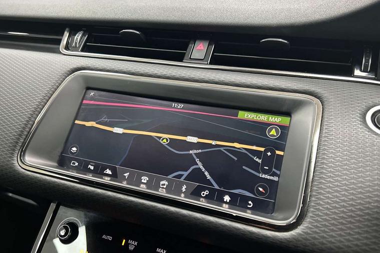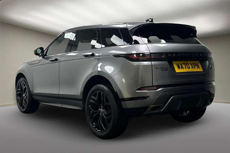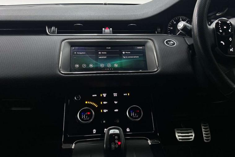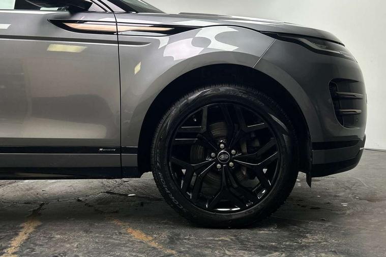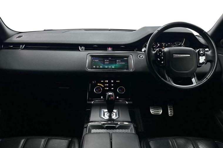 3D 360 degree surround camera, Android Auto, Apple car play, Bluetooth connectivity, Brake pad wear indicator warning light, Driver condition monitor, Electronic power assisted steering (EPAS), InControl remote, Land Rover InControl apps, Lane keep assist, Pivi pro connected includes upgraded infotainment, smart settings, connected navigation pro, Nuance speech licence, Push button starter, Traffic sign recognition with adaptive speed limiter, Voice control system, Wade Sensing, All terrain progress control, Efficient Driveline, Large fuel tank, Passive suspension, Terrain Response 2 Auto, Digital Audio Broadcast radio-DAB, Steering wheel mounted controls, Electric windows with one touch open/close and anti trap, Evoque and R-Dynamic badge, Flush deployable exterior door handles, Heated rear window with timer, Heated washer jets, Heated windscreen, Power fold, auto-dimming, heated door mirrors with approach lights and auto dimming driver side, Rain sensing windscreen wipers, Rear fog lights, Shadow atlas bonnet and tailgate script, Tailgate spoiler, 40:20:40 split folding rear seats with centre headrest and armrest, Ambient interior lighting, Bright metal pedals, Isofix system on outer rear seats, Overhead lighting console, Overhead stowage for sunglasses, Passive front head restraints, Rear air vents, Rear centre headrest, Satin chrome gearshift paddles, Sunvisors with illuminated vanity mirrors, Twin sliding front centre armrest, 3 rear 3 point seatbelts, Anti-lock braking system (ABS), Customer configurable autolock, DSC - Dynamic Stability Control, Electronic brake force distribution, Electronic parking brake, Electronic traction control, Emergency braking, Front and rear seatbelt reminder, Hill descent control, Hill launch assist, Low traction launch, Power operated child locks, Roll stability control, Six airbags - Driver and passenger airbags/driver knee airbag/front side airbag and curtain airbags, Torque vectoring brake, Tyre pressure monitoring system, Alarm, Immobiliser, Intrusion sensor, Locking wheel nuts,