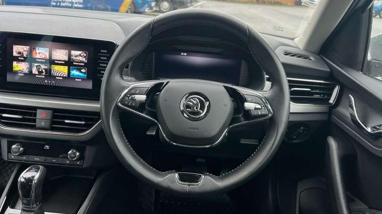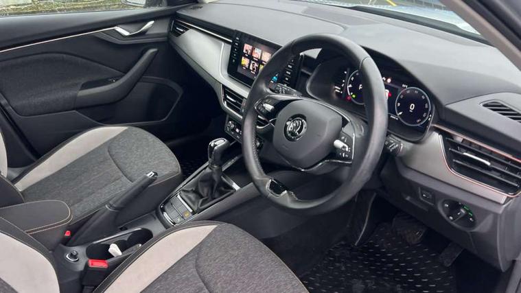 Amundsen satellite navigation with 9.2" glass colour touchscreen display, web radio, voice control and traffic sign recognition, Bluetooth system, E-call, Front assist system, Gesture control, PAS, Rear view camera, Service indicator, Speed limiter, Wireless SmartLink for apple car play, android auto and mirrorlink, 8 speakers, Auxiliary input socket, DAB Digital radio, Body colour bumpers, Body colour door mirrors and handles, Chrome grille surround, Dimming rear view mirror with black surround, Electric folding door mirrors, Electrically adjustable and heated door mirrors, Front and rear electric windows, Headlight range control, Heated rear window, LED rear lights with dynamic indicators, LED third brake light, Light sensors, Privacy glass, Rain sensor, Rear fog lights, Rear side wing doors, Rear wiper, 12V Accessory socket in centre console, 3 seat bench in 2nd row, Chrome inner door handles, Dual zone climate control, Front head restraints, Glove compartment with illumination, Ice scraper, Isofix child seat fittings on outer rear seats, ISOFIX on front passenger seat, Manual lumbar support for front seats, Rake/reach adjustable steering wheel, Reading lights, Single front passenger seat, Sun visors with illumination on front passenger, Textile floor mats, Third rear headrest, Top tether for front passenger seat, Umbrella in driver's door, 3x3 point rear seatbelts, Airbags - driver and front passenger, ESP, Front passenger airbag deactivation switch, Front side airbags with curtain airbags, Hill hold control, Manual parking brake, Manual rear child locks, One tone horn, Rear disc brakes, Seatbelt reminder for driver an co-driver, Traction control, Tyre pressure monitor, Anti-theft alarm system with interior monitoring, backup horn, towing protection and remote central locking with SAFE system, Anti-theft wheel bolts, Electronic engine immobilizer, Latice curved decorative insert on the dashboard with hot stamping in copper and white ambient lighting white,
