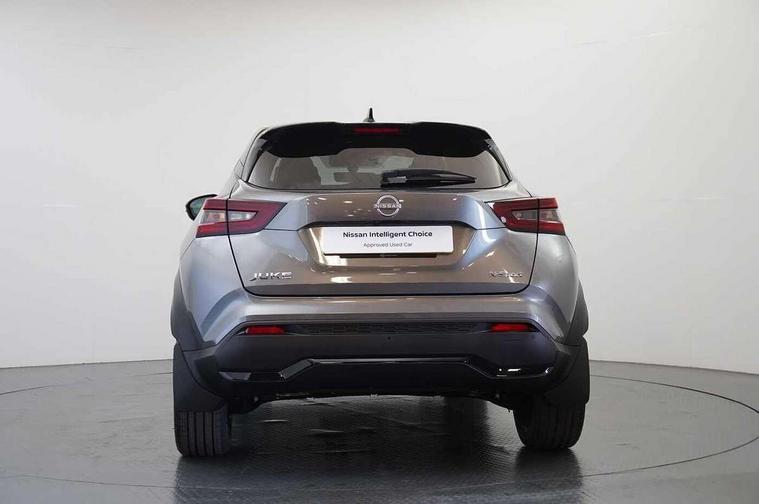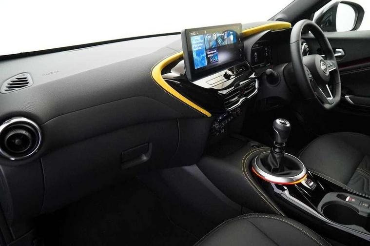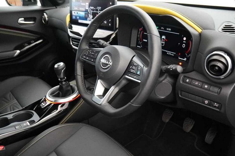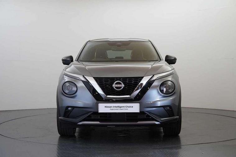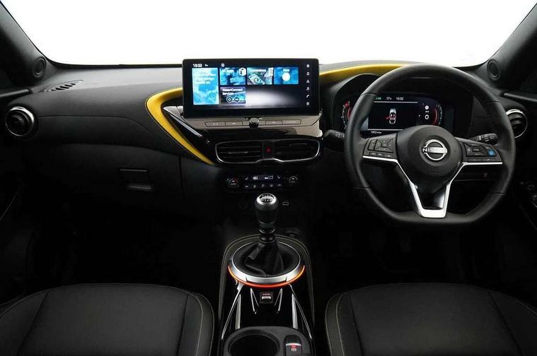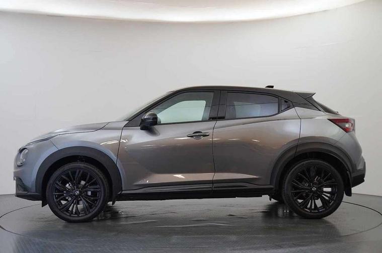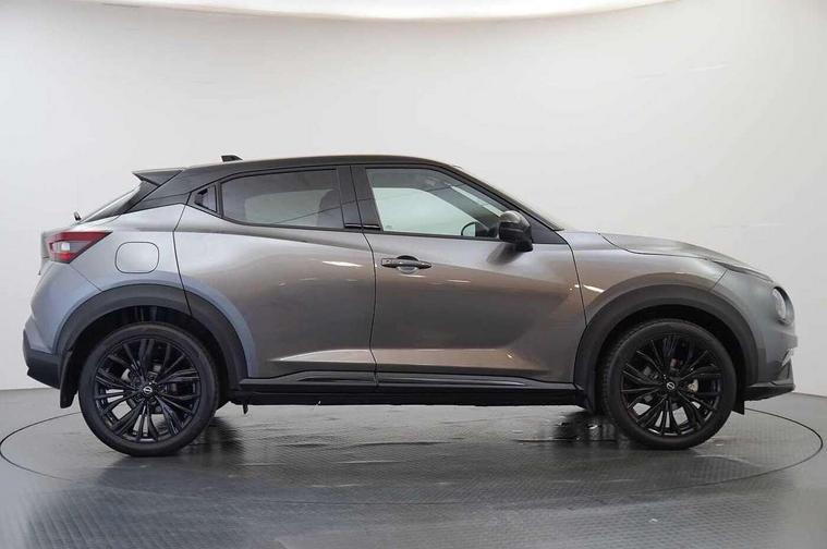 12.3" full colour TFT screen combimeter, Drive modes select (Eco, normal and sport), Emergency and breakdown call, Front parking sensor, Idle start/stop system, Intelligent driver alert system, Intelligent lane intervention, Lane departure warning system, Nissan connect 12.3" touch screen entertainment system, Nissan connect nav with TomTom traffic, Nissan connect services, Outside temperature sensor, Power Steering, Rear parking sensor, Stop/start button, Traffic sign recognition, Trip computer, Voice recognition, WiFi connectivity, Wireless Apple CarPlay and Google Android auto, Wireless Smartphone charger, 10 Bose speakers 6 speakers and 2 headrest speakers for driver/passenger seats, 2 X Rear console USB port, Bluetooth system, USB, Aux-in and 12V socket, Bose personal sound stage control, DAB Digital radio, Auto dimming frameless rear view mirror, Automatic hazard signal with emergency stop signal, Body colour door handles, Electrically adjustable door mirrors with integrated indicators, Follow me home headlights, Front and rear electric window with one touch driver window, Heated and auto folding door mirrors, High beam assist, LED 3rd brake light, LED daytime running lights, LED front fog lights, LED headlamps, LED rear fog lamp, LED rear lamps, One touch passenger window, Rain sensor windscreen wipers, Rear privacy glass, Rear side wing doors, Rear wiper, Roof spoiler, Shark fin roof antenna in solid Black, Three blink turn signal, 3 height adjustable rear headrests, 3 seat bench in 2nd row, 60/40 split folding rear seat, Automatic climate control, Card holder on driver sunvisor, Door ambient lighting, Driver seat back pocket, Driver side rear coat hanger, Driver/passenger sunvisors and vanity mirrors, Front and rear cabin lights, Front armrest, Front door pockets with bottle holders, Front head restraints, Front/rear passenger grab handles, Gear console ambient circle lighting, Height adjustable driver's seat, Internal chrome door handles, Leather gearshift knob, Luggage board, Luggage space lighting, Monoform sporty seats, Multifunction steering wheel, Passenger seat back pocket, Rear door bottle holders, Single front passenger seat, Smooth synthetic leather steering wheel, Synthetic leather kneepad, Telescopic steering wheel adjustment, Two cupholders in front centre console, Two rear isofix child seat anchorage points with top tether, Welcome light and console tray ambient lighting, Advanced safety shield pack - Juke Manual, Gloss black exterior personalisation pack - Juke, Heat pack with height adjustable passenger seats - Juke, Interior personalisation pack - Juke, ABS with EBD and brake assist, Active ride control, Active Trace Control, Driver and passenger airbags, Driver and passenger side airbags, Electric handbrake with auto hold function, Electronic Stability Programme (ESP), Front and rear curtain airbags, Height adjustable seatbelts, Hill start assist, Intelligent emergency braking with pedestrian and cyclist recognition, Rear door child safety locks, Seatbelt reminder for driver/front passenger and rear seats, Three 3 point rear seatbelts, Traction control, Tyre pressure monitoring system, VDC Dynamic Vehicle Control, Alarm, Immobiliser, Intelligent key and start push button with walk away lock and approach unlock functions, Remote central locking, 19" Akari Black alloy wheels, Tyre puncture repair kit,