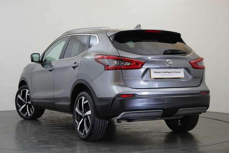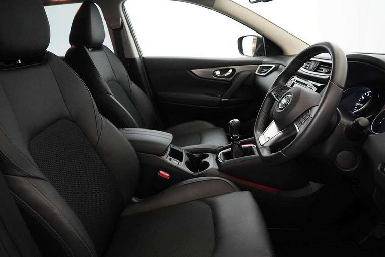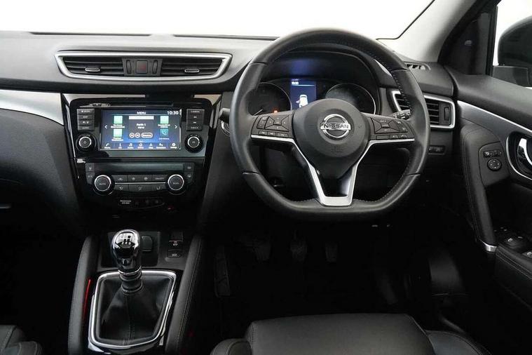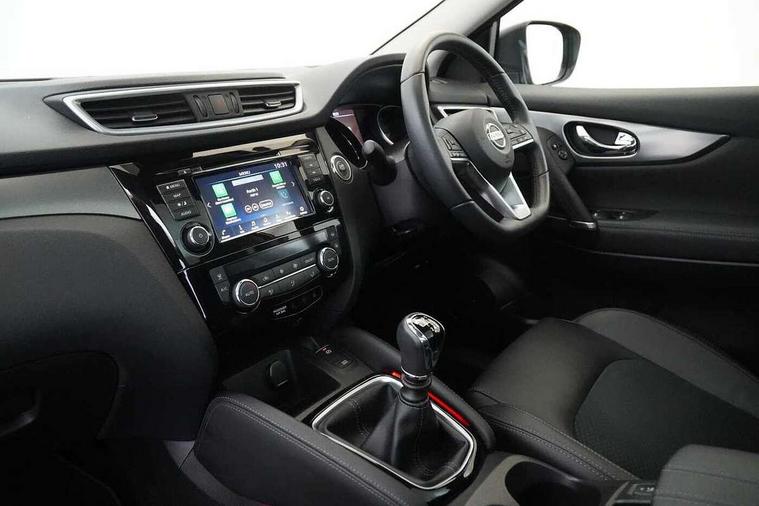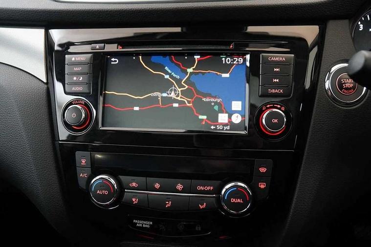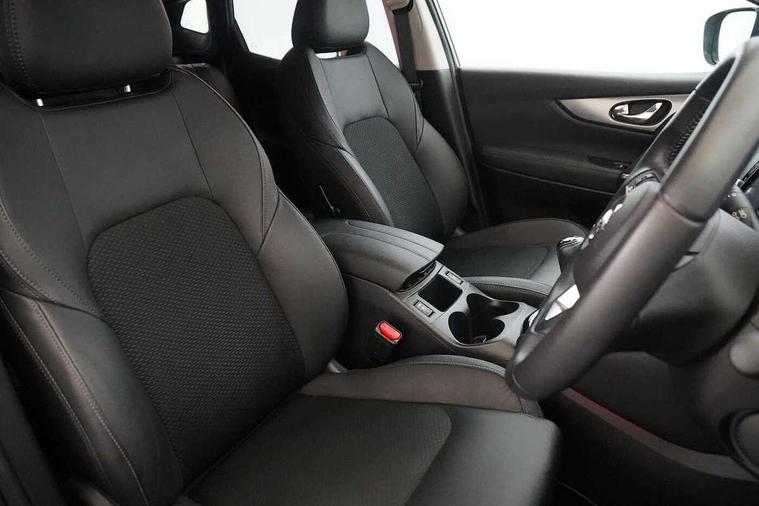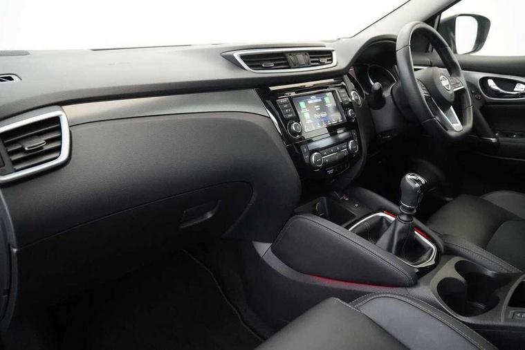 Advanced drive assist display 5'' TFT coloured screen, Android Auto, Apple CarPlay preparation, Bluetooth connectivity, Cruise control + speed limiter, Electric speed sensitive power steering, Front parking sensors, Intelligent around view monitor, Intelligent parking assist, Lane departure warning system, Nissan connect evo 7" touchscreen navigation and entertainment system, Normal or sport selectable steering, Outside temperature sensor, Push button starter, Rear parking sensors, Rear view camera, Service interval indicator, Smartphone integration, Stop/start system, Tomtom connected services, Traffic sign recognition, Trip computer, Voice control system, Nissan chassis control (intelligent ride control, intelligent trace control, intelligent engine brake), AM/FM radio, CD audio system, Aux-in socket, Bose premium 8 speaker system, DAB Digital radio, Steering wheel mounted audio controls, USB port, Anti dazzle rear view mirror, Auto wipers, Body colour bumpers, Body coloured door handles, Body coloured door mirrors, Chrome window surround, Daytime running lights dip function when turn signal applied, Electric folding door mirrors, Electric front and rear windows with one touch illuminated window controls, Electric front/rear windows, Electrically adjustable door mirrors, Front fog lights, Heated door mirrors, High beam assist, Intelligent auto headlights, LED indicators in door mirrors, Matt silver roof rails, Panoramic sunroof with one touch shade, Privacy glass, Rear roof spoiler, Rear wiper with reverse link, Shark fin antenna, Underbody vortex generators, 2 X front 12v power sockets, 3 height adjustable rear headrests, 60/40 split folding rear seat, Ambient lighting in centre console, Boot lighting, Centre console storage box/armrest, Chrome interior door handles, Configurable luggage board system, Dual zone climate control, Electrically adjustable driver seat, Front and rear door pockets with bottle holders, Front and rear seat belt pre-tensioners with load limiters, Height adjustable front headrests, Individual rear seat reading lights, Leather D shaped steering wheel, Leather gear lever, Leather knee pad, Manual height adjustable front passenger seat, Manual lumbar support on driver seat, Manual lumbar support on passenger seat, Monoform front seats with plastic backboard, One touch electric shade, Parcel shelf stow function under luggage board, Part leather upholstery, Pollen filter, Rear armrest with 2 cupholders, Synthetic leather wrapped door handle with contrasting stitching, Tilt/telescopic adjustable steering wheel, Heat package - Qashqai, LED pack - Qashqai, Safety shield plus pack - Qashqai, 6 airbags - Driver, front passenger, curtain and side airbags, ABS, ESP, EBD and brake assist, Auto hold function, Child locks on rear doors, Electronic parking brake, Front and rear seat belt warning, Front passenger airbag deactivation, Height adjustable front seatbelts, Hill start assist, Intelligent emergency braking with pedestrian recognition, Three 3 point rear seatbelts, Tyre pressure monitoring system, Anti-theft immobiliser, Intelligent Key, Remote central locking, Thatcham Cat.1 alarm, Carbon graphite dash trim, Tyre puncture repair kit,