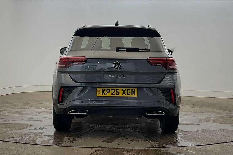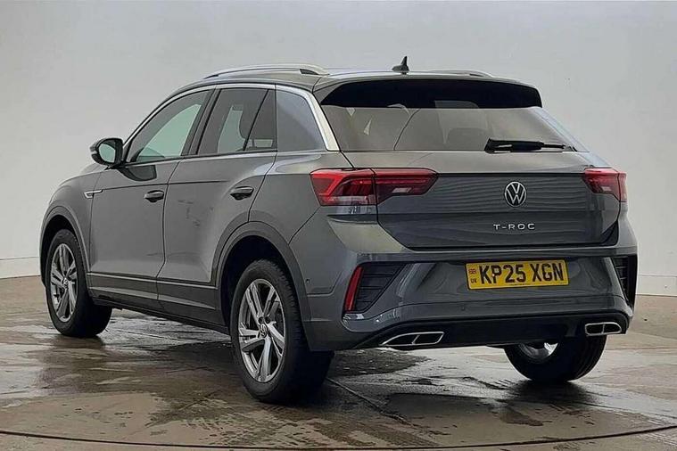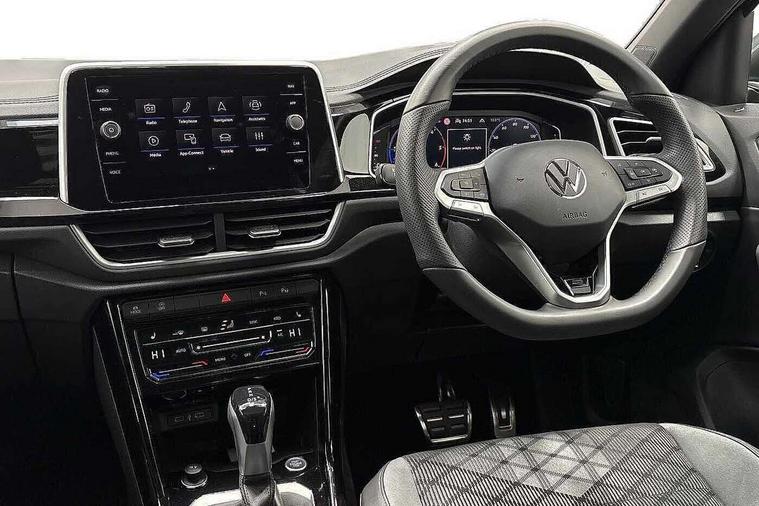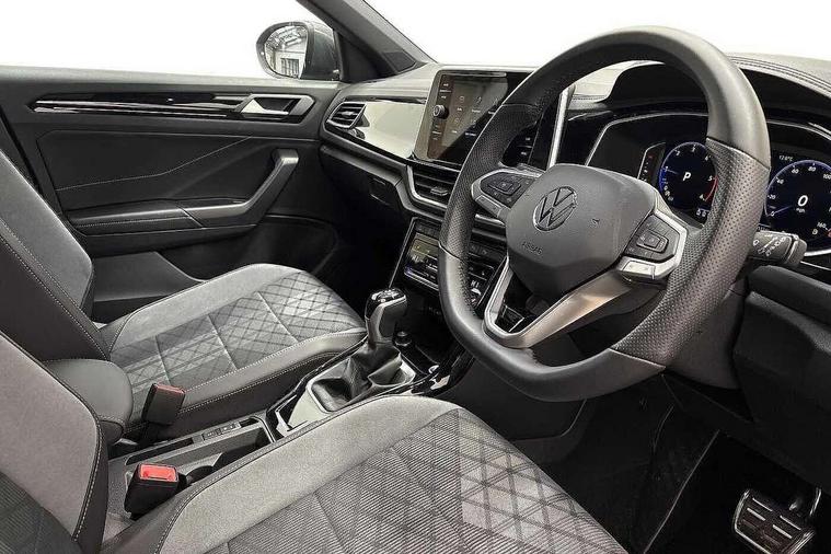 10.25" Digital cockpit pro, Advanced driver attention and drowsiness monitor, Dynamic road sign display, Emergency call service, Lane keeping system Lane Assist, Mobile phone interface, Modified key software - reduce switch off time for key status change to Long no motion, Online services, Park assist including front and rear parking sensors, Service interval indicator, Tailgate/trunk lid release from outside, Think blue trainer driver tips and journey analysis, Warning sound and light for front seatbelts unfastened, Wireless app connect, Battery regeneration during braking, Start/stop function with battery regeneration, DAB Digital radio, Diversity antenna for FM reception, Front and rear 6 speakers, Music playback - MP3, WMA and AAC files, Premium USB cable in choice of either Apple or Android smartphone compatibility, SD card slot, Simultaneous pairing of 2 compatible mobile devices, Title and cover art display, We Connect and We Connect Plus functionality, Auto dimming interior rear view mirror, Automatic hazard lights activation under emergency braking, Automatic headlight control with LED separate daytime running lights with coming/leaving home function, Body coloured exterior mirror housings and door handles, Electrically adjustable and heated door mirrors, Extended roof spoiler, Exterior mirrors aspherical on driver side, convex on front passenger side, External USB type C socket and charging sockets, Front windscreen wiper with intermittent wipe and 4 position delay, Heated rear window, LED 3rd brake light, LED rear combination lamps, LED rear number plate lights, Power windows with comfort operation and circuit breaker, Privacy glass for rear side windows and rear window, R-Line design body coloured bumpers, Rain sensor, Rear exhaust tailpipe, Rear fog light on one side and reversing lights on both sides, Rear side wing doors, Rear wash/wipe with intermittent wipe setting, Remote electrically foldable door mirrors, puddle lights and reverse activated passenger's door mirror, 12V power socket in centre console, 3 rear head restraints, 3 seat bench in 2nd row, 4 load lashing points in luggage compartment, Air care climatronic air conditoning system with active combination filter and 2-zone temperature control, Black roof lining, Chrome plated decorative trims, Chrome plated radiator grille inserts, air vent surrounds and light switch surrounds, Door and side trim panel with leatherette insert, Front + rear carpet mats, Front centre armrest, Front cupholders x 2, Front footwell illumination, Front reading light, Front scuff plates with R Line logo, Front seat back storage pockets, Glove compartment door with light, Instrument lighting, white adjustable panel illumination, Interior ambient lighting and surround lighting, Interior light delay, Isofix child seat preparation, Leather gearshift handle, Load-through provision with cup holder when folded down ('Unsplit rear seat bench, split folding backrest, with centre armrest), Luggage compartment lighting, Single front passenger seat, Stainless steel pedals, Storage compartment in left and right luggage area, Storage compartment in rear doors, Storage compartments in driver and front passenger doors, Sunvisors with illuminated vanity mirrors, Variable boot floor, height adjustable and removable, Driver assistance pack without proactive passenger protection - T-Roc, 3 point height adj front seatbelts + pretensioners, 3 point seatbelts in outer rear with ECE label, ABS, Child locks on rear doors, City emergency braking and pedestrian monitoring, Driver and front passenger airbag with front passenger airbag deactivation, Driver and front passenger safety-optimised head restraints, Drivers seatbelt reminder, Electronic parking brake, Electronic Stability Control (ESC) inc EDL (Electronic Differential Lock) and ASR (Traction Control), Front and rear passengers curtain airbag system including front side airbags, Hill start assist, Predictive pedestrian protection, Rear disc brakes, Two tone horn, Tyre pressure loss indicator, Volkswagen roadside assistance, Piano black decorative inserts in dashboard and front door trim panels, Trims for alloy wheels,