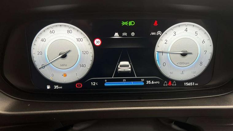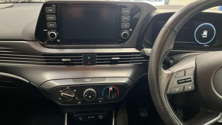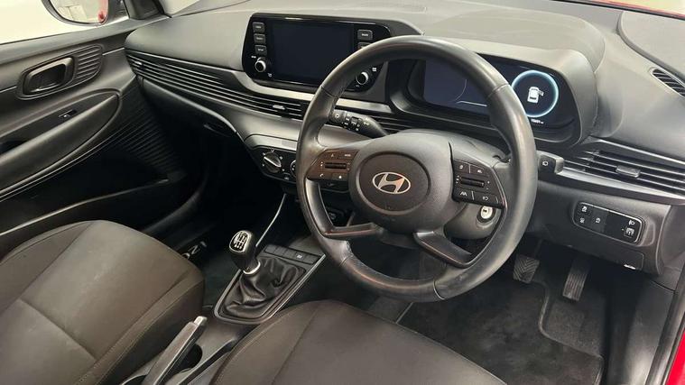 10.25" digital supervision cluster, 2nd Gen eCall, 8" Touchscreen with DAB, Apple car play/Android Auto, Cruise control + speed limiter, Forward collision assist with car, pedestrian and cycle detection, Intelligent speed limit warning, Lane follow assist, Lane keep assist, PAS, Rear parking sensor, Rear view camera with dynamic guidelines, USB C port front, 3rd brake light, Dusk sensor, Electric adjustable heated door mirrors, Front grille mesh pattern design, High beam assist, LED daytime running lights, LED Headlights, LED taillights, Rain sensor, Rear side wing doors, Rear wiper, Repositioned flat metal hyundai emblem, 3 seat bench in 2nd row, Adjustable head restraints, Air conditioning, Cloth upholstery, Floor mats, Leather steering wheel, Single front passenger seat, 3x3 point rear seatbelts, ABS with front and rear diagonally split, Autonomous emergency braking, Child locks on rear doors, Front ventilated disc brakes, Rear solid disc brakes, Tyre pressure monitoring system, 16" alloy wheels, Tyre repair kit,