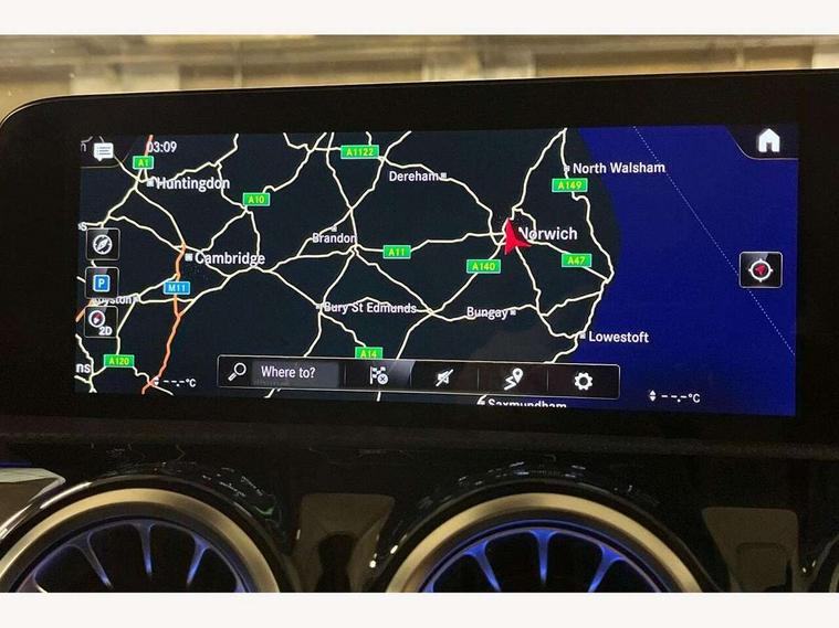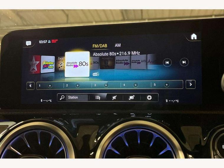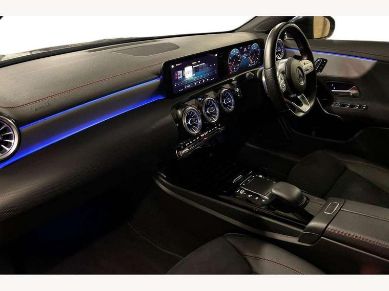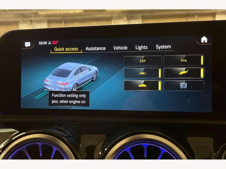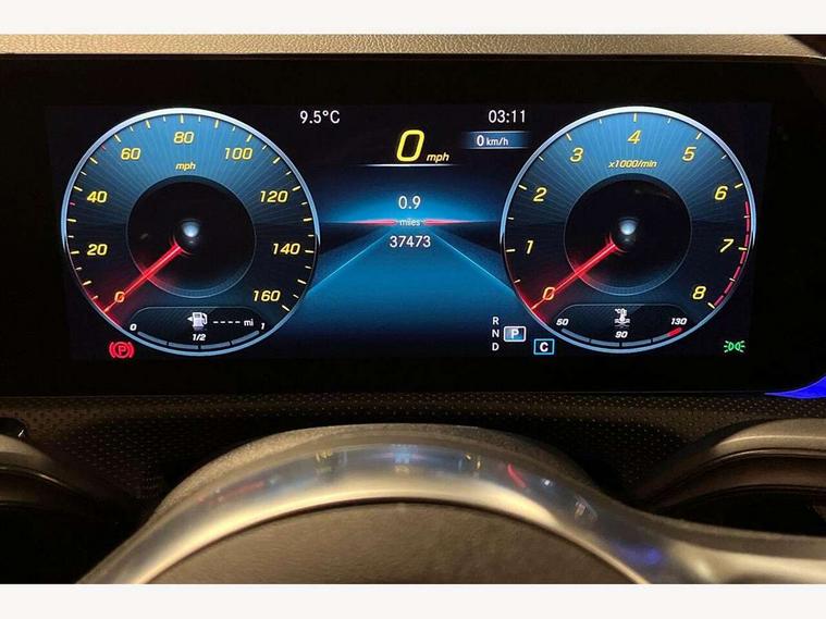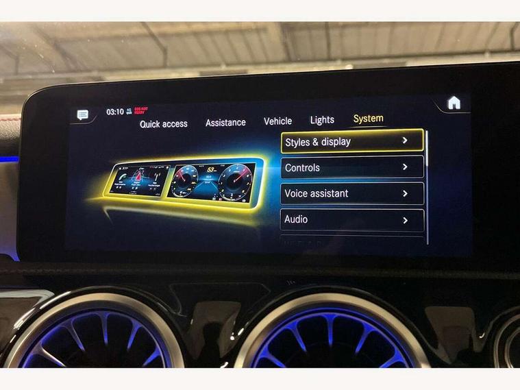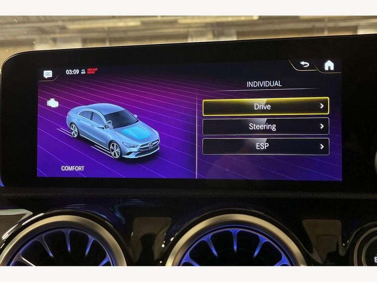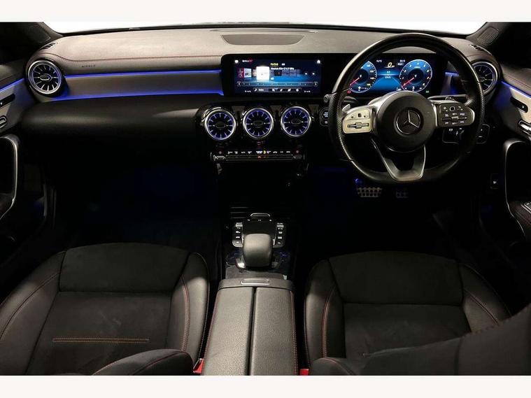 10.25 inch Instrument display with digital cockpit, 10.25 inch touchscreen central media display, Active lane keeping assist, Attention assist - Monitors steering behaviour and long journey fatigue, Blind spot assist, Bluetooth connection, Car wash mode, Cruise control with limiter, Direct steer system with speed sensitive power steering, DYNAMIC SELECT with a choice of driving modes (ECO, Comfort, Sport and Individual), ECO start/stop function, Fluid level warning indicator for fuel, oil, coolant and washer fluid, Hard-disk navigation, Hey Mercedes Voice activation, Lamp failure indicator, Mercedes me connect including emergency call system, accident recovery, breakdown and maintenance management, Mercedes me remote services, Outside temperature gauge, Owners manual and service booklet in English, Pre-installation of private car share, Preinstallation for Mercedes Benz link, Radio aerial integrated into front and rear windshields, Service indicator (ASSYST), Smartphone integration with Apple CarPlay and Android auto, Speed limit assist, Traffic sign assist, Trip computer in multifunction display with current consumption indicator, Lowered comfort suspension, Rear axle multi-link, DAB digital radio tuner, MBUX multimedia system, Mid-range sound system, USB (type C) ports (2) in stowage compartment and 1 in front of centre console, Adaptive brake lights, AMG body styling with AMG front apron and rear apron and visible exhaust tailpipe in chrome trim elements, AMG bodystyling side skirts, Body colour bumpers, Body colour door handles, Chrome beltline strips, Diamond radiator grille pins in chrome, Electric panoramic sunroof with automatic tilt and convenience closing fuinctions, rain sensor auto closing and electronic roller sunblind, Electric windows, Electrically adjustable and heated door mirrors with integrated LED indicators, Exhaust system with 2 Visible tailpipe trim elements and rear apron with trim in chrome, Headlamp assist automatic headlamp activation, Heated glass rear windscreen + timer control, High level LED third brake light, Integrated LED daytime running lights, Interior mirror with black reading lamps and frameless, LED tail lamp, Multibeam LED headlamps with adaptive highbeam assist plus, Privacy glass with dark tinting on rear side windows and rear window, Rain sensing windscreen wipers with two sensitivity settings, Rear boot, Rear fog lamp, Rear side wing doors, Variable front intermittent wipers, Window line trim strip in chrome, 3 seat bench in 2nd row, 3 spoke flattened bottom nappa leather multifunction steering wheel with perforated leather in grip area, 40:20:40 split folding rear seat backrests, Air conditioning - Two zone thermotronic luxury automatic climate control with display, Air vents with surround in silver chrome, Artico man-made leather upholstery, Automatic child seat recognition sensor, Black roof lining, Brushed stainless steel sports pedals with rubber studs, Electrically adjustable front memory seats including lumbar support, Floor mats with stitched AMG lettering, Front centre armrest with stowage, Galvanished gear shift paddles on steering wheel, Heated front seats, Illuminated front door sills with changeable cover, Illuminated glove compartment stowage, Interior lighting - 64 colour Ambient lighting, Luggage net on driver/front passenger seat backrest, Manually adjustable front seats, Manually height and reach adjustable steering column, Rear armrest with two integral cup holders for drinks, Rear head restraints, Single front passenger seat, Sport seats with fixed head restraints, Stowage compartment in centre console with retractable cover, Sunvisors with illuminated vanity mirrors, Touchpad on center console, Twin front cupholders, Two outer rear seat isofix and top tether child seat fixing points, Keyless go comfort pack - CLA, Light and sight pack - CLA, Mirror pack - CLA, Night package - CLA, Parking package - CLA, Active bonnet pedestrain safety measure which detects an impact and raises bonnet by 65mm, Active brake assist includes forward collision warning system with autonomous braking, Adaptive brake assist with hold function and hill start assist, Anti lock braking system (ABS) with brake assist, Black seat belts, Bonnet with power domes, Brake pad wear warning indicator, Childproof locks manually operated for rear doors and electrically operated for rear power windows, Crash responsive emergency lighting, Driver and front passenger head and sidebags, Driver and front passenger windowbags, Drivers knee airbag, Dual stage driver and front passenger airbags, Electric parking brake, Electronic stability programme with acceleration skid control, ESP curve dynamic assist, Exit warning, Front and rear seatbelt reminder, Front passenger seat occupancy sensor, Three point rear seat belts, Tyre pressure monitoring system, Warning triangle and first aid kit, Guard 360 degree guard vehicle protection system with immobiliser and interior protection, Remote central locking and crash sensor with emergency opening function, Light aluminium with longitudinal grain interior trim, 19" AMG multi-spoke black painted light alloy wheels with high sheen rim finish, Summer tyres, Tirefit tyre sealant kit,
