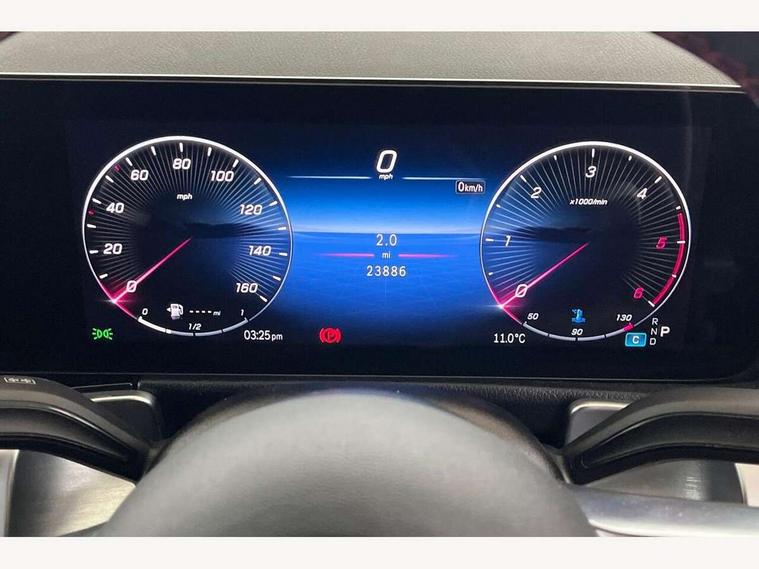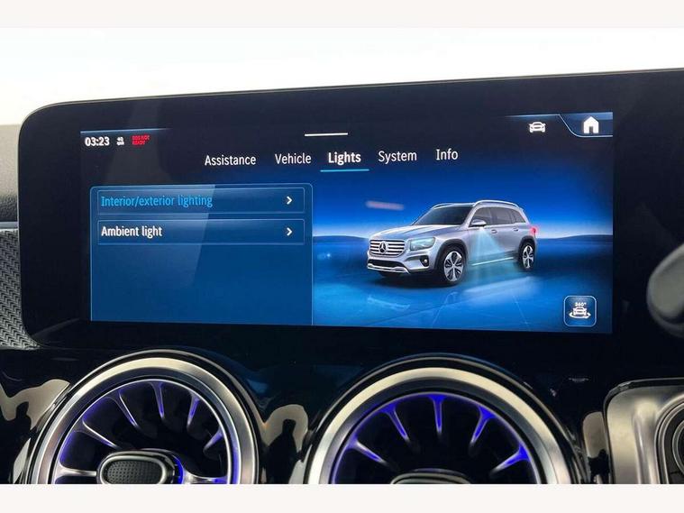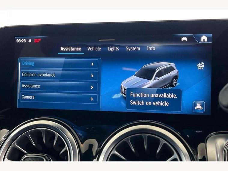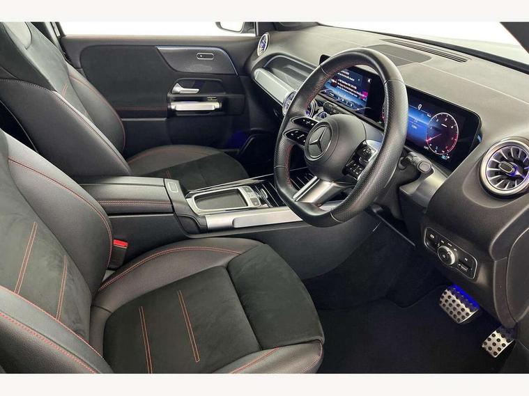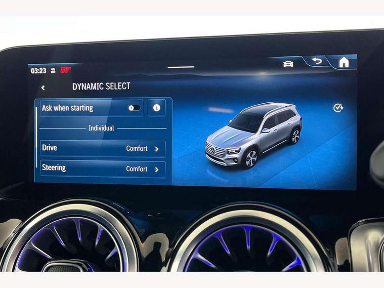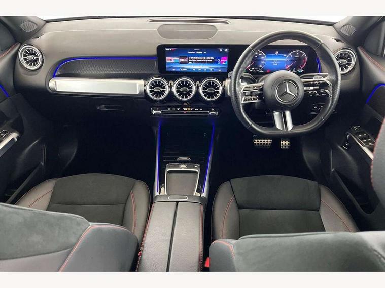 10.25 inch touchscreen central media display, 10.25" Digital instrument cluster display screen, 12 ultrasonic sensors in front and rear bumpers, 180 degree reversing camera with parking guidelines, Additional drive program "OFF-ROAD", Assisted parking: reversing backwards into perpendicular and parallel parking spaces, Attention assist - Monitors steering behaviour and long journey fatigue, Bluetooth connection, Brake pad wear indicator warning light, Car wash mode, Convenience opening and closing, Direct steering, DYNAMIC SELECT with a choice of driving modes (ECO, Comfort, Sport and Individual), ECO start/stop function, Engine start/stop button, Fluid level warning indicator for fuel, oil, coolant and washer fluid, Hard disk navigation, Hey Mercedes Voice activation, Lamp failure indicator, Lane keep assist, MBUX navigation premium, Mercedes me connect including emergency call system, accident recovery, breakdown and maintenance management, Mercedes me remote services, Outside temperature gauge, Owners manual and service booklet in English, Pre-installation of private car share, Preinstallation for parking damage notification, Radio aerial integrated into front and rear windshields, Remote boot closing, Service indicator (ASSYST), Smartphone integration with Apple CarPlay and Android auto, Speed limit assist, Tailgate, Trip computer in multifunction display with current consumption indicator, Ultrasound sensors - positioned in the handle of the tailgate, Wireless charging, Comfort suspension with ride height lowering, Rear axle multi-link, 1 USB-C port in the oddments compartment (Charge + Data transfer), 2 USB-C ports for the rear on the centre armrest (Charge only), 2 USB-C ports under the front centre armrest (Charge + Data transfer), DAB digital radio tuner, MBUX multimedia system, Mercedes Benz sound system (100 W) with 6 speakers, Pre installation for Mercedes Benz Link, Adaptive brake lights, Adaptive high beam assist, AMG front apron with front splitter in the colour of the vehicle with chrome trim element, AMG rear apron with visible tailpipe trim and chrome trim element, AMG specific/dual flow exhaust pipes in chrome (non-functional), Auto dimming rear view mirror, Beltline trim and window line trim strip in high gloss aluminium, Black grained side sill trim with chrome inlay, Body coloured door handles, Electric adjustable and heated door mirrors with integrated LED side indicators, Electric folding door mirrors, Front and rear electric windows, Headlamp assist automatic headlamp activation, Heat insulating dark-tinted glass starting from B-pillar, Heated glass rear windscreen + timer control, High level LED third brake light, Interior mirror with black reading lamps and frameless, LED high performance headlamps with integrated LED daytime running lights, LED tail lamp, Polished aluminium roof rails, Radiator grille as a diamond grille with chrome pins and central Mercedes star, Rain sensor windscreen wipers, Rear fog lamp, Rear side wing doors, Rear wiper, Single louvre in matt grey with chrome inserts and black highlights, Two visible tailpipe trim elements exhaust, Ultrasonic sensors - positioned in the front and rear bumpers, Wheel arch liners in the colour of the vehicle, 12V socket in the oddments compartment, 3 seat bench in 2nd row, 3 twin spoke flattened multifunction steering wheel in nappa leather - horizontal twin spoke in high gloss black, vertical twin spoke in silver chrome, 4 way adjustable lumbar support, 40:20:40 split folding rear seats, Air vents with silver chrome surrounds, AMG floor mats, AMG sports pedals with brushed stainless steel surfaces and black rubber studs, Automatic child seat recognition sensor, Black roof lining, Door handles with chrome inserts, Fluorescent jacket, Front and rear headrests, Front centre armrest with stowage, Galvanised steering wheel gearshift paddles in silver chrome, Handle recess lighting, Heated front seats, Height adjustable head restraints, Height/reach adjustable steering column, Interior lighting - 64 colour Ambient lighting, Luggage net on driver/front passenger seat backrest, Single front passenger seat, Sports seats, Stowage compartment with retractable cover, Sun visors with illuminated vanity mirrors, THERMATIC automatic climate control, Third row of seats for two people on rear seat, Twin front cup holders, Two outer rear seat isofix and top tether child seat fixing points, Easy pack tailgate, Interior lighting with light and sight pack - GLB, Seat comfort package - GLB, 3 rear 3 point seatbelts, Active bonnet pedestrain safety measure which detects an impact and raises bonnet by 65mm, Active brake assist includes forward collision warning system with autonomous braking, Adaptive brake assist with hold function and hill start assist, Airbags - kneebag for driver, Anti-lock braking system (ABS) with brake assist, Black seatbelts, Bonnet with power domes, Childproof locks manually operated for rear doors and electrically operated for rear power windows, Crash responsive emergency lighting, Curve dynamic assist, Downhill speed regulation (DSR), Driver and front passenger head and sidebags, Driver and front passenger windowbags, Dual stage driver and front passenger airbags, Electric parking brake, Electronic stability programme with acceleration skid control, Front and rear seatbelt reminder, Front brake callipers with Mercedes Benz lettering, Front passenger seat occupancy sensor, Perforated front brake discs, Tyre pressure monitoring system, Warning triangle and first aid kit, Guard 360 degree vehicle protection - Anti theft alarm system, tow away protection with visual, acoustic warning and alarm, Interior monitoring system, Keyless Go Access and drive authorisation system, KEYLESS-GO starting function, Remote central locking and crash sensor with emergency opening function, Thatcham category 1 alarm system with immobiliser and interior protection, Vehicle key with KEYLESS GO functionality, Carbon structure 