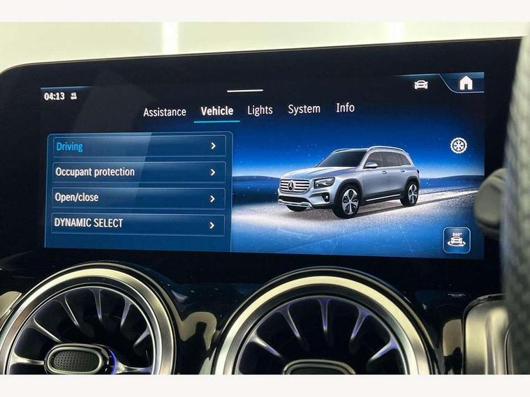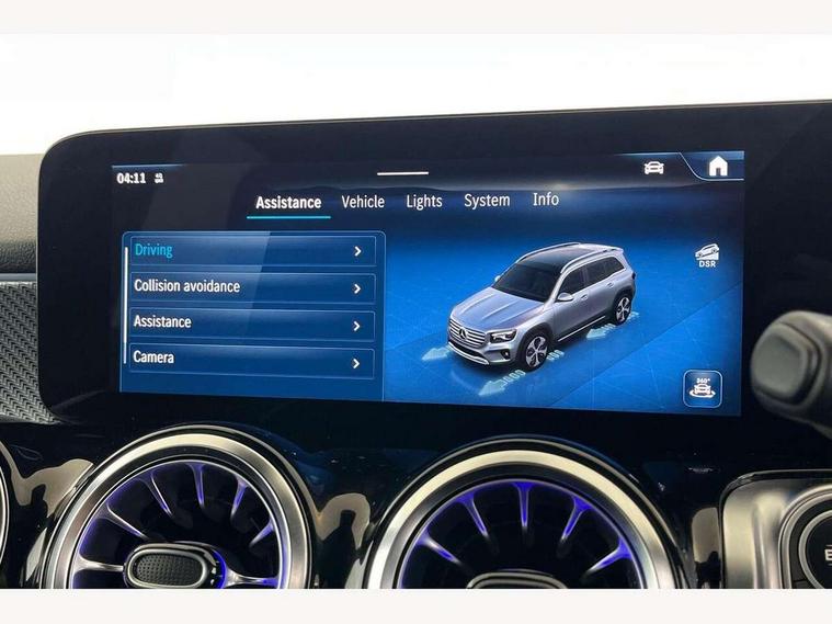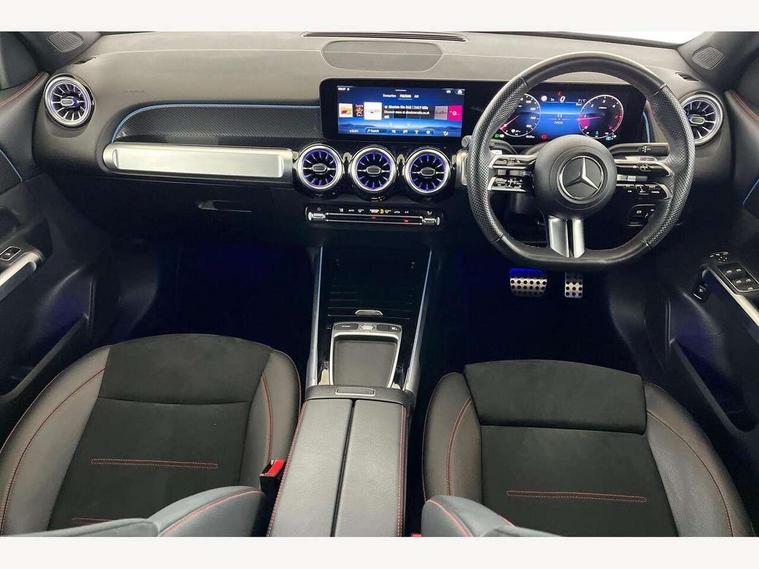 10.25 inch touchscreen central media display, 10.25" Digital instrument cluster display screen, 12 ultrasonic sensors in front and rear bumpers, 180 degree reversing camera with parking guidelines, Additional drive program "OFF-ROAD", Assisted parking: reversing backwards into perpendicular and parallel parking spaces, Attention assist - Monitors steering behaviour and long journey fatigue, Bluetooth connection, Brake pad wear indicator warning light, Car wash mode, Convenience opening and closing, Direct steering, DYNAMIC SELECT with a choice of driving modes (ECO, Comfort, Sport and Individual), ECO start/stop function, Engine start/stop button, Fluid level warning indicator for fuel, oil, coolant and washer fluid, Hard disk navigation, Hey Mercedes Voice activation, Lamp failure indicator, Lane keep assist, MBUX navigation premium, Mercedes me connect including emergency call system, accident recovery, breakdown and maintenance management, Mercedes me remote services, Outside temperature gauge, Owners manual and service booklet in English, Pre-installation of private car share, Preinstallation for parking damage notification, Radio aerial integrated into front and rear windshields, Remote boot closing, Service indicator (ASSYST), Smartphone integration with Apple CarPlay and Android auto, Speed limit assist, Tailgate, Trip computer in multifunction display with current consumption indicator, Ultrasound sensors - positioned in the handle of the tailgate, Wireless charging, Comfort suspension with ride height lowering, Rear axle multi-link, 1 USB-C port in the oddments compartment (Charge + Data transfer), 2 USB-C ports for the rear on the centre armrest (Charge only), 2 USB-C ports under the front centre armrest (Charge + Data transfer), DAB digital radio tuner, MBUX multimedia system, Mercedes Benz sound system (100 W) with 6 speakers, Pre installation for Mercedes Benz Link, Adaptive brake lights, Adaptive high beam assist, AMG front apron with front splitter in the colour of the vehicle with chrome trim element, AMG rear apron with visible tailpipe trim and chrome trim element, AMG specific/dual flow exhaust pipes in chrome (non-functional), Auto dimming rear view mirror, Beltline trim and window line trim strip in high gloss aluminium, Black grained side sill trim with chrome inlay, Body coloured door handles, Electric adjustable and heated door mirrors with integrated LED side indicators, Electric folding door mirrors, Front and rear electric windows, Headlamp assist automatic headlamp activation, Heat insulating dark-tinted glass starting from B-pillar, Heated glass rear windscreen + timer control, High level LED third brake light, Interior mirror with black reading lamps and frameless, LED high performance headlamps with integrated LED daytime running lights, LED tail lamp, Polished aluminium roof rails, Radiator grille as a diamond grille with chrome pins and central Mercedes star, Rain sensor windscreen wipers, Rear fog lamp, Rear side wing doors, Rear wiper, Single louvre in matt grey with chrome inserts and black highlights, Two visible tailpipe trim elements exhaust, Ultrasonic sensors - positioned in the front and rear bumpers, Wheel arch liners in the colour of the vehicle, 12V socket in the oddments compartment, 3 seat bench in 2nd row, 3 twin spoke flattened multifunction steering wheel in nappa leather - horizontal twin spoke in high gloss black, vertical twin spoke in silver chrome, 4 way adjustable lumbar support, 40:20:40 split folding rear seats, Air vents with silver chrome surrounds, AMG floor mats, AMG sports pedals with brushed stainless steel surfaces and black rubber studs, Automatic child seat recognition sensor, Black roof lining, Door handles with chrome inserts, Fluorescent jacket, Front and rear headrests, Front centre armrest with stowage, Galvanised steering wheel gearshift paddles in silver chrome, Handle recess lighting, Heated front seats, Height adjustable head restraints, Height/reach adjustable steering column, Interior lighting - 64 colour Ambient lighting, Luggage net on driver/front passenger seat backrest, Single front passenger seat, Sports seats, Stowage compartment with retractable cover, Sun visors with illuminated vanity mirrors, THERMATIC automatic climate control, Third row of seats for two people on rear seat, Twin front cup holders, Two outer rear seat isofix and top tether child seat fixing points, Easy pack tailgate, Interior lighting with light and sight pack - GLB, Seat comfort package - GLB, 3 rear 3 point seatbelts, Active bonnet pedestrain safety measure which detects an impact and raises bonnet by 65mm, Active brake assist includes forward collision warning system with autonomous braking, Adaptive brake assist with hold function and hill start assist, Airbags - kneebag for driver, Anti-lock braking system (ABS) with brake assist, Black seatbelts, Bonnet with power domes, Childproof locks manually operated for rear doors and electrically operated for rear power windows, Crash responsive emergency lighting, Curve dynamic assist, Downhill speed regulation (DSR), Driver and front passenger head and sidebags, Driver and front passenger windowbags, Dual stage driver and front passenger airbags, Electric parking brake, Electronic stability programme with acceleration skid control, Front and rear seatbelt reminder, Front brake callipers with Mercedes Benz lettering, Front passenger seat occupancy sensor, Perforated front brake discs, Tyre pressure monitoring system, Warning triangle and first aid kit, Guard 360 degree vehicle protection - Anti theft alarm system, tow away protection with visual, acoustic warning and alarm, Interior monitoring system, Keyless Go Access and drive authorisation system, KEYLESS-GO starting function, Remote central locking and crash sensor with emergency opening function, Thatcham category 1 alarm system with immobiliser and interior protection, Vehicle key with KEYLESS GO functionality, Carbon structure 