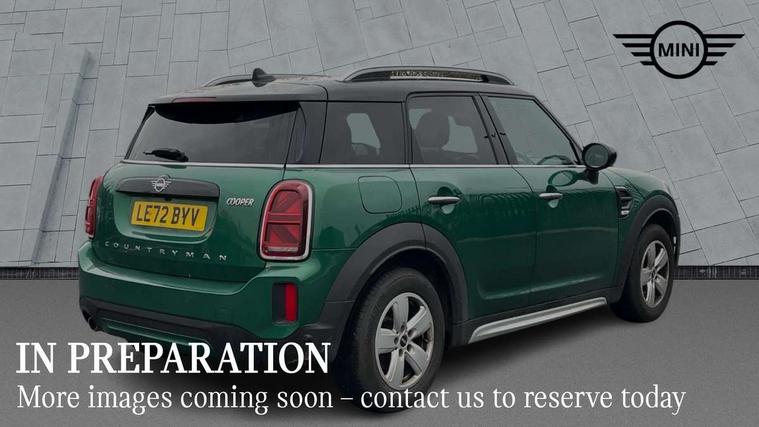 Active Guard incl speed limiting and lane departure functions with auto steering, and front collision warning with brake intervention, Automatic start/stop function with brake energy recuperation, Compatible mobile phone bluetooth with audio streaming, Cruise control with brake assist, Electro-mechanical speed dependant steering assistance, Instrument cluster, Mini E-call, On board computer, Rear parking distance control, 51 Litre fuel tank, Double Vanos system, Fully variable valve control, High precision injection, Performance Control, Steptronic transmission with double clutch, FM tuner and DAB digital radio, 3rd brake light, Body colour fuel filler cap, Day time driving lights, Door sill strips, Dynamic brake lights, Electric windows, Heated rear window, Heated windscreen washer jets, LED fog lights, LED Headlights, Left exhaust tailpipe with chrome finisher, Model logo, Model logo on Tailgate, Radiator grille, Rain sensor with auto headlights, Rear fog lights, Rear side wing doors, Rear window wiper, Side scuttle panel with integrated indicator, Split rear doors, Sun/heat protection glass, White indicator lenses, 12V socket in centre console, 3 seat bench in 2nd row, 3 spoke sport leather steering wheel + limiter function and audio controls, 360L luggage compartment capacity, 4 lashing eyes in luggage compartment, 40:20:40 split folding rear seats, Chrome interior highlights, Colour line - Carbon black, Cupholders, English handbook, Floor mats, Front headrests, Glove compartment, Headliner with grab handles and clothes hooks, Height and length steering column adjustment, Interior lighting with 12 basic colours selectable via toggle switch in roof, Isofix rear child seat preparation, Leather gearshift lever and handbrake gaiters, LED reading lights, vanity mirror lights, front foot well light and spotlight on front seats, Manual air conditioning, Mechanical seat adjustment, driver seat height adjust, forward/back and front seats backrest, Multifunction steering wheel, Passenger seat height adjuster, Rear headrests, Single front passenger seat, Storage compartments in doors, Sunvisors with vanity mirrors, Excitement pack - Countryman, Navigation pack - Countryman, 2 tone horn, 3 point seatbelts on all seats, 6 Airbags - front, side, head and seat belt tensioners, Anti-lock braking system (ABS), DSC - Dynamic Stability Control, Electronic handbrake, Front and rear disc brakes, Hill start assist, Manual rear child locks, Tyre pressure monitoring system, Alarm system with tilt sensor, monitoring doors, bonnet interior and tailgate, Auto drive away locking, Deadlocking function, Electronic vehicle immobiliser, Locking wheel bolts, Start/stop toggle with keyless go, Tool kit,