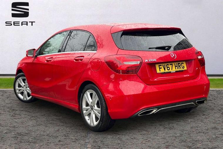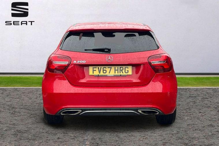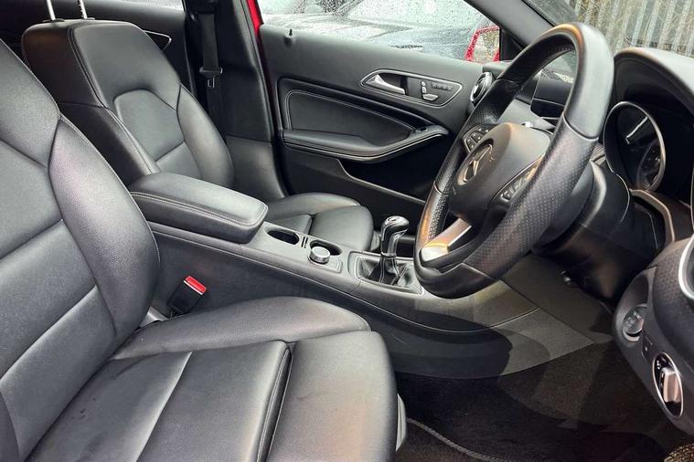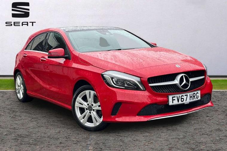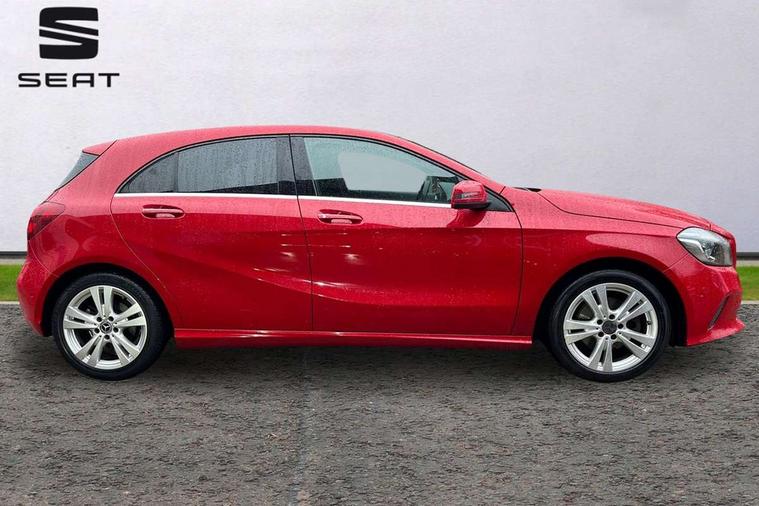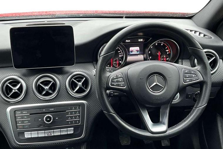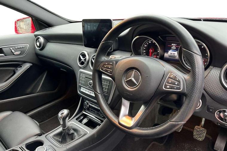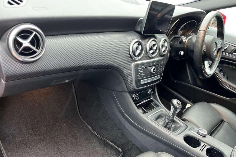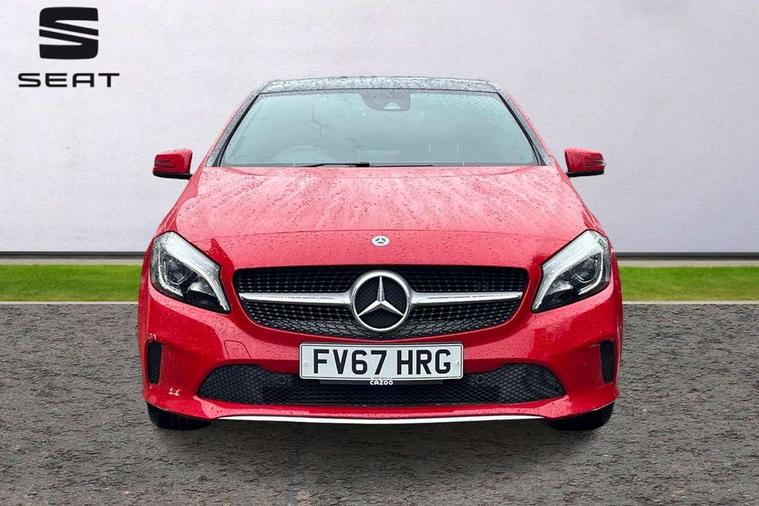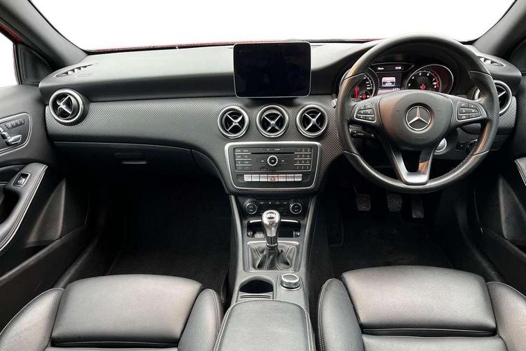 8" colour display screen, Attention assist, Bluetooth interface for hands free telephone, Bulb failure indicator, Collision prevention assist plus, DYNAMIC SELECT with a choice of driving modes (ECO, Comfort, Sport, Sport+ and Individual), External temperature gauge, Low fluid warning light, Park assist pilot with front and rear park assist, Reversing camera, Service indicator (ASSYST PLUS), Speed sensitive parameter assisted steering, Speedtronic cruise control, Trip computer, Comfort suspension, USB port, Adaptive brake lights, Auto dimming driver's door mirror, Auto dimming rear view mirror, Body colour bumpers, Body colour door handles, Body colour side skirt, Body coloured door mirrors, Chrome beltline trim, Daytime running lights, Diamond radiator grille with black pins with one louvre in silver + chrome insert, Electric adjustable heated door mirrors, Electric folding door mirrors, Electric front windows, Electric rear windows, Headlamp assist, Heated rear window with timer, High beam assist, LED Headlights, LED tail lights, Panoramic sliding sunroof, Rain sensor windscreen wipers, Rear wiper, Twin Trapezoidal tailpipes, 1/3 to 2/3 split folding rear seats, 12 colour Ambient lighting, 12V socket, 3 spoke perforated leather multifunction sports steering wheel, 4 way adjustable lumbar support, Adjustable head restraints, Artico man-made leather upholstery, Auto Mercedes-Benz child seat recognition sensor, Black headlining, Dual zone automatic climate control, Electric front seats with memory function, Footwell lights, Front and rear reading lights, Front centre armrest with storage compartment, Front head restraints, Heated front seats, Height adjustable front seats, Height/reach adjustable steering column, Illuminated door sills, Illuminated glovebox, Illuminated storage compartment, Isofix rear child seat preparation, Leather gearshift, Load securing rings in luggage compartment, Luggage compartment cover, Rear head restraints, Storage compartment under load area floor, Sunvisors with illuminated vanity mirrors, Twin front cupholders, Seat comfort pack - A Class, 3 rear 3 point seatbelts, ABS with Brake Assist, Active bonnet, Adaptive brake system, Child proof door locks, Crash responsive emergency lighting, Drivers knee airbag, Dual stage driver/passenger airbags, Electronic parking brake, ESP with ASR, Front and rear seatbelt reminder, Front head airbags, Front passenger seat occupancy sensor, Front side airbags, Hill start assist, Tyre pressure monitoring system, Warning triangle and first aid kit, Window airbags, Alarm system/interior protection/immobiliser, Keyless Go access/ignition system, Remote central locking, Checked pattern trim, Chrome air vent surrounds, 17" 5 twin spoke alloy wheels, Tirefit sealant with electric air pump,