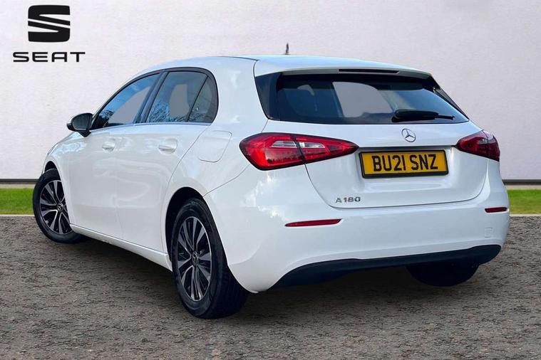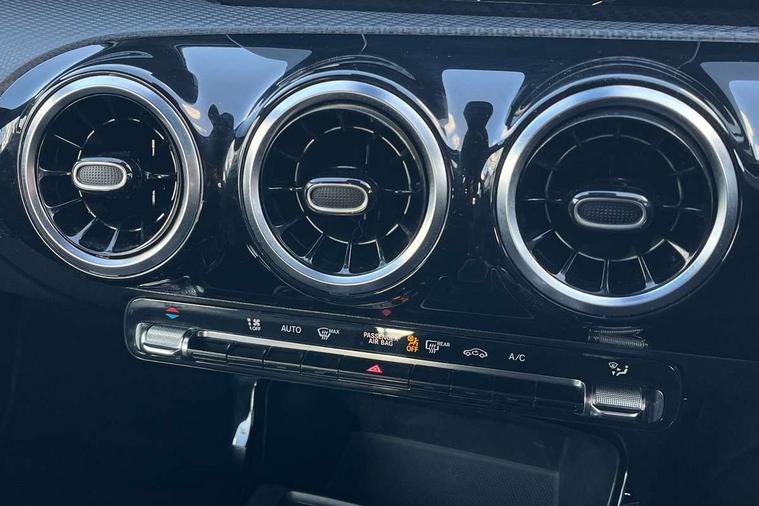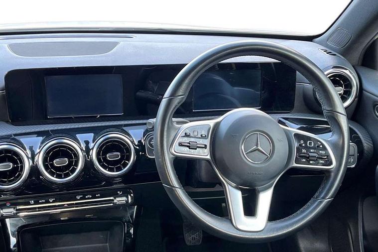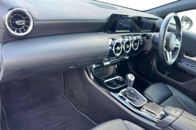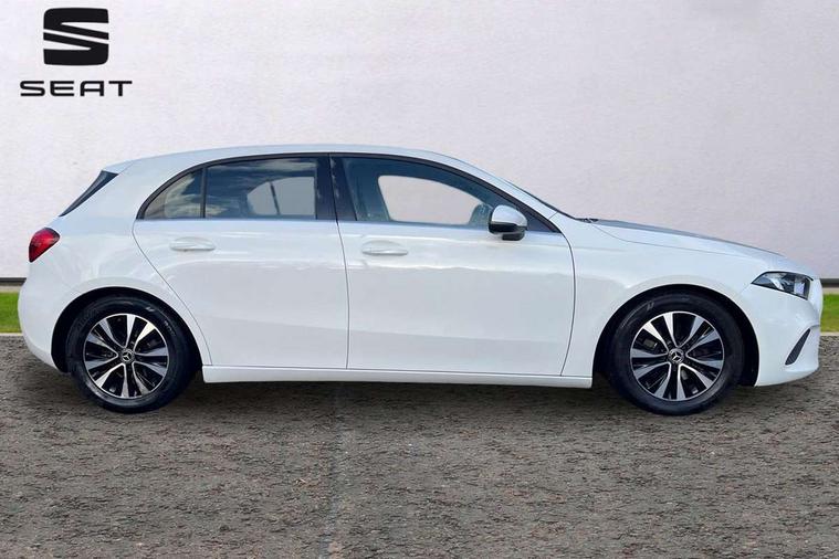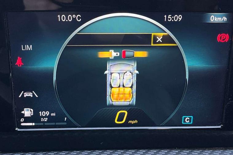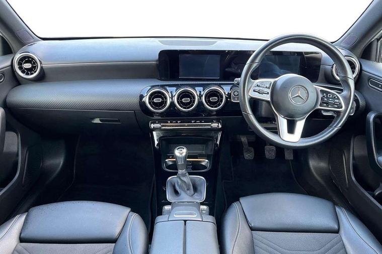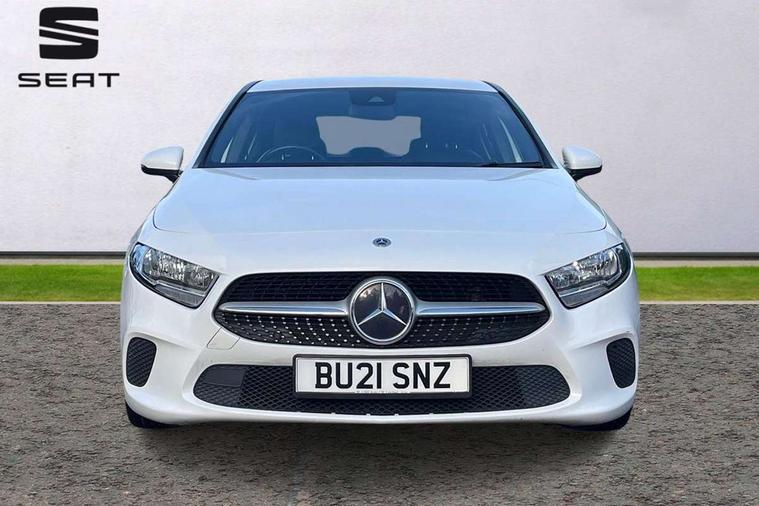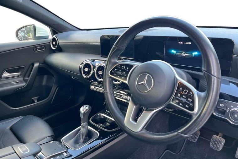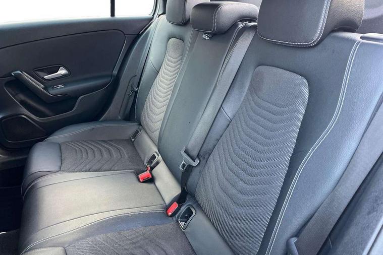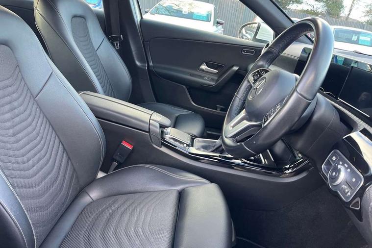 180 degree rear view camera with parking guidelines, 7" colour screen in instrument panel, 7" touchscreen media display, Attention assist, Brake pad wear indicator warning light, Car wash mode, Cruise control + speed limiter, Direct steering, Dual bluetooth interfaces, DYNAMIC SELECT with a choice of driving modes (ECO, Comfort, Sport and Individual), ECO start/stop function, Fluid level warning indicator for fuel, oil, coolant and washer fluid, Hard-disk navigation, Hey Mercedes Voice activation, Lamp failure indicator, Mercedes me connect including emergency call system, accident recovery, breakdown and maintenance management, Mercedes me remote services, Outside temperature gauge, Owners manual in English, Pre-installation for private car sharing, Preinstallation for Mercedes Benz link, Service indicator (ASSYST), Speed sensitive power steering, Trip computer, Lowered comfort suspension, Rear axle torsion beam, 2 USB ports (type C) in rear stowage compartment and one in front of center console, 6 speakers, DAB Digital radio, MBUX multimedia system with DAB digital radio and touchpad including satellite navigation, Mercedes-Benz sound system - 100W, 4 Electric Front and Rear windows, Adaptive brake lights, Black weather strip, Body colour bumpers, Body colour door handles, Body colour side skirt, Body coloured door mirrors, Chrome beltline trim, Diamond radiator grille with black pins with one louvre in silver + chrome insert, Electric adjustable and heated door mirrors with integrated LED side indicators, Halogen headlamps with integrated daytime running lights, Headlamp assist automatic headlamp activation, Heated glass rear windscreen + timer control, LED High level third brake light, No visible exhaust tailpipes, Part LED tail light, Radio aerial, Rain sensing windscreen wipers with two sensitivity settings, Rear fog lights, Rear wiper, Window line trim strip in black, 3 Spoke leather multi function steering wheel, 40:20:40 split folding rear seats, Artico man-made leather/Bertrix fabric upholstery, Auto Mercedes-Benz child seat recognition sensor, Black air vents with surround in silver chrome, Black roof lining, Controller on centre console with chrome surround, Front centre armrest with storage compartment, Front comfort seats with adjustable head restraints, Front door sills with Mercedes Benz lettering, Front seat backs luggage nets, Front seat cushion length adjustment, Heated front seats, Height/reach adjustable steering column, Interior mirror with reading lamps in black and frameless, Manual height adjustable front seats, Rear head restraints, Seat occupancy sensor for front passenger seat, Sunvisors with illuminated vanity mirrors, Thermatic single zone climate control, Touchpad on center console, Twin front cupholders, Velour floor mats, Light and sight pack - A Class, Seat comfort pack - A Class, 3 rear 3 point seatbelts, ABS with Brake Assist, Active bonnet, Active brake assist includes forward collision warning system with autonomous braking, Adaptive brake assist with hold function and hill start assist, Black seatbelts, Childproof locks manually operated for rear doors and electrically operated for rear power windows, Crash responsive emergency lighting, Driver and passenger head and side airbags, Drivers knee airbag, Dual stage driver/passenger airbags, Electronic parking brake, ESP curve dynamic assist, ESP with ASR, Front and rear seatbelt reminder, ISOFIX and top tether child seat fixing points in two outer rear seats, Tyre pressure monitoring system, Warning triangle and first aid kit, Window airbags, Alarm system/interior protection/immobiliser, Keyless Go, Remote central locking and crash sensor with emergency opening function, Urban guard vehicle protection system with immobiliser and interior protection, 16" multi spoke alloy wheels painted in high gloss black with a high sheen finish, Summer tyres, Tirefit sealant kit,
