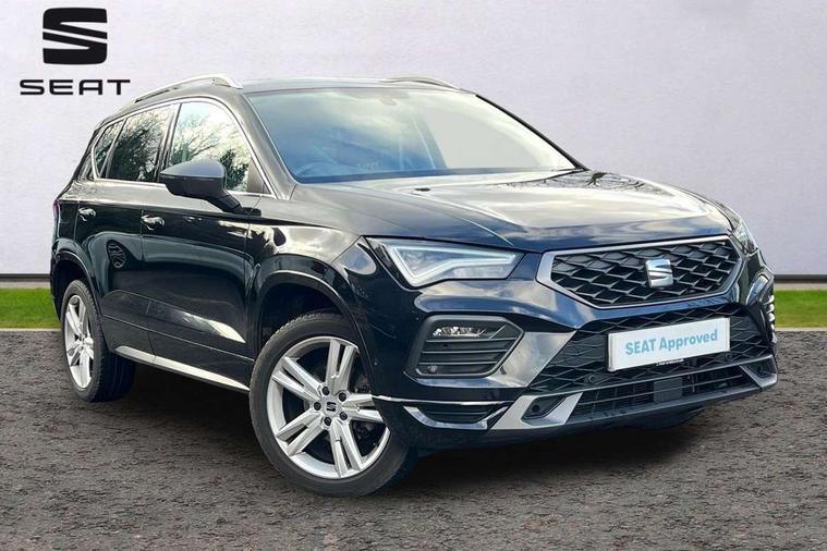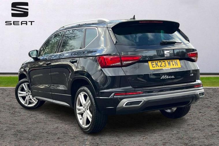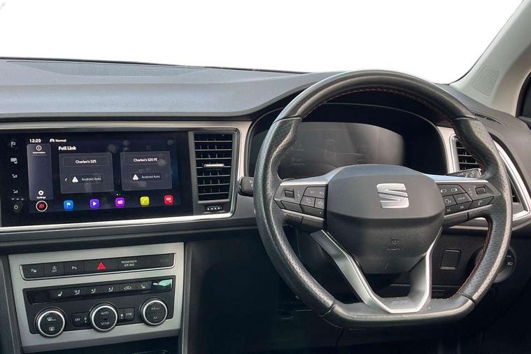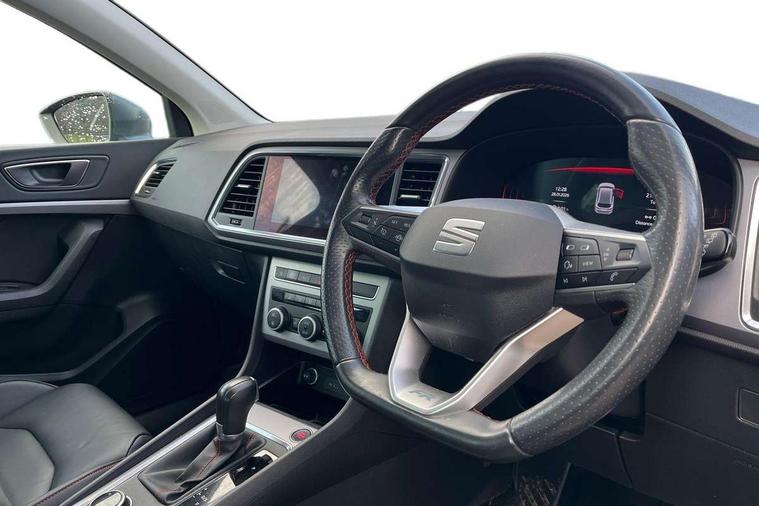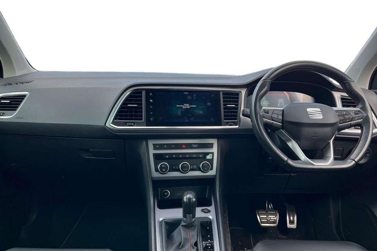 8" Digital cockpit, Colour multi-function on board computer display, Cruise control system with speed limiter, E-call, Outside temperature gauge, Progressive power assisted steering, SEAT drive profile with driving experience button - Normal, Sport, Eco and Individual mode, gearshift, steering and throttle response, Self parking functionality (includes front and rear parking sensors), Start/stop system, Tailgate, Trip computer, Wireless full link smartphone integration, Wireless phone charger, Steering wheel mounted audio/phone controls, Body colour bumpers, Body coloured wheel arch surrounds, Chrome front grille frame, Chrome roof rails, Chrome side window trim, Dark tinted rear windows, Daytime running lights, Door mirrors with welcome light silhouette, Dynamic headlight range control with self adjusting whilst driving, Electric adjustable/heated/folding door mirrors, Front and rear electric windows, Full LED headlamps with lens and LED front fog lamps with cornering function, Illuminated aluminium front door sill, LED rear tail lights with dynamic indicators, Rear fog lights, Rear side wing doors, Rear wash/wipe, Simulated exhaust pipes in chrome frame, Variable front intermittent wipers, 12V socket in front, 3 seat bench in 2nd row, 60/40 split folding rear seat, Aluminium pedals, Drawer under right front seat, Dual zone climate control, Front and rear head restraints, Front centre armrest, Front seat back storage pockets, Height adjustable driver and passenger seat with lumbar adjustment, ISOFIX points in outer rear seats with top tether anchorage points, Leather steering wheel and gear knob, Microsuede upholstery with front comfort seats, Rear armrest and easy back seat release mechanism from boot, Single front passenger seat, Steering wheel mounted gearshift paddles, Convenience pack - Ateca, Interior lighting pack - Ateca, Navigation system pack with DAB - Ateca, 3x3 point rear seatbelts, ABS, Traction control system (TCS), Electronic stability control (ESC) and Electronic differential lock system (XDS), Airbags - Driver and front passenger airbag with deactivation, front side, two curtain and driver's knee airbags, Electric parking brake with auto hold function, Front and rear seatbelt reminder, Front assist with autonomous emergency braking, Hill hold control, Manual rear child locks, Single tone horn, Tiredness recognition system, Traction control, Tyre pressure monitoring system, Alarm, Keyless entry, Locking wheel bolts, Remote central locking, Chrome interior detailing, 18" Brillaint silver alloy wheels,