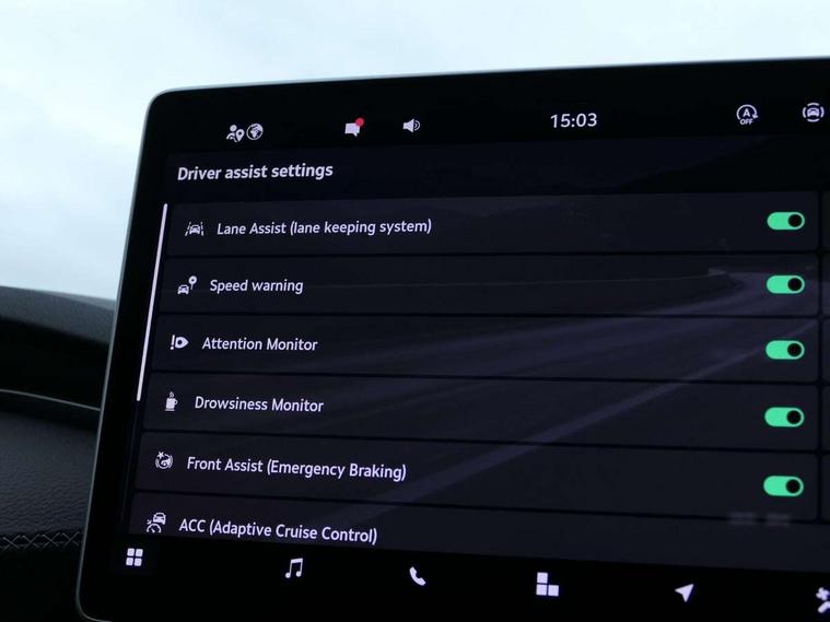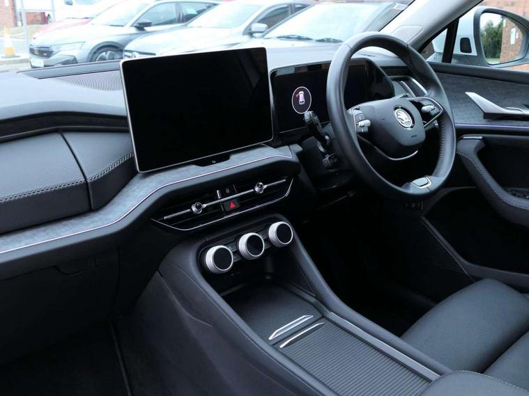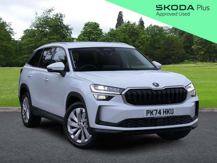 13" satellite navigation touchscreen display, Blind spot detection with door exit warning, Bluetooth system, ChatGPT functionality, Drive mode selector, Driver alert with fatigue sensor, Driver drowsiness alert system, Dry display cleaner, e call+, Front cross traffic assist, Lane assist, PAS, Rear traffic assist, Tailgate unlocking from outside, Traffic sign recognition, USB C Port x 2 in front centre console, Virtual Cockpit - 10.25" digital display, Voice control system, Wireless charging for two smartphones (15W) with cooling function, Wireless SmartLink for Apple CarPlay and Android Auto, Stop/start function, 2x USB-C in the rear, DAB Digital radio, Aero front windscreen wipers with intermittent function, Auto dimming rear view mirror, AWL (all weather lighting) and all weather light with cornering function, Black wheel arch surrounds, Body colour bumpers, Body colour door mirrors and handles, Cornering light and poor weather light, Electric folding /adjustable/separted heated/folding door mirrors, auto dimming with boarding sports and memory function, Electric front and rear windows, Exterior black decorative trims, Heat insulating glass in windshield, Heated rear window, Ice scraper in fuel tank cap, Invisible tailpipe, LED daytime running lights, LED rear fog light, LED third brake light in rear spoiler, Light assistant with automatic headlight control and coming home feature, Logo projection in door mirrors, Privacy glass, Rear side wing doors, Rear spoiler, Rear window wiper, Red decorative strip between rear LED lights, Safety reflectors on front and rear doors, Window control switches with black trim, Windscreen wipers with rain sensor, Without engine designation, 1.5l bottle holder points in all door, 12V socket in boot, 1x centre rear reading light, 2 seat bench in 3rd row, 3 configurable smart dials with 32mm coloured display, 3 seat bench in 2nd row, 4 foldable roof handles with rear coat hooks, Ambient interior lighting - Dashboard, front-door stowage compartments, front and rear door panels and footwell lighting, Automatic gear selector on steering wheel, Chrome interior door handles, Driver/front passenger reading lights, Fabric headlining, Fixed bench 40:60:40 split folding backrests, Front and rear floor mats, Front centre armrest with jumbo box storage compartment, cup holder and 12V socket, Front courtesy lights, Height adjustable front headrests, Isofix child seat fittings in outer middle row rear seats and front passenger with top tether, Manually adjustable steering column, Pollen filter, Rear centre armrest with cupholders, Rear seat boot backrest release, Retractable luggage compartment cover, Single front passenger seat, Sliding trunk cover, Small Bags on the inner sides of the front backrests, Storage pocket including mobile phone pockets on the backs of the front seats, Sunvisors with illuminated vanity mirrors, Three rear height adjustable headrests, Ticket holder on A Pillar, Tri zone climate control, Umbrella in door panel x1 made from sustainable materials, Upper and lower glovebox with card holder and coin compartment, USB C port by rear view mirror for charging only (15W), Exterior styling pack - Kodiaq, Auto door release and activation of warning lights in the event of an accident, Driver and front passenger airbag with knee airbag and front passenger airbag deactivation, Electric child locks, Electronic parking brake, ESC (incl. ABS+EMD+MSR+ASR+EDL+HBA+DSR+RBS+ESBS+MCB+TSA+XDS), Front assist with braking reaction to vehicles, pedestrians and cyclists, Front disc brakes, Fuel cut off safety device, Height adjustable front 3 point seatbelts + pretensioners, Hill hold control, Junction assist with automatic emergency braking, Rear disc brakes, Safety vest holder in door, Seat belt reminder for all seats, Three point rear seat belts, Two tone horn, Tyre pressure monitor, Anti-theft wheel bolts, Immobiliser, Remote central locking with 2 keys, Breakdown kit,