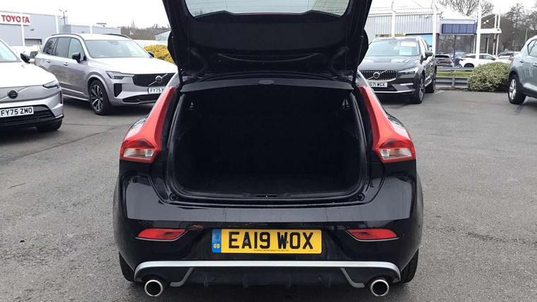 Active TFT crystal driver's instrument display, Front park assist, Information centre, Intelligent driver information system (IDIS), Rear park assist, Rear parking camera, Sensus navigation system, Service interval indicator, Speed limiter, Speed sensitive steering, Diesel particulate filter, Dynamic chassis, DAB Digital radio, Steering wheel audio controls, Active bending LED headlights, Adaptive brake lights, Auto dimming rear view mirror, Automatic folding door mirrors with ground lights, Automatic headlights, Body colour bumpers, Body colour door handles, Dark tinted rear side windows, Dual exhaust pipes, Electrically adjustable and heated door mirrors, Frameless rear view mirror, Front and rear electric windows, Headlamp levelling, Headlight cleaning system, High level LED brake light, Home safe and approach lighting, LED daytime running lights, LED Headlights, Matt silver finish door mirrors, R Design front grille, R Design lower front nose, Rain sensor windscreen wipers, Rear diffuser, Rear tailgate emblem, Rear wiper, Roof spoiler, Silk metal window trim surround, Visible VIN plate, 12V socket in front + rear tunnel console, 3 spoke leather steering wheel with chrome trim and R design logo, 5 headrests, 60/40 split folding rear seat, A-pillar parking ticket holder, Adjustable front centre armrest, Charcoal headlining, Door sill tread plates, Electronic climate control (ECC), Folding front passenger seat with height/lumbar adjust, Footwell lights, Front cupholders, Front door step lamp, Front reading lights, Front sports seats, Front storage box, Height adjustable drivers seat with lumbar support, Height/reach adjustable steering column, Illuminated driver/passenger vanity mirrors, Illuminated gear knob, Isofix attachments on outer rear seats, Load cover, Lockable glovebox, Pollen filter, R Design leather sports upholstery, Rear armrest with cupholder, Rear reading lights, Rear theatre lighting, Sports floor mats, Sports pedals, WHIPS - Whiplash Protection System, 5 x 3 point seatbelts, ABS+EBA, City safety braking system, Drivers knee airbag, DSTC-Dynamic Stability and Traction Control, Dual stage driver's airbag, Dual stage passenger airbag, Front/rear seatbelt pre-tensioners, Hill start assist, Inflatable curtain, Manual rear child locks, Passenger airbag cut-off device, Pedestrian airbag system, Side airbags, Side curtain airbags, Side impact protection, Tyre pressure monitor, Warning triangle, Anti-theft alarm including immobiliser/volume sensor + level sensor, Deadlocking system, Key integrated remote control central locking, Locking wheel nuts, Stealth aluminium trim, Tyre sealant kit,