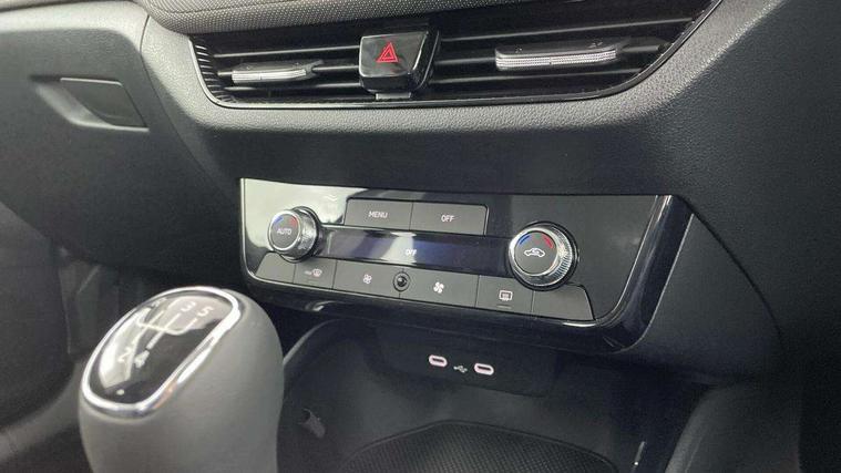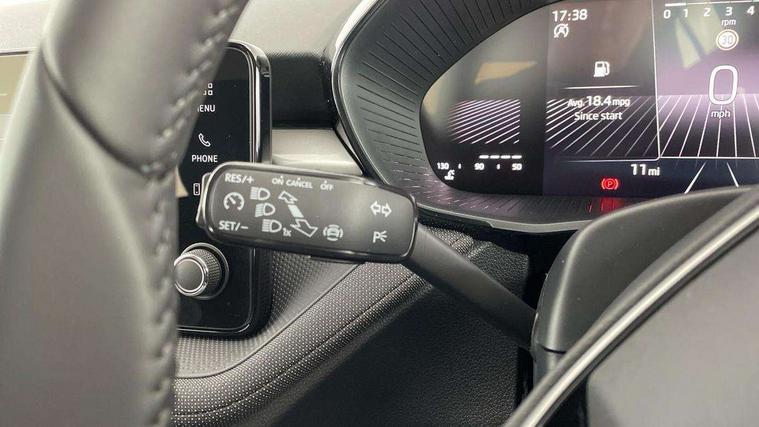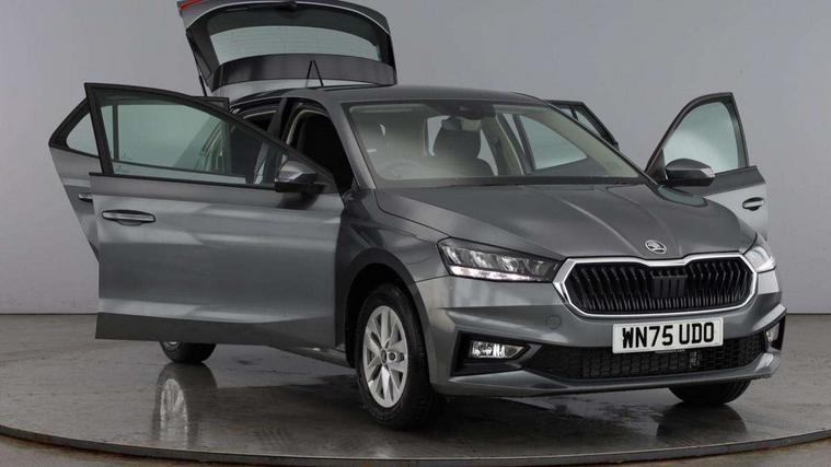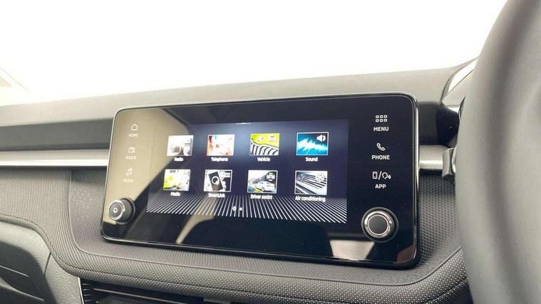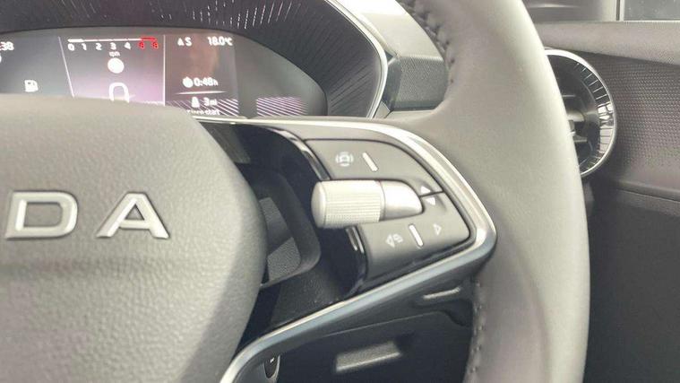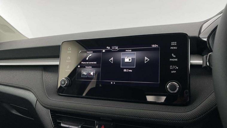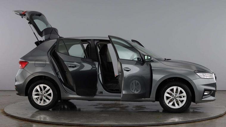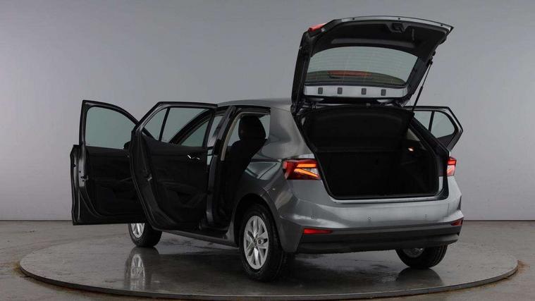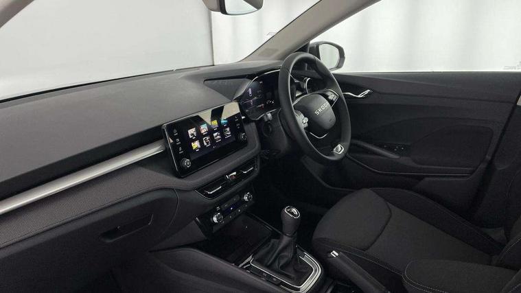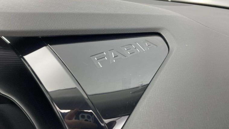 8" Digital instrument display, Advanced driver attention and drowsiness monitor, Bluetooth connection, Driver alert system, Electromechanical power steering, Exterior temperature gauge, Service interval indicator, Traffic sign recognition, Wireless SmartLink for Apple CarPlay and Android Auto, 6 Speakers (4 in front and 2 in rear), 8.25" Skoda infotainment touchscreen display, Auxiliary socket for external MP3 player, DAB digital radio reception, Auto dimming rear view mirror, Body colour door mirrors, Body coloured bumpers, Door mirror integrated indicators, Front and rear electric windows, Front window wiper intermittent control, Headlight range control - Automatic, Ice scraper in fuel cap, LED 3rd brake light, LED daytime running lights with coming and leaving home feature, LED rear lights, Rear LED fog light, Rear side wing doors, Rear window wiper with washing nozzles, Roof mounted spoiler, SKODA tailgate lettering in chrome, Unique dark chrome design logo on alloy wheels, 2 reading lights in front and 2 reading lights in rear, 3 rear headrests, Backrest split and folding, Central console with removable cup holder and storage box, Chrome handbrake release button, Dual zone air conditioning with climatronic electronic control, Fabric upholstery, Front centre armrest, Gearshift knob/handle in leather, Grain satin black interior door handles, Hand brake lever handle in leather, Height adjustable front headrests, Height adjustable front seats, Height adjustable steering wheel, ISOFIX and TopTether anchorage points to the outer rear seats, ISOFIX and TopTether on the front passenger seat, Luggage compartment lighting, Manually adjustable lumbar support in front seats, Pollen filter, Rear seat bench unsplit, Single front passenger seat, Skoda lettering on steering wheel, Storm grey headlining, Sun visors with mirror and airbag label on passenger side, Textile floor mats, Ticket holder, Umbrella in drivers door, Ambient lighting pack - Fabia Hatchback, 3-point height adjustable front seats belts with pretensioner and force limiter, Automatic warning lights in case of crash, Driver and passengers airbag with switch off function, e-Call+, ESC including ABS, MSR, ASR, EDS, HBA and XDS, Front and rear seat belt warning, FRONT ASSIST (AEB City and AEB Inter Urban), Front side airbags, Head airbags, One tone horn, Pedestrian protection, Three rear 3-points safety seat belts with pretensioner and force limiter including stop function for outer rear seat belts, Tyre pressure monitoring system, Anti-theft alarm system including immobiliser, interior monitoring, backup horn, and towing protection, Central locking with radio remote control, interior controls, SAFE function and 2 foldable keys, Black painted air vents, Grain satin black central console cover, Metallic grey upper decorative trim, Satin black door and side trim panel in front, Textile Kota grey lower decorative inserts, Anti-theft wheel bolts protection, Super-low rolling resistance tyres,