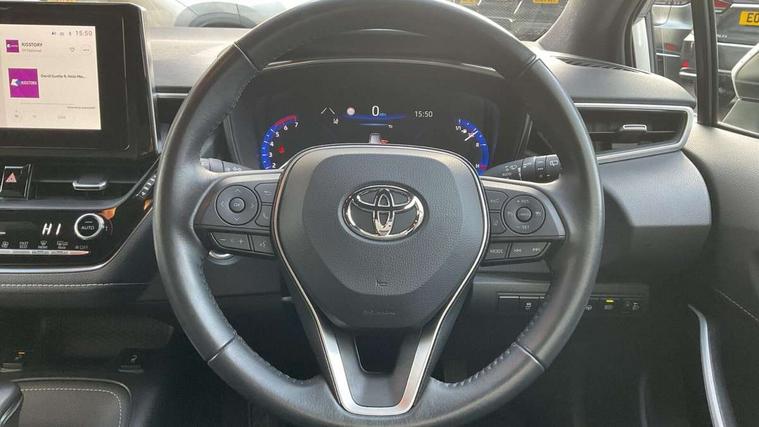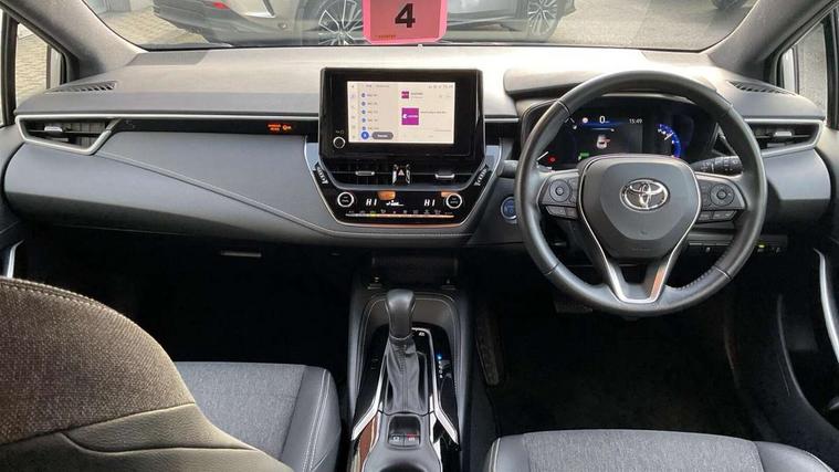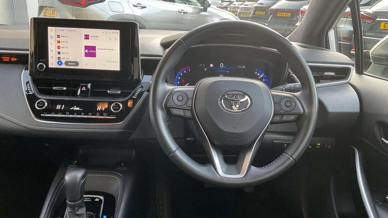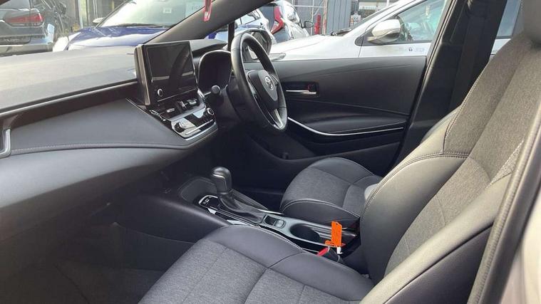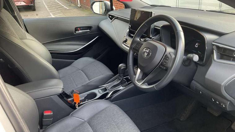 7" Multi information display screen, Bluetooth telephone connectivity, Connected car functionality upgrade, tracker, remote status and e-care, Door trim and centre console material, Dynamic radar cruise control (with RSA) including switch on steering wheel, E-call, Electrically assisted power steering, EV drive indicator, Intelligent park assist, Lane Departure Alert (LDA) switch on steering wheel, Memory on adjustable speed limiter, Push button start, Reversing camera, Smartphone integration with Apple CarPlay and Android auto, Gasoline particulate filter, Vehicle Stability Control (VSC), 6 speakers, 8" Touchscreen with MM19 Multimedia system and voice recognition, AM/FM radio, DAB Digital radio, Toyota touch 2 with go navigation system, USB and Aux in connectors + 12V front outlet, Anti-jam protection on power windows, Auto dimming inside rear view mirror, Auto up and down function on all power windows, Automatic folding mirrors, Automatic headlights with high beam assist, Black metallic surround on lower front grille, Black toyota logo in front, Black window frames, Body colour rear spoiler, Body coloured bumpers, Body coloured door mirrors, Body coloured outside door handles, Follow me home headlights, LED daytime running lights, LED front fog lights, LED Headlights, LED High mounted stop light, LED rear combi lights with LED lightguide, Power adjustable heated door mirrors, Power front windows, Power rear windows, Privacy glass, Rain sensing wipers, Rear side wing doors, Rear window defogger, Rear window wiper, Reverse tilting door mirrors, Shark fin antenna, Time adjustment on intermittent wiper, Turning signal integrated indicators in door mirrors, Unique lower skirt, Unique side rocker with black insert, UV-filter on driver and passenger windows, 3 rear headrests, 3 seat bench in 2nd row, 3 spoke leather steering wheel + gear knob, 60/40 split folding rear seat, Adjustable speed limiter switch on steering wheel, Audio, multimedia and telephone switches on steering wheel, Blue ambient interior illumination to centre tray, front cup holders and front door trim, Boot light, Centre room light, Clean air filter, Driver and front passenger personal light, Driver and passenger assist grip, Driver and passenger sun visor with mirror and light, Dual zone automatic air conditioning with ECO mode switch, Fabric/synthetic leather upholstery, Front and rear cup and bottle holders, Front door pockets, Front head restraints, Front passenger seat, Heated driver and front passenger seats, Illuminated entry system in room lamp, ISOFIX seat fixing (2 fixings on rear outer seats), Leather gear shift with satin chrome on gear shift console, Leather style armrests, Manual height adjustable for driver and front passenger seat, Parcel shelf, Passenger seat back pocket, Pollen filter, Power adjustable lumbar support on driver seat, Power window switches with satin chrome inserts, Rear armrest with 2 cupholders, Rear passenger coat hooks (2), Satin chrome inside door handles, Shopping bag hooks in luggage compartment, Sliding armrest on centre console box, Slow opening glovebox with lights, Tilt/telescopic steering column, Voice recognition switch on steering wheel, Whiplash Injury Lessening (WIL) feature (active headrest) for seats, Parking pack - Corolla, Toyota safety sense 2 pack - Corolla, 3x3 point rear seatbelts, Adjustable driver and front passenger seat belt extender to top anchor point, Anti lock braking system + Electronic brake force distribution, Brake assist function, Child locks on rear doors, Downhill Assist Control (DAC), Electronic parking brake, Emergency brake light signal (EBS), Front passenger airbag on/off switch, Front seatbelt reminder, HAC - Hill start assist control, Rear seat belt reminder, Seatbelt pretensioners and force limiters, Supplemental restraint system (SRS) 7 airbags - dual driver, dual side curtain, side impact and driver knee airbags, Traction control, Tyre pressure warning system, Acoustic vehicle alert system (AVAS), Alarm with motion sensor and immobilizer, Remote central locking + deadlocks, Smart entry, Satin chrome dash trim, Soft touch texture on upper dashboard, Unique wheel finish with red wheel cap,
