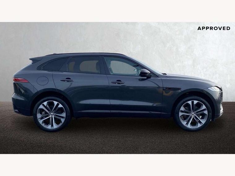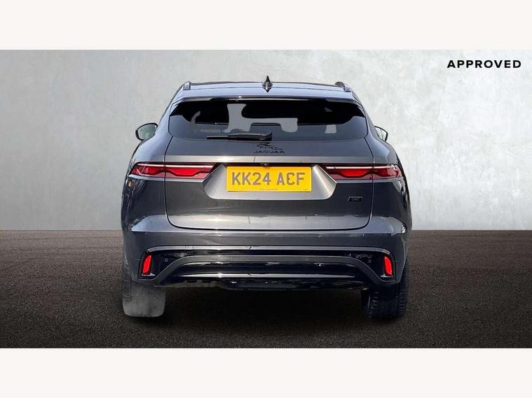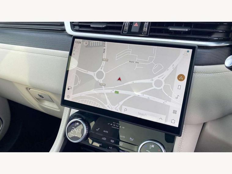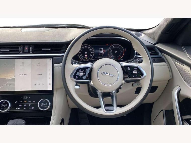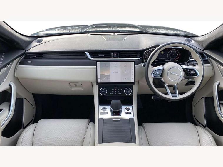 11.4" touchscreen, Adaptive cruise control with steering assist, Android Auto, Apple car play, Blind spot assist, Bluetooth connectivity, Clear exit monitor, Driver alert system, Driver condition monitor, eCall emergency call system, Eco driving style assistant, Electric power assisted steering, InControl remote, Interactive driver display digital with 12" TFT display, Jaguar Toggle shift selector, Lane departure warning system, Lane keep assist, Outside temperature gauge, Personalisation profile management, Pivi pro connected navigation system with app interface and media storage, Pro services and wifi hotspot, Push button starter, Rear collision monitor, Rear traffic monitor, Service interval indicator, Speed proportional steering, Start up sequence with movement in dials and lighting, Traffic sign recognition with adaptive speed limiter, Trip computer, Voice control system, Wireless device charging, 8 speed automatic transmission, Adaptive dynamics, All terrain progress control, All Wheel Drive (AWD), Configurable dynamics, Open differential with torque vectoring by braking, AM/FM radio, Bluetooth streaming, DAB Radio (Digital Audio Broadcasting), Dynamic volume control, InControl apps, InControl protect, iPod integration, 3 flash lane change indicators, 90th Anniversary Edition Badge, AHBA and animated directional indicators, Approach Illumination, Auto dimming rear view mirror, Automatic headlights, Electric heated/power fold memory door mirrors with approach lights and auto dimming driver side, Electric windows with one touch open/close and anti trap, F-Pace and R Dynamic badge, Green tinted glass, Heated front windscreen + heated washer jets, Heated rear window with timer, Illuminated metal tread plates with Jaguar script, Jaguar script and leaper, LED High level third brake light, LED tail lights, Metal load space scuff plates, Non acoustic front windscreen, Privacy glass (rear side windows and rear screen), R Dynamic badge on side door, Rain sensor windscreen wipers, Rear fog lights, Rear metal tread plates, Rear side wing doors, Rear wiper, Trailer stability assist, Variable front intermittent wipers, 12V power point front, 3 rear headrests, 3 seat bench in 2nd row, Additional power sockets - Two additional USB sockets in rear centre console and one 12V socket in trunk, Air distribution speed, Bright metal foot pedals, Centre armrest console, Centre console with side storage, Configurable cabin lighting, Deletion loadspace storage rails, Door sill tread plates, Ebony suede cloth headlining, Electrically adjustable steering column, Fold flat front seats, Front centre armrest with storage compartment, Front door storage space, Glovebox finisher with jaguar script, Heated steering wheel, Hooks in loadspace, Illuminated glovebox, Interior front door handles with separate locking switches, ISOFIX on outer rear seats, Jaguar sense, Leather steering wheel, Luggage tie downs in loadspace, Mist sensing, Multifunction steering wheel, Overhead lighting console, Overhead stowage for sunglasses, Passive front head restraints, Premium carpet mats, Rear air vents, Rear armrest with twin cupholders, Rear centre headrest, Rear door storage space, Reversible boot floor, Satin chrome gearshift paddles, Shopping bag hook, Single front passenger seat, Sunvisors with illuminated vanity mirrors, Twin front cupholders with cover, Online Pack with data plan - F-Pace, 355mm front brakes and 325mm rear brakes, 3x3 point rear seatbelts, ABS, All surface progress control (ASPC), Brake pad warning light, DSC - Dynamic Stability Control, Electric parking brake (EPB), Emergency brake assist, Front airbags with passenger seat occupant detector, Front and rear seatbelt reminder, Front side airbags, Full length side window curtain airbag, Hill launch assist, Power operated child locks, Traction control, Tyre pressure monitoring system, Immobiliser, Keyless entry, Keyless start, Locking wheel nuts, Perimeter alarm, Remote central locking, Valet mode,