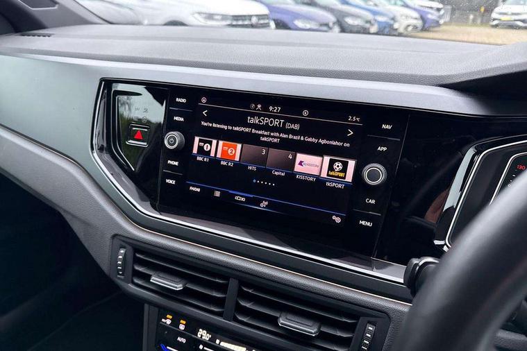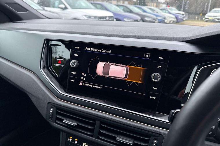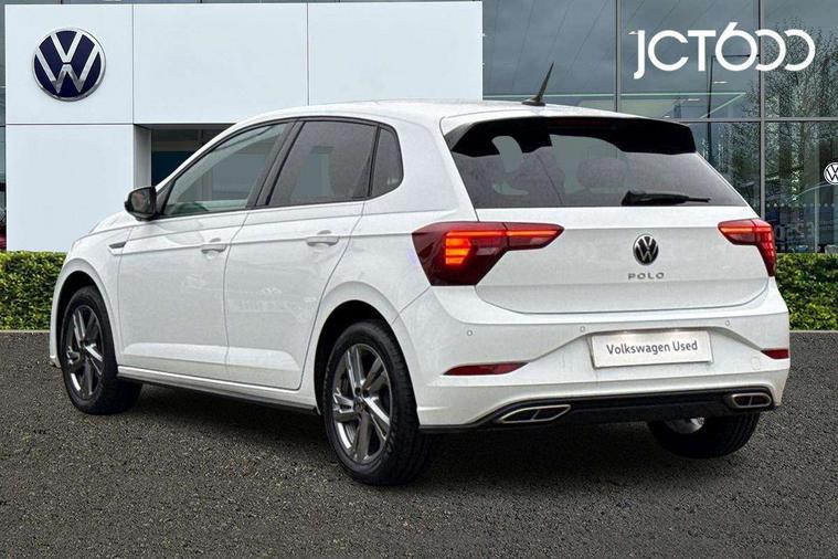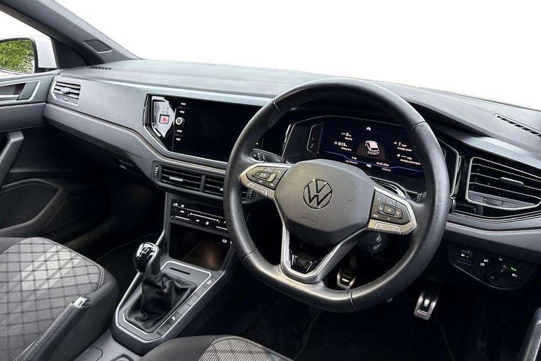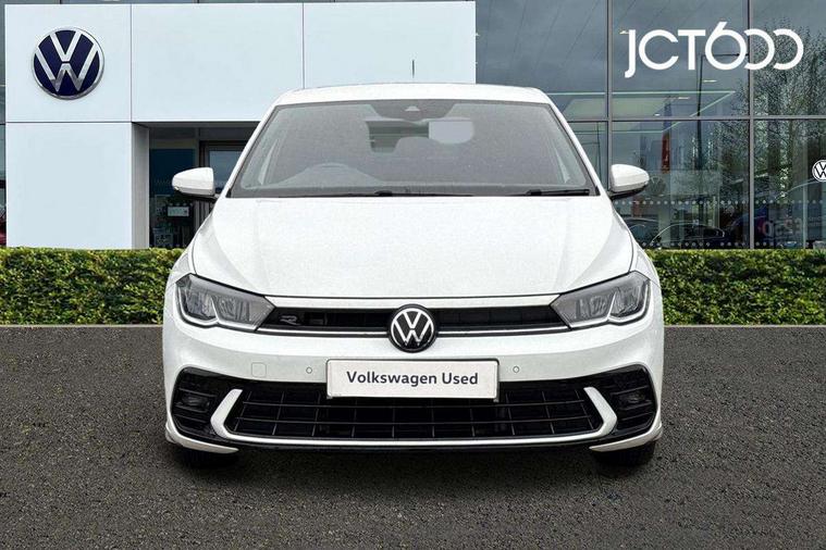 Adaptive cruise control without follow-to-stop and speed limiter, Bluetooth mobile phone interface, Digital Cockpit Pro with 10.25" Display, Driver alert system, Dynamic road sign display, Emergency call service, Power assisted speed sensitive steering, Preparation for We connect and We connect plus, Speedo and rev counter, electronic odometer, trip, service interval display and fuel gauge, Standard rear axle, Travel Assist - Lane keeping system and traffic jam assist, Travel assist including emergency assist, Trip computer, Warning signal and warning light for front and rear seatbelts not fastened, Washer fluid level indicator, Wireless app connect, Front wheel drive, Rear shock absorpion, Start-stop system with battery regeneration (recuperation - energy recovery during braking), DAB Digital radio, Diversity antenna for FM reception, Front and rear 6 speakers, Body colour bumpers, Body colour door handles, Electric front windows, Front scuff plates with R-Line logo, Heat insulating darkened glass in side and rear windows, Heat insulating glass windscreen, Power folding adjustable/heated exterior mirrors and front passenger exterior mirror lowering function, Rear electric windows, Rear fog light, Rear side wing doors, Rear windscreen washer and wiper with interval delay, Third brake light, 12V power socket in centre console, 2 USB-C ports in the front, 2 USB-C charging sockets on the center console in the rear, 3 rear head restraints, 60/40 split folding rear seat and rear seat bench not split, Air care climatronic air conditoning system with active combination filter and 2-zone temperature control, Black roof lining, Chrome plated radiator grille inserts, air vent surrounds and light switch surrounds, Door and side trim panel, Driver and front passenger seat height adjustment, Driver/passenger sunvisors with illuminated vanity mirrors, Front + rear carpet mats in recycled material, Front centre armrest, Front footwell illumination, Front seat backrest storage pockets, Front sports comfort seats, Handbrake lever handle in leather, Headliner in recycled material, Isofix child seat preparation easy-fit (for two outer rear seats, and front passenger seat) compatible with I-size, Karoso artvelours cloth upholstery, Leather trimmed gear knob, LED interior light with switch off delay and dimmer, 2 reading lights front and rear, Luggage compartment cover, Luggage compartment floor, Luggage compartment lighting, Lumbar adjustment for front seats, Multifunction steering wheel, Single front passenger seat, Stainless steel pedals, Standard pedal cluster, Light and sight pack - Polo R-Line/Black Edition, 3 point height adj front seatbelts + pretensioners, 3x3 point rear seatbelts, ABS, Driver and front passenger airbag with front passenger airbag deactivation, Drivers and front passengers safety optimised head restraints, ESC (Electronic stability control) + EDL (Electronic Differntial lock) and ASR (Traction control), Extended and predictive pedestrian/ cyclist protection, Front curtain and side airbags with center airbag, Hill hold control, Manual child lock in rear doors, Single tone horn, Tyre pressure loss indicator, Alarm with interior protection, Anti-theft alarm system with interior monitoring, backup horn, and towing protection, Anti-theft wheel bolts, Electronic engine immobiliser, Chrome applications on rotary light, mirror adjustment, window regulator switches, outlet with frame in black, Dark grey anodised matt decorative inserts in dash and front door panels, Low rolling resistance tyres,