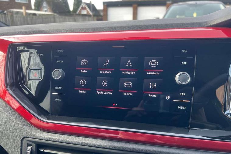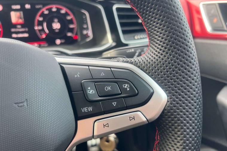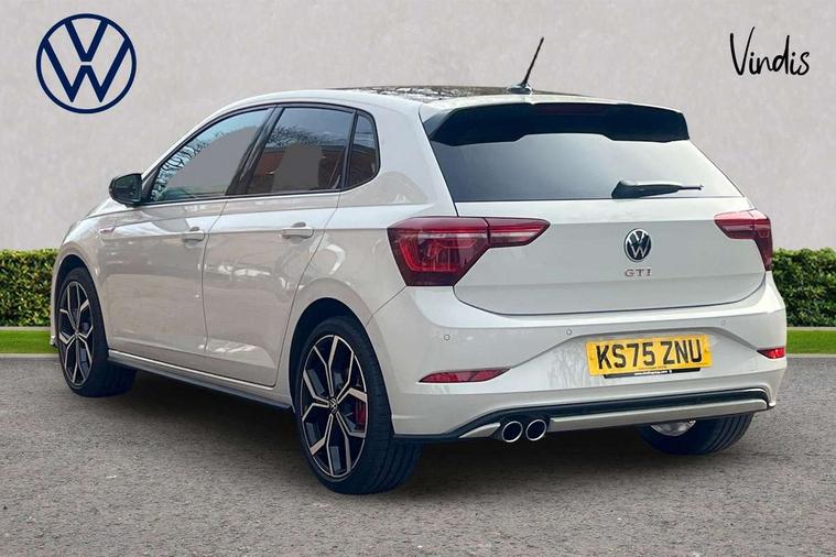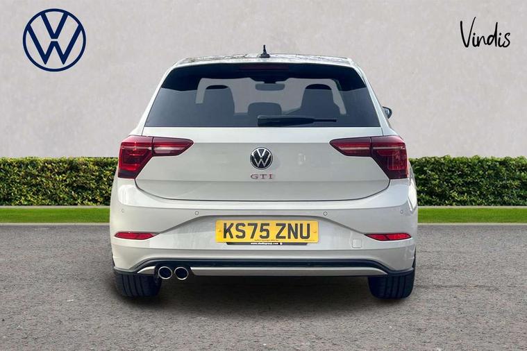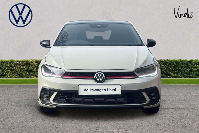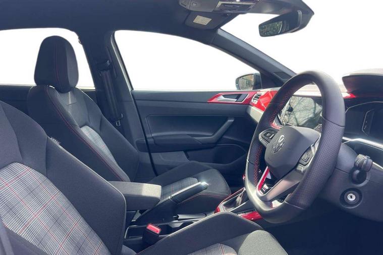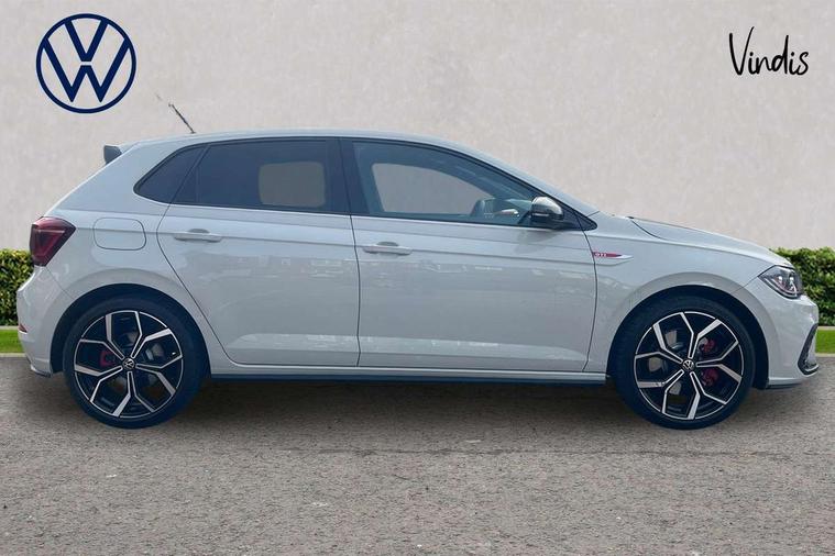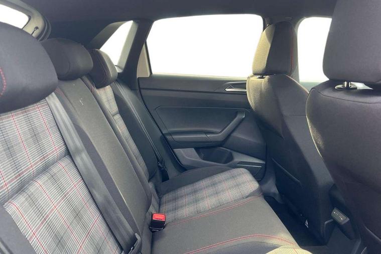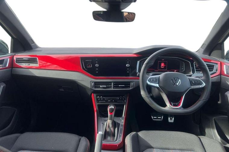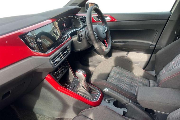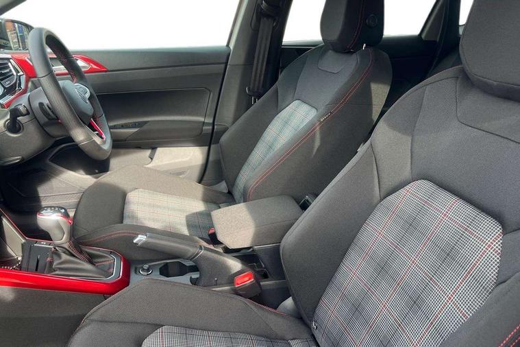 Adaptive cruise control with follow-to-stop and speed limiter, Advanced driver attention and drowsiness monitor, Bluetooth mobile phone interface, Digital Cockpit Pro with 10.25" Display, Dynamic road sign display, Eco mode, Emergency call service, Multifunction camera, Power assisted speed sensitive steering, Preparation for We connect and We connect plus, Speedo and rev counter, electronic odometer, trip, service interval display and fuel gauge, Travel Assist - Lane keeping system and traffic jam assist, Travel assist including emergency assist, Trip computer, Warning signal and warning light for front and rear seatbelts not fastened, Washer fluid level indicator, Wireless app connect, Adaptive chassis control, Front wheel drive, Heavy duty rear axle, Rear shock absorpion sports version, Sports select suspension lowered by 15mm, Start-stop system with battery regeneration (recuperation - energy recovery during braking), DAB Digital radio, Diversity antenna for FM reception, Body colour bumpers, Body colour door handles, Electric front windows, Front scuff plates in aluminium with GTI logo, Heat insulating glass windscreen, Power folding adjustable/heated exterior mirrors and front passenger exterior mirror lowering function, Rain sensor, Rear electric windows, Rear fog light, Rear side wing doors, Rear windscreen washer and wiper with interval delay, Sport bumpers with air intakes with honeycomb structure, Third brake light, Twin chrome exhaust tailpipes, 12V power socket in centre console, 2 USB-C ports in the front, 2 USB-C charging sockets on the center console in the rear, 3 rear head restraints, 60/40 split folding rear seat and rear seat bench not split, Air care climatronic air conditoning system with active combination filter and 2-zone temperature control, Black roof lining, Carpet mats, front and rear, Chrome plated radiator grille inserts, air vent surrounds and light switch surrounds, Door and side trim panel, Driver and front passenger seat height adjustment, Driver/passenger sunvisors with illuminated vanity mirrors, Front centre armrest, Front footwell illumination, Front seat backrest storage pockets, GTI sports gearshift knob in aluminium leather, Handbrake lever handle in leather, Headliner in recycled material, Isofix child seat preparation easy-fit (for two outer rear seats, and front passenger seat) compatible with I-size, LED interior light with switch off delay and dimmer, 2 reading lights front and rear, Luggage compartment cover, Luggage compartment floor, Luggage compartment lighting, Lumbar adjustment for front seats, Single front passenger seat, Stainless steel pedals, Standard pedal cluster, Three spoke leather wrapped multifunction sports steering wheel with shifting paddles, IQ LED matrix headlights pack - Polo, Light and sight pack - Polo GTI, 3 point height adj front seatbelts + pretensioners, 3x3 point rear seatbelts, ABS, Driver and front passenger airbag with front passenger airbag deactivation, Drivers and front passengers safety optimised head restraints, ESC (Electronic stability control) + EDL (Electronic Differntial lock) and ASR (Traction control), Extended and predictive pedestrian/ cyclist protection, Front and rear disc brakes with red brake calipers, Front curtain and side airbags with center airbag, Hill hold control, Manual child lock in rear doors, Two tone horn, Tyre pressure loss indicator, Alarm with interior protection, Anti-theft alarm system with interior monitoring, backup horn, and towing protection, Anti-theft wheel bolts, Electronic engine immobiliser, Chrome applications on rotary light, mirror adjustment, window regulator switches, outlet with frame in black, Low rolling resistance tyres,