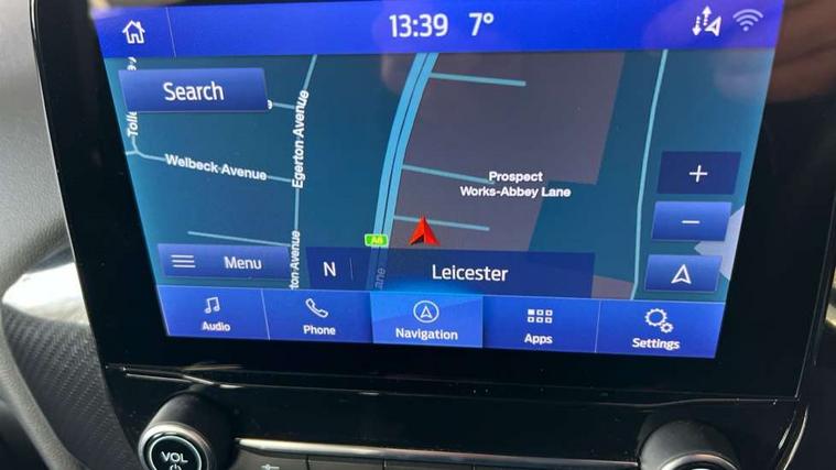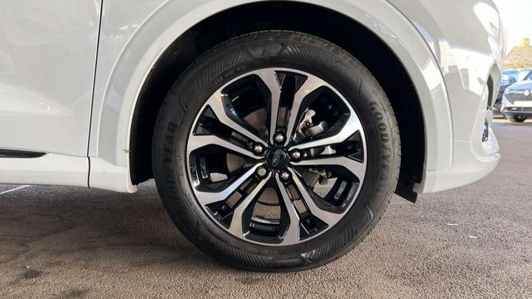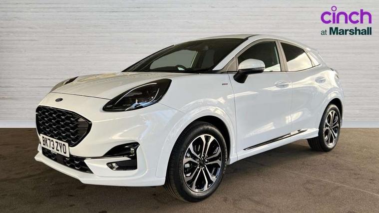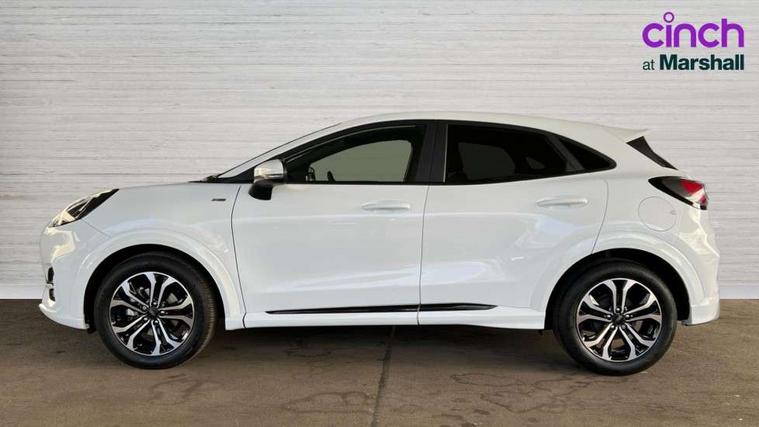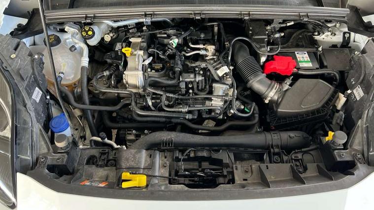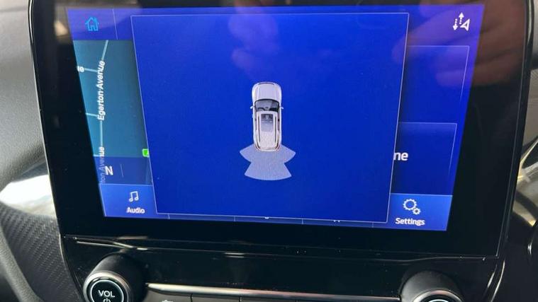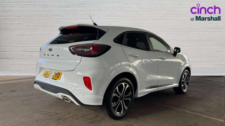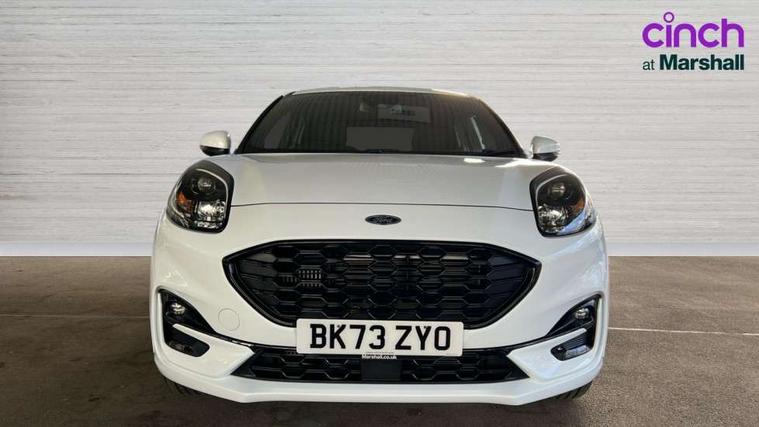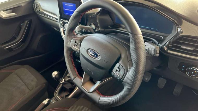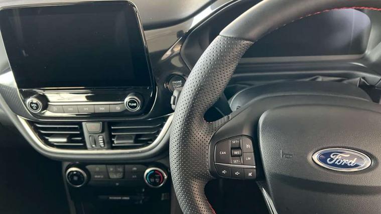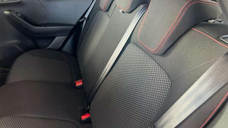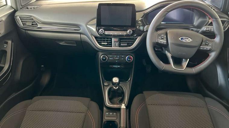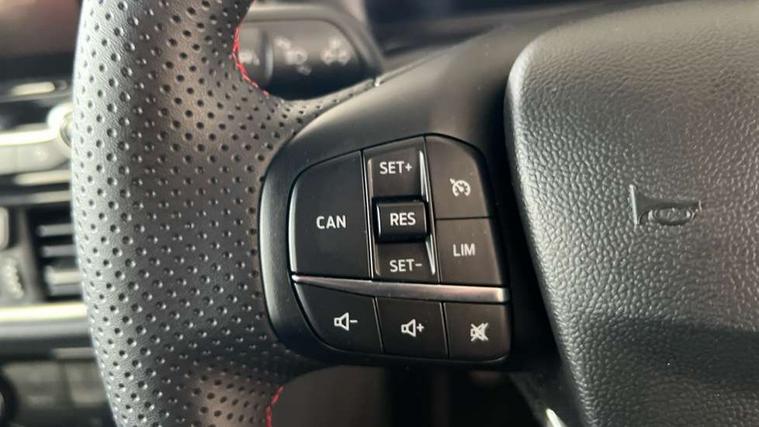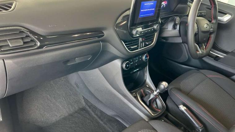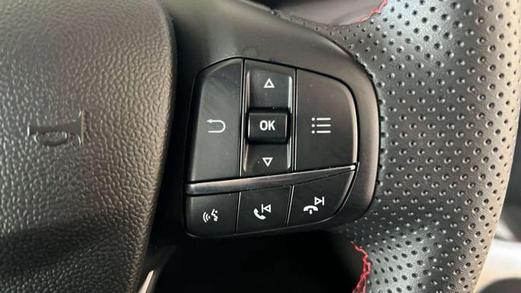 Driver impairment monitor, Emergency call service, Ford easy fuel, Full digital 12.3" instrument cluster, Lane keeping aid with lane departure warning, Power assist steering, Power start button, Rear parking sensor, Selectable drive modes(Normal, Eco, Sport, Slippery and Trail), Speed sign recognition, Sport suspension, Automatic headlights with auto high beam, Automatic rain sensing wipers, LED rear lamps, Power foldable heated door mirrors with puddle lamps, Projector headlamps with LED day time running lights and front fog lamps, Quickclear heated windscreen, Rear side wing doors, Rear wiper, ST-Line body styling kit with unique grille and large body colour rear spoiler, Third brake light, 3 seat bench in 2nd row, Centre console with armrest and stowage, Ford megabox extended bootspace, Front and rear head restraints, Front floor mats, Manual 2 way passenger seat adjustment, Manual 4 way driver seat adjust with lumbar adjustment, Single front passenger seat, ST- Line cloth trim with red stitching, ST-Line flat bottomed sensico leather steering wheel with leather handbrake and aluminium gear knob, Ford SYNC 3 navigation pack - Puma, 3 rear seatbelts, Child safety lock, Electronic stability control (ESC) and hill start assist, Pedestrian/cyclist detection & post-collision braking, Pre collision assist system, Tyre pressure monitoring system (TPMS), Thatcham alarm,